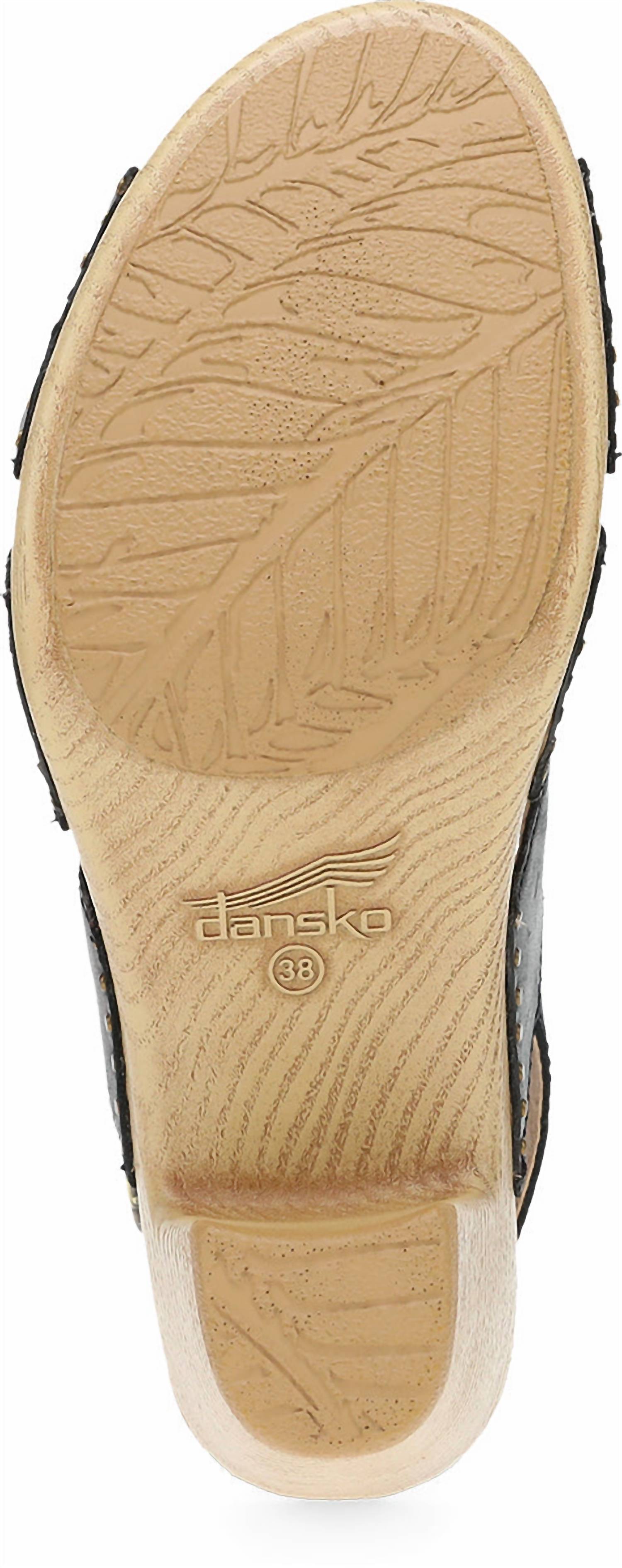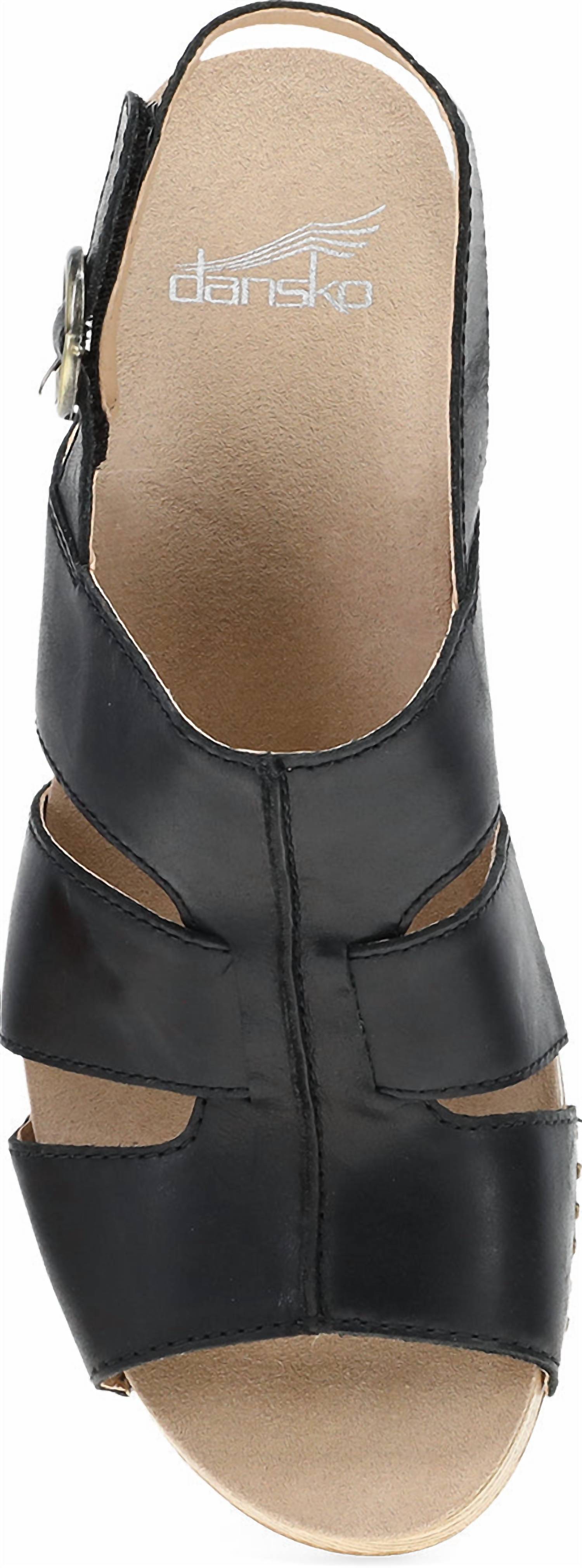 This sandal will take you from brunch to dinner and everything in between. Elevate your wardrobe with the Women's Tatiana Peep-toe Sandal by Dansko in bold black. Made from high-quality leathers, these sandals feature nubuck treated with 3M Scotchgard™ for enhanced stain resistance. The chrome-free leather lining and cushioned energy-return PU footbed ensure breathability and comfort, while the lightweight PU outsole and hook & loop adjustability offer stability at any summer affair. Heel height: 3.25 inches; Platform height: 1 inch, making them perfect for cocktail parties or special occasions.