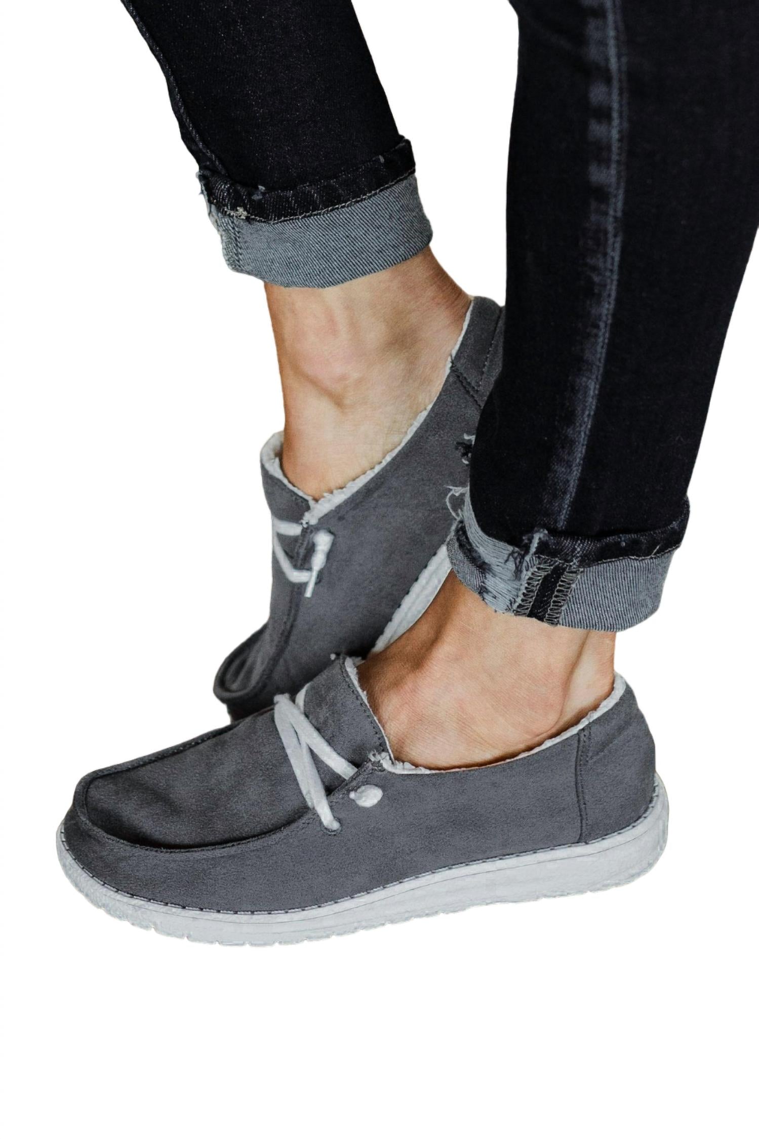 When fashion and function come together seamlessly.These slip-on shoes feature a flexible lightweight sole and a suede material with a faux fur lined body. They fit true to size and include lace detail for added style.
