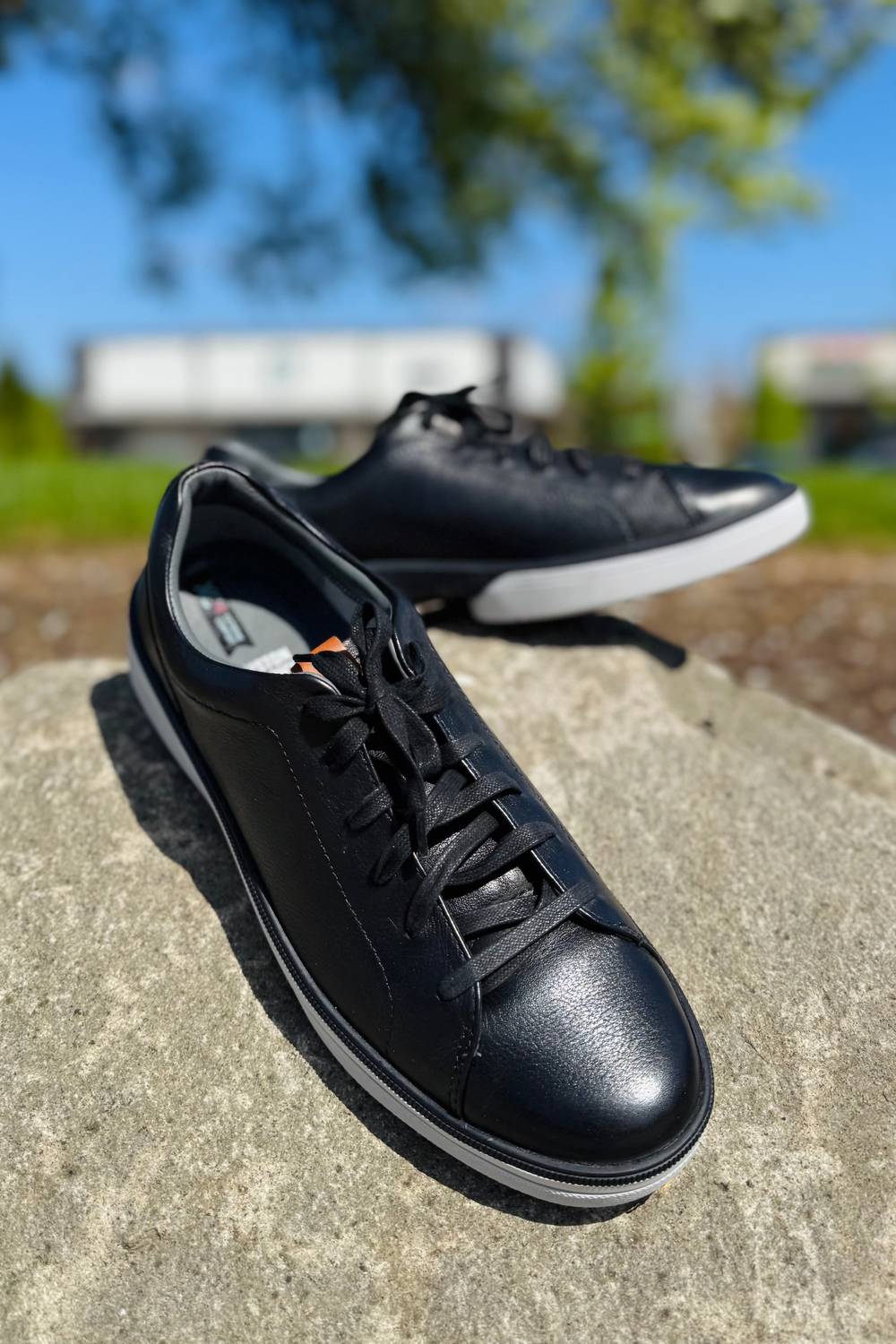 Step into style and comfort with the Men's Foust Sneakers by Johnston & Murphy, an ideal choice for summer and streetwear enthusiasts. These sneakers feature tumbled leather uppers and waterproof technology, complete with a seam-sealed construction for reliable performance. The dual-width removable footbed caters to custom orthotics and wider feet, providing flexible, all-day comfort. With temperature-controlling recycled J&M Smart Degree Technology® linings and a high-rebound TRUFOAM™ midsole, these shoes promise durability and support for any travel or Father's Day occasion.