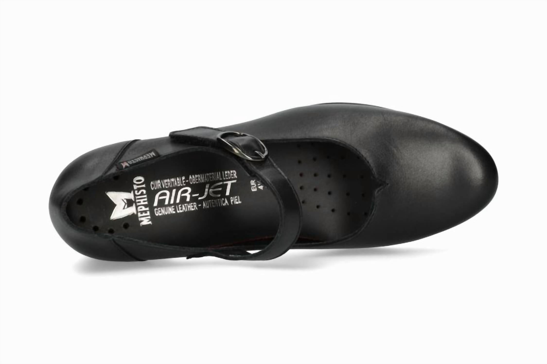 Step into comfort and style with the MEPHISTO Women's Gessika Mary Jane Pumps in elegant black. Made from full grain leather with a soft leather lining, these pumps promise both durability and foot hygiene. They feature a 1.18-inch block heel and a hook-and-loop closure adorned with a decorative buckle for a secure fit. With a removable footbed and a standard width, these shoes are completed with a rubber sole, and best cared for by following standard leather maintenance routines.
