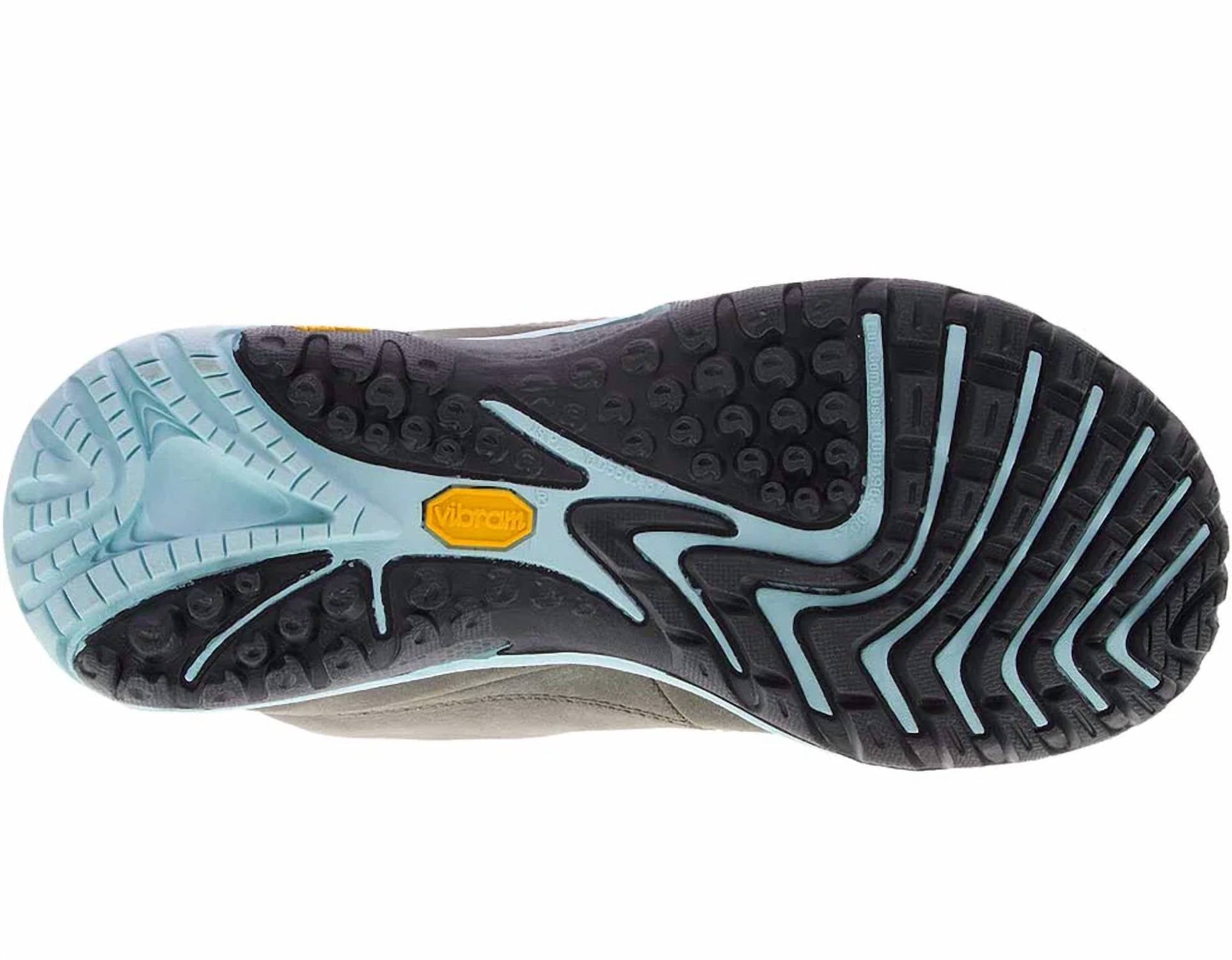 Meticulously crafted to accommodate the unique contours of a woman's foot. Featuring a sleek leather exterior in paloma/canal. Equipped with a waterproof membrane and a bellows tongue to keep moisture and debris at bay. Sport a metal hook traditional lace closure, breathable mesh lining, and a Vibram TC5+ rubber sole known for its extreme traction. Weighing 1lb 12oz per pair. Boast a Kinetic Fit BASE removable insole for support and a lightweight EVA foam midsole for added stability.