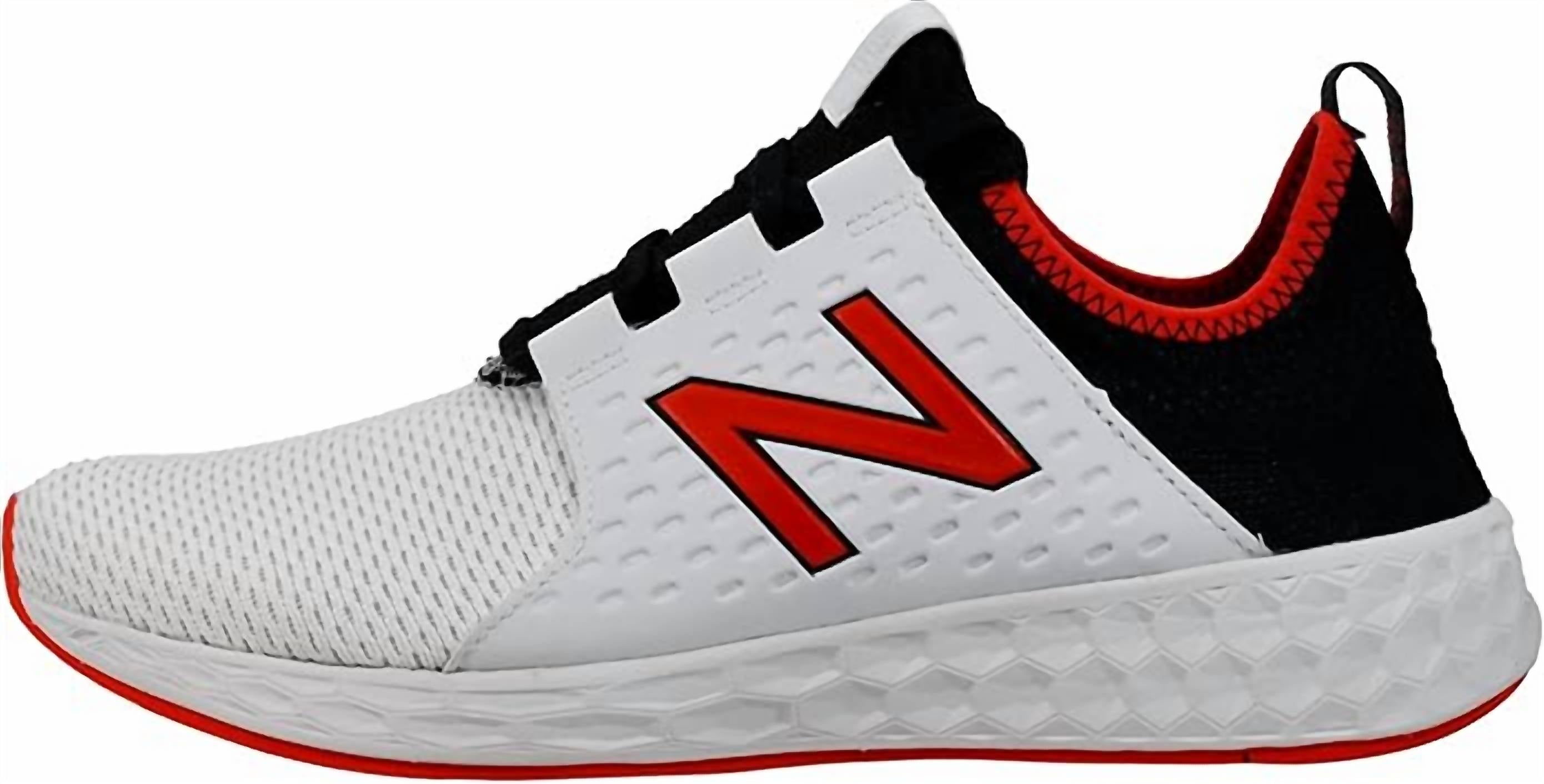 Experience unrivaled comfort and style with the Men's Fresh Foam Cruz V1 Reissue Sneaker by New Balance. This athleisure sneaker in a sleek white and black colorway features a sophisticated engineered upper crafted from synthetic material, coupled with a supportive midfoot saddle and soft knit for ultimate comfort. The award-winning Fresh Foam midsole technology ensures a well-cushioned and stable ride, perfect for fitness and workout occasions. Designed with a flat heel, round toe, and medium shoe width, this slip-on sneaker is an ideal summer companion.