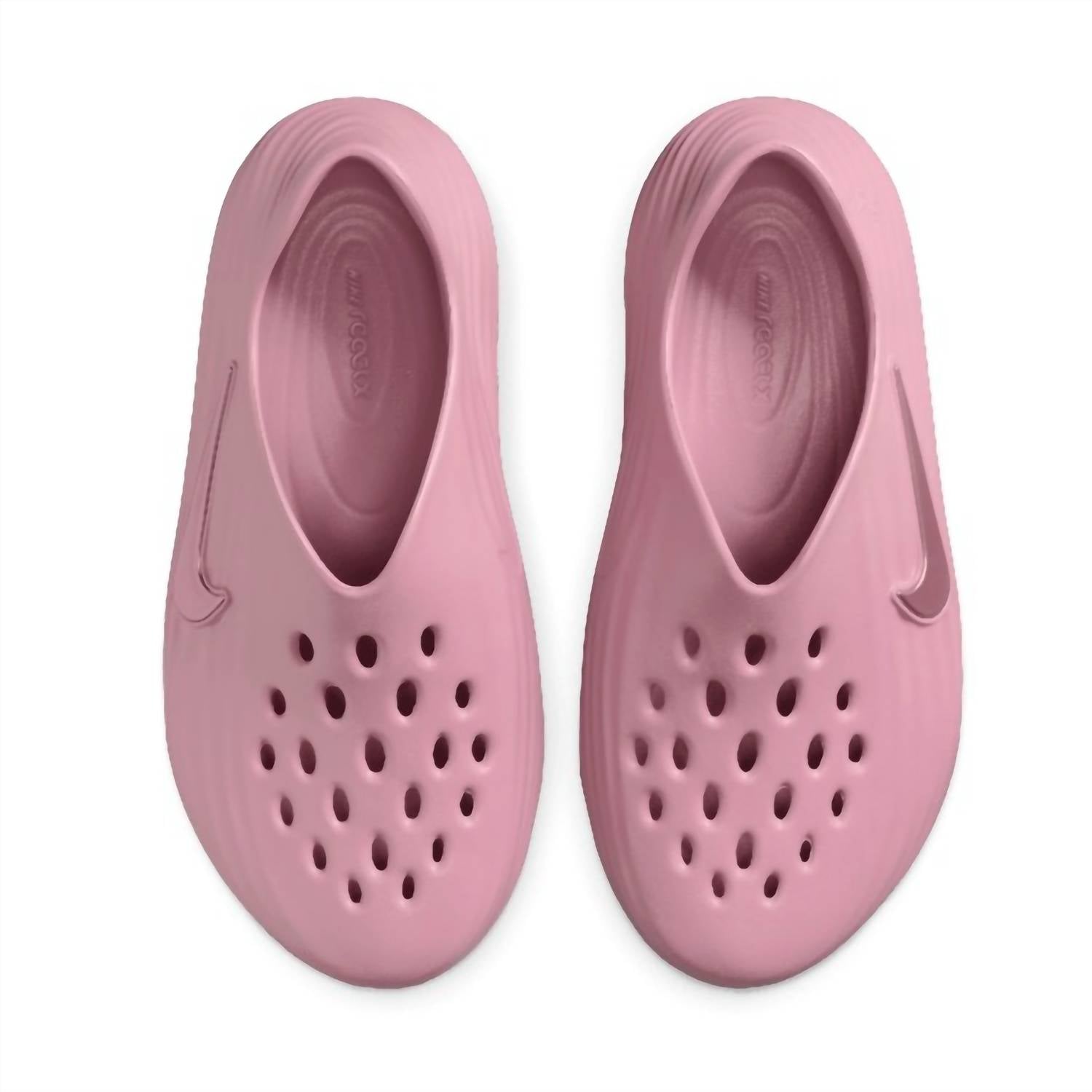 When fashion and function come together seamlessly. Experience ultimate comfort with the Women's ReactX Rejuven8 Shoes by Nike, designed in an enchanting Elemental Pink. Crafted using ReactX foam, these sneakers offer soft and responsive cushioning for unparalleled all-day wear, making them perfect for recovery or everyday activities. Featuring a sticky rubber outsole for enhanced grip and ventilation holes for breathability, these shoes accommodate various foot widths with extra room at the forefoot. Perfect for spring vacations or streetwear, they embody style and functionality in one chic package.