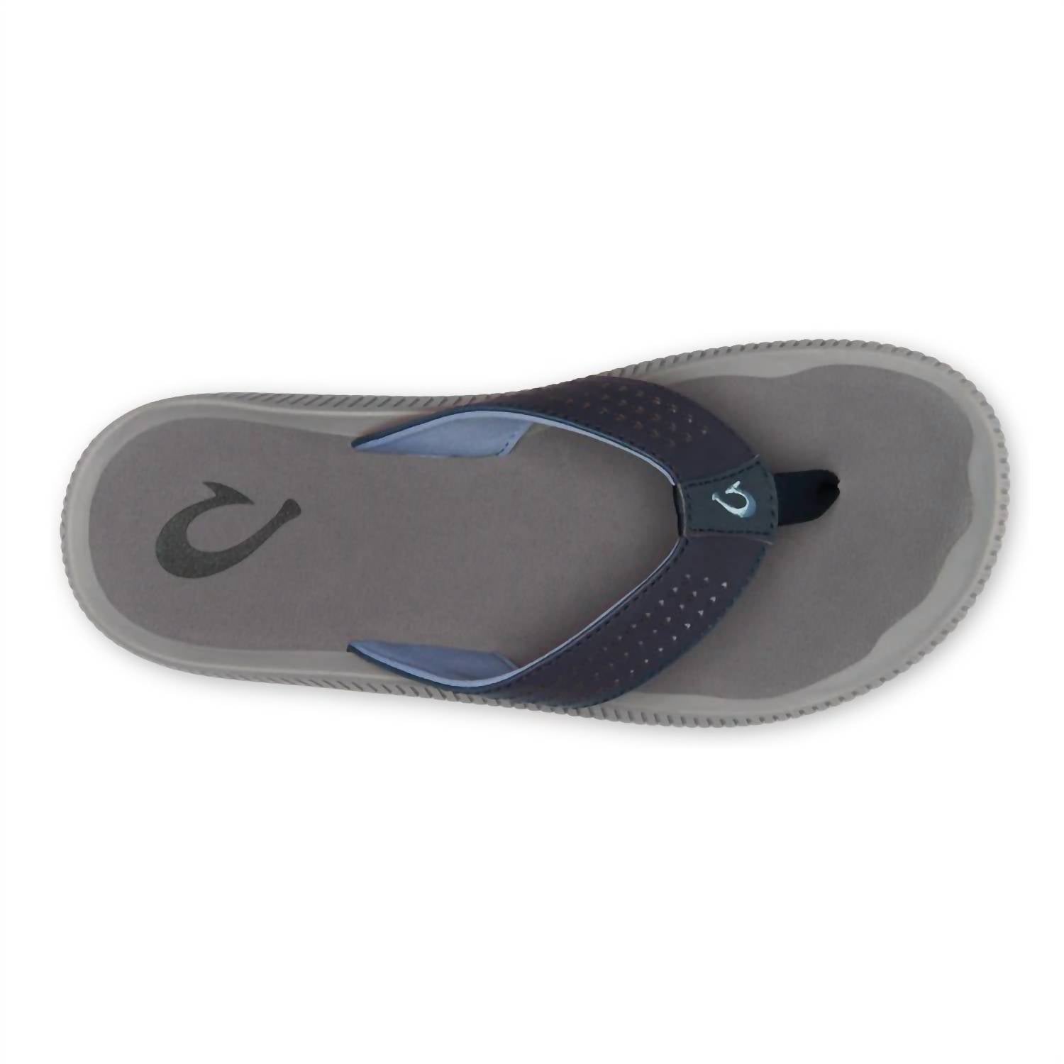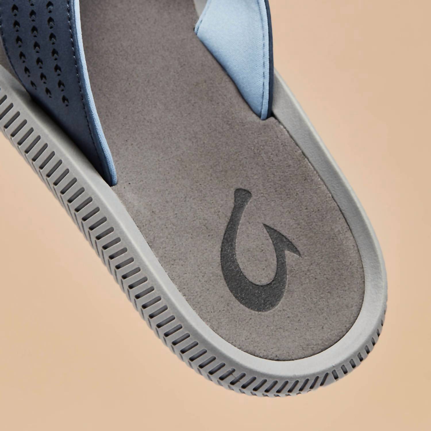 Meet the Men's Ulele Water-ready Beach Sandals by OluKai, a perfect blend of sneaker-like comfort and sandal versatility in Blue Depth/Charcoal. These lightweight, water-resistant sandals are designed to float, offering all-day comfort and enhanced traction for your beach and outdoor adventures. Featuring laser-cut upper straps inspired by the Kalo plant and an embroidered hook logo, these sandals deliver adaptable style for summer outings. With a flat heel and round toe shape, they’re ideal for vacation or a 90s fashion-forward 4th of July celebration.