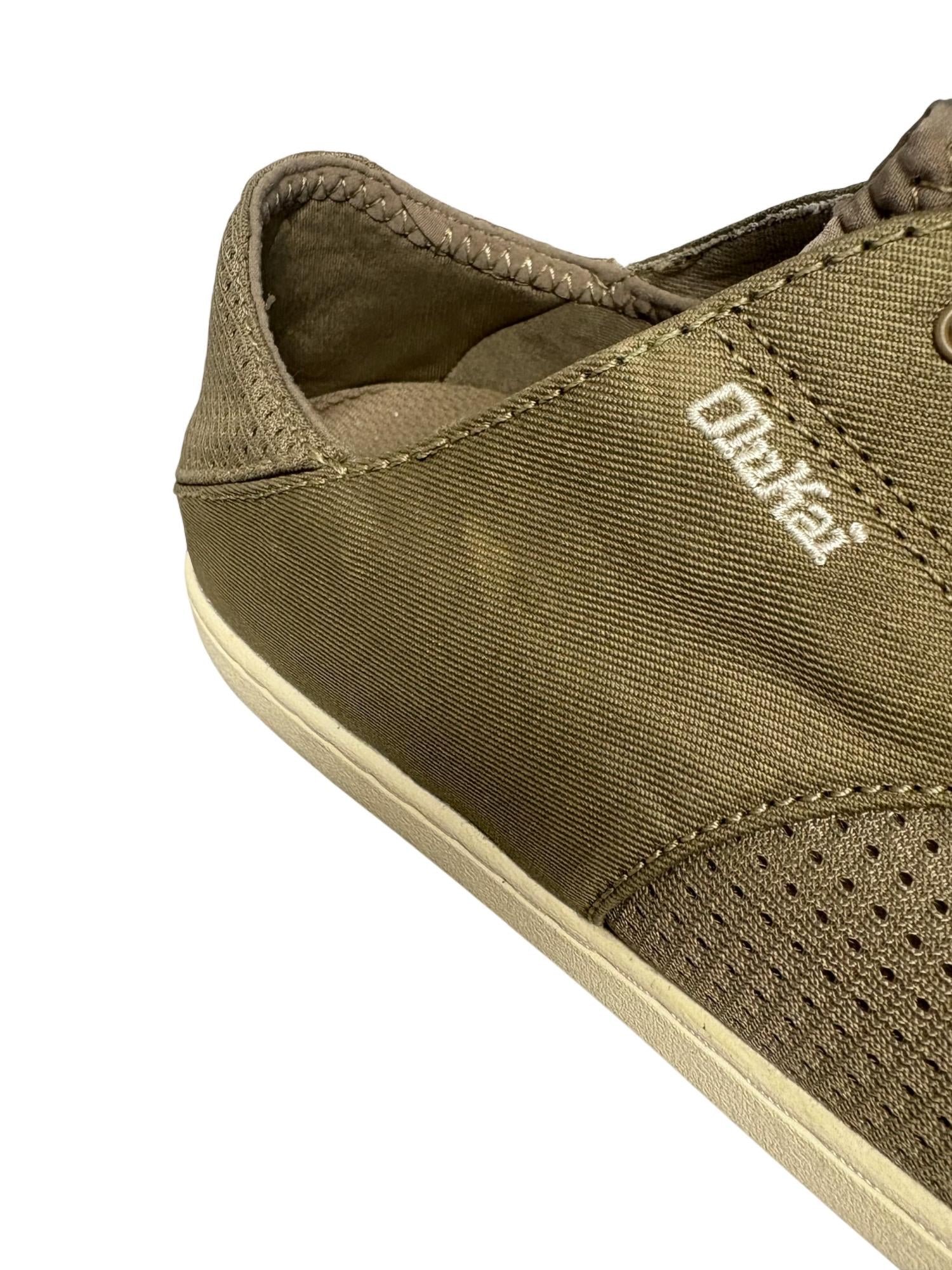 Please note: See image 5 for minor defect. There is a small stain on the right shoe. Additionally, shoe does not come in original branded box. Introducing the Men's Nohea Moku No Tie Boat Shoes by OluKai, the ultimate blend of style and functionality in a clay/tapa hue. Perfect for summer and vacation occasions, these shoes feature a lightweight breathable mesh upper with stretch air mesh tongue and elastic lacing for easy wear. The shoe boasts a dual-density anatomical PU footbed with a gel insert, ensuring comfort and breathability, and a non-marking rubber cupsole with razor siping for all-weather traction. Designed with a versatile patented Drop-In Heel®, these boat shoes transform effortlessly between shoe and slide, catering to the athleisure trend with ease. Crafted with a round toe shape, this footwear is ideal for the modern man seeking both comfort and style.