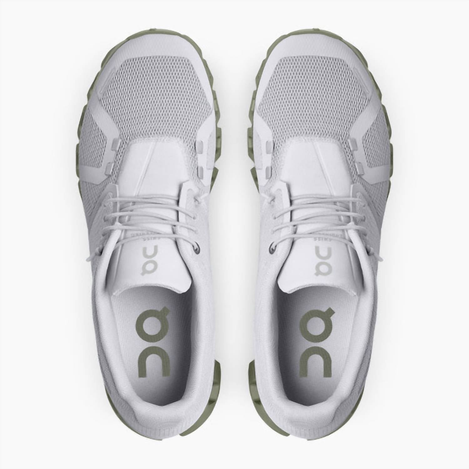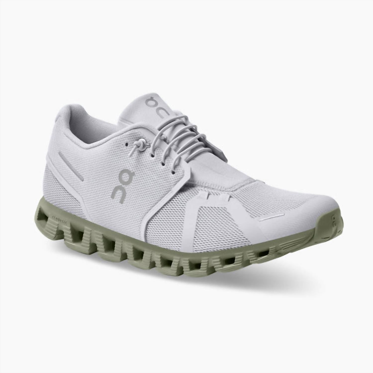 Experience the ultimate in comfort and style with the Men's Cloud 5 Sneaker by On Cloud, perfect for athleisure and fitness activities. Featuring a round toe and flat heel, this sneaker is re-engineered with 44% recycled content for an improved fit and enhanced comfort. Ideal for spring, the Glacier Reseda color offers a fresh look that complements any workout ensemble. Crafted to support your active lifestyle, these sneakers effortlessly blend innovation and eco-conscious design.
