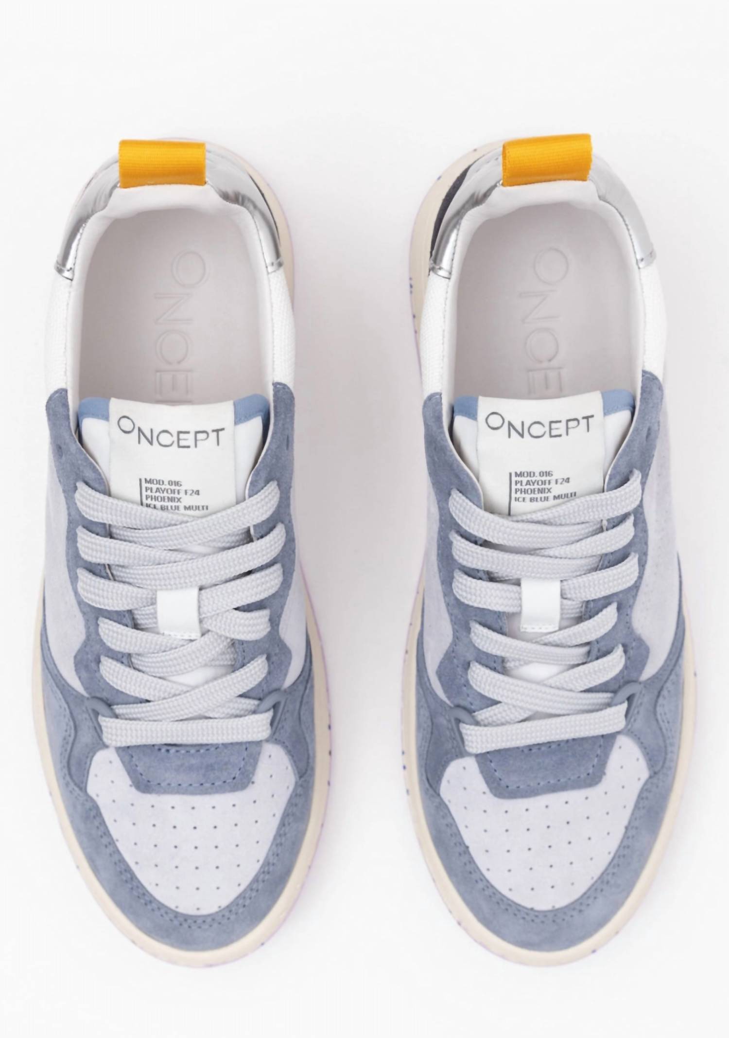 Get your daily steps in with these adorable sneakers. The Women's Phoenix Sneaker by Oncept is a stylish nod to the '90s with a contemporary twist. Crafted from multi-colored leather, these sneakers feature a round toe shape and a flat heel under 1 inch, perfect for all-day comfort. Organic cotton laces add a sustainable touch, while re-speckled soles enhance the look with a modern edge.