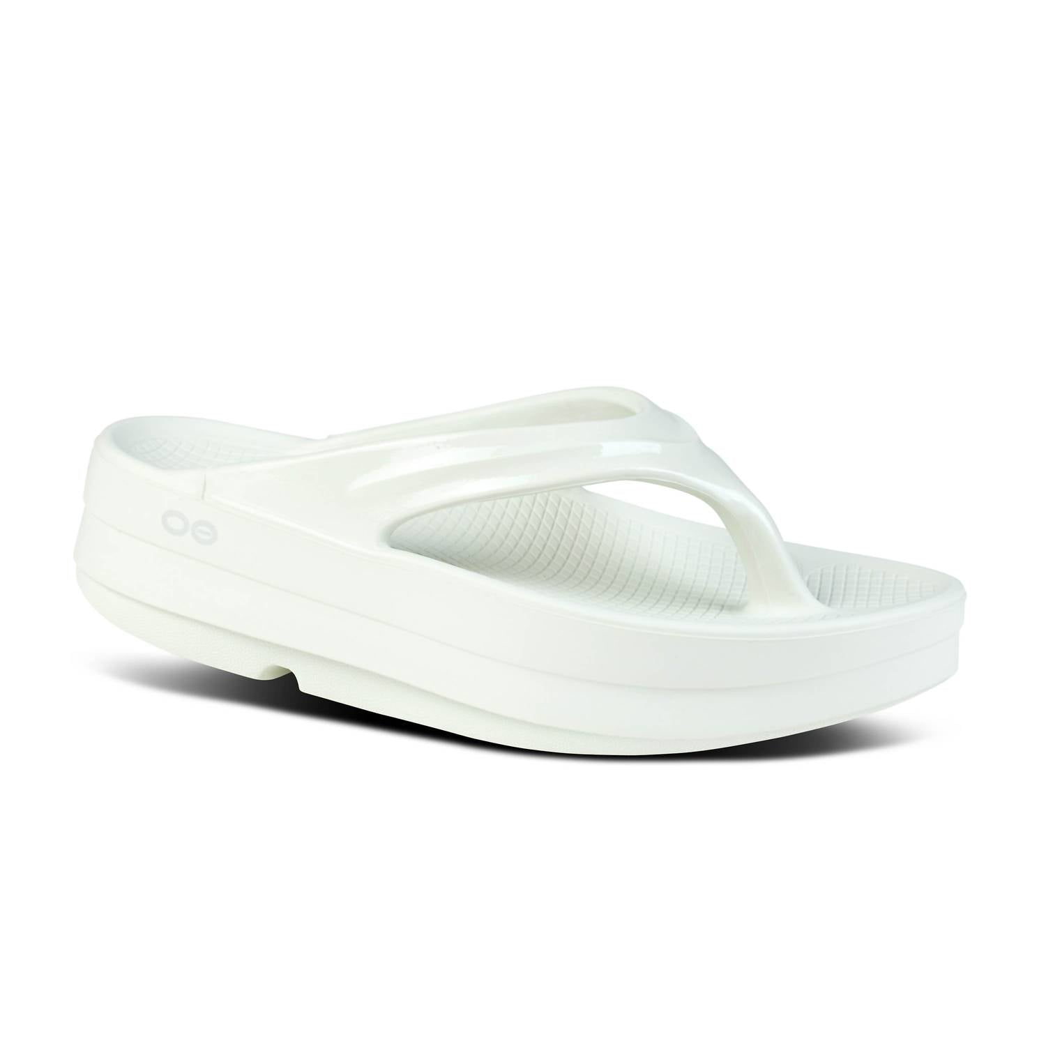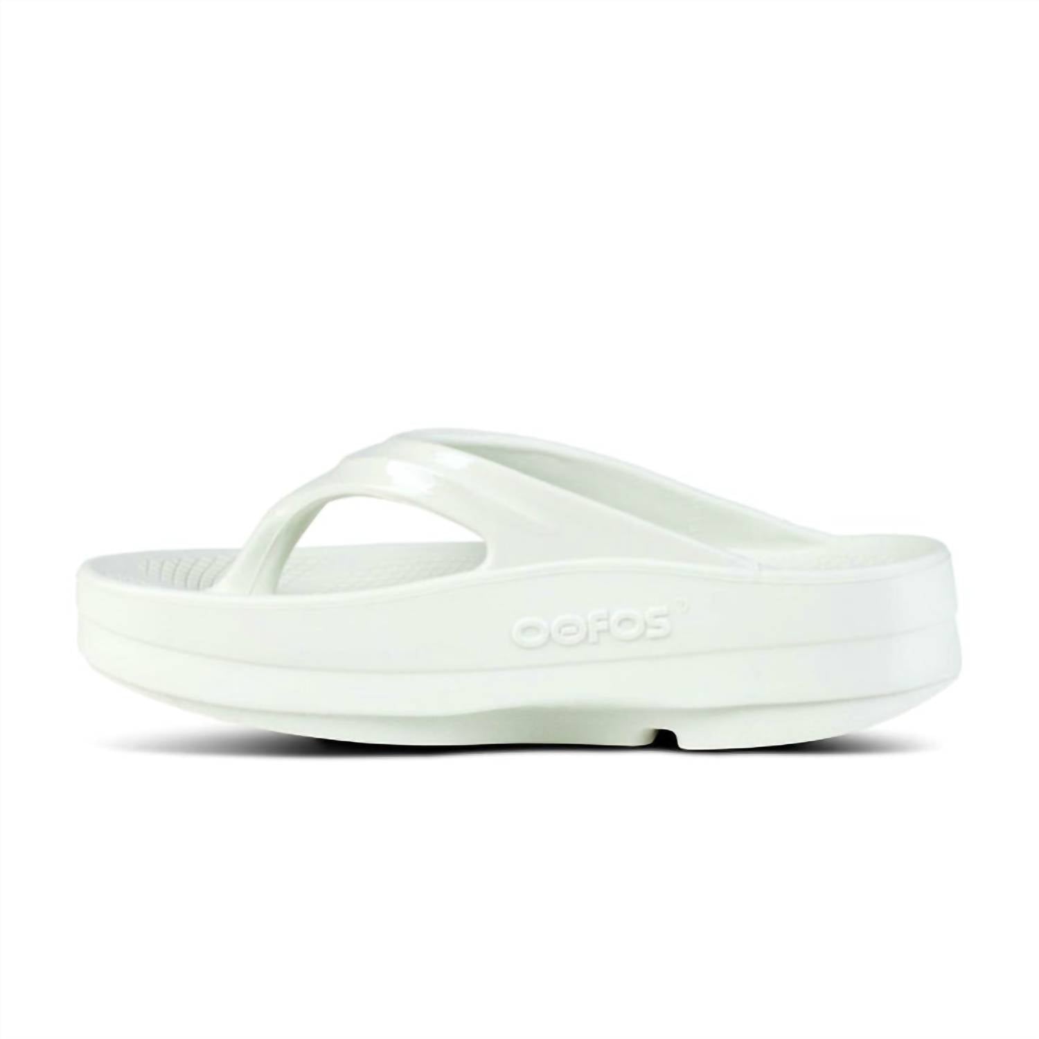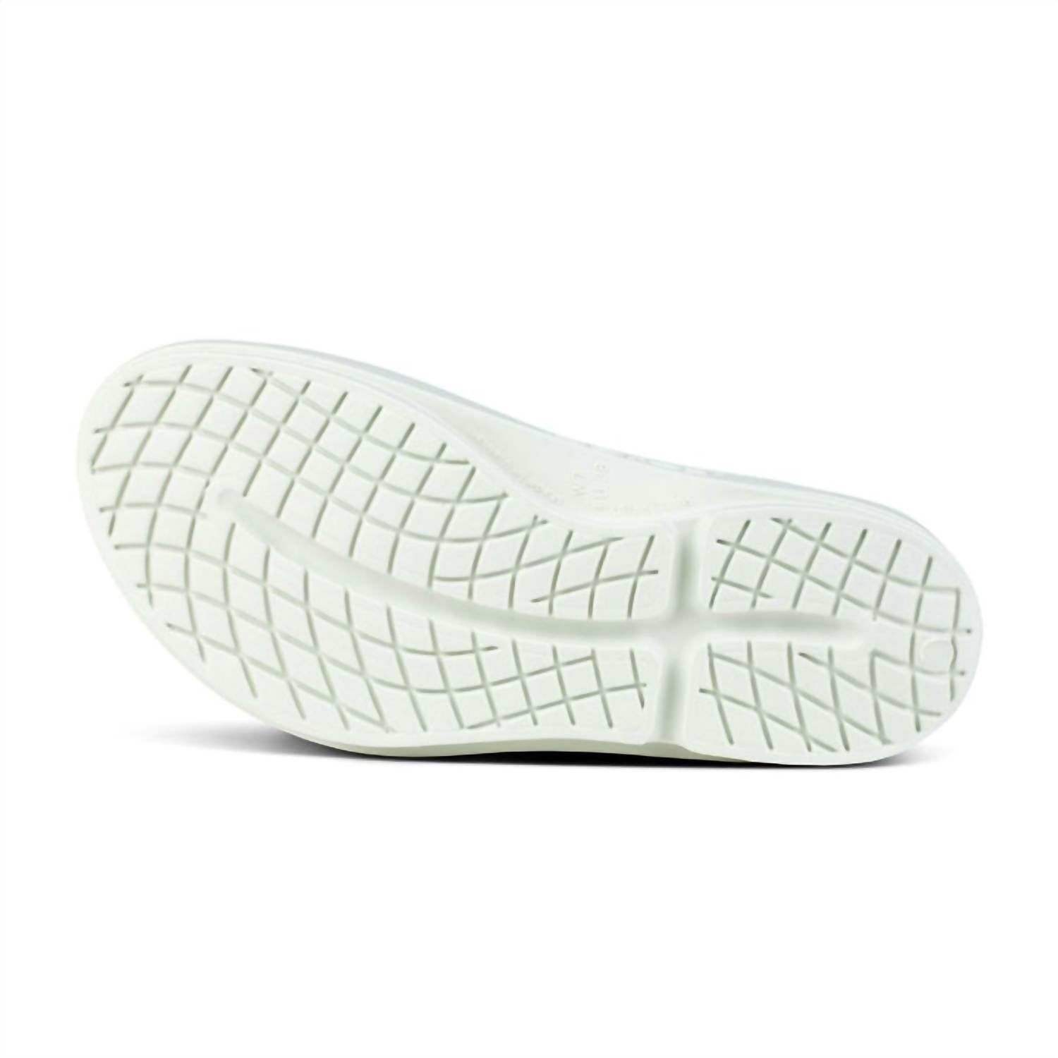 Introducing the Oomega Thong by OOFOS, a must-have for your summer vacation wardrobe. These slippers feature an open toe design with a flat heel, perfect for relaxed strolls. The Cosmic Gray color adds a touch of sleek style to this women's footwear. Ideal for adult wearers seeking comfort and effortless style.