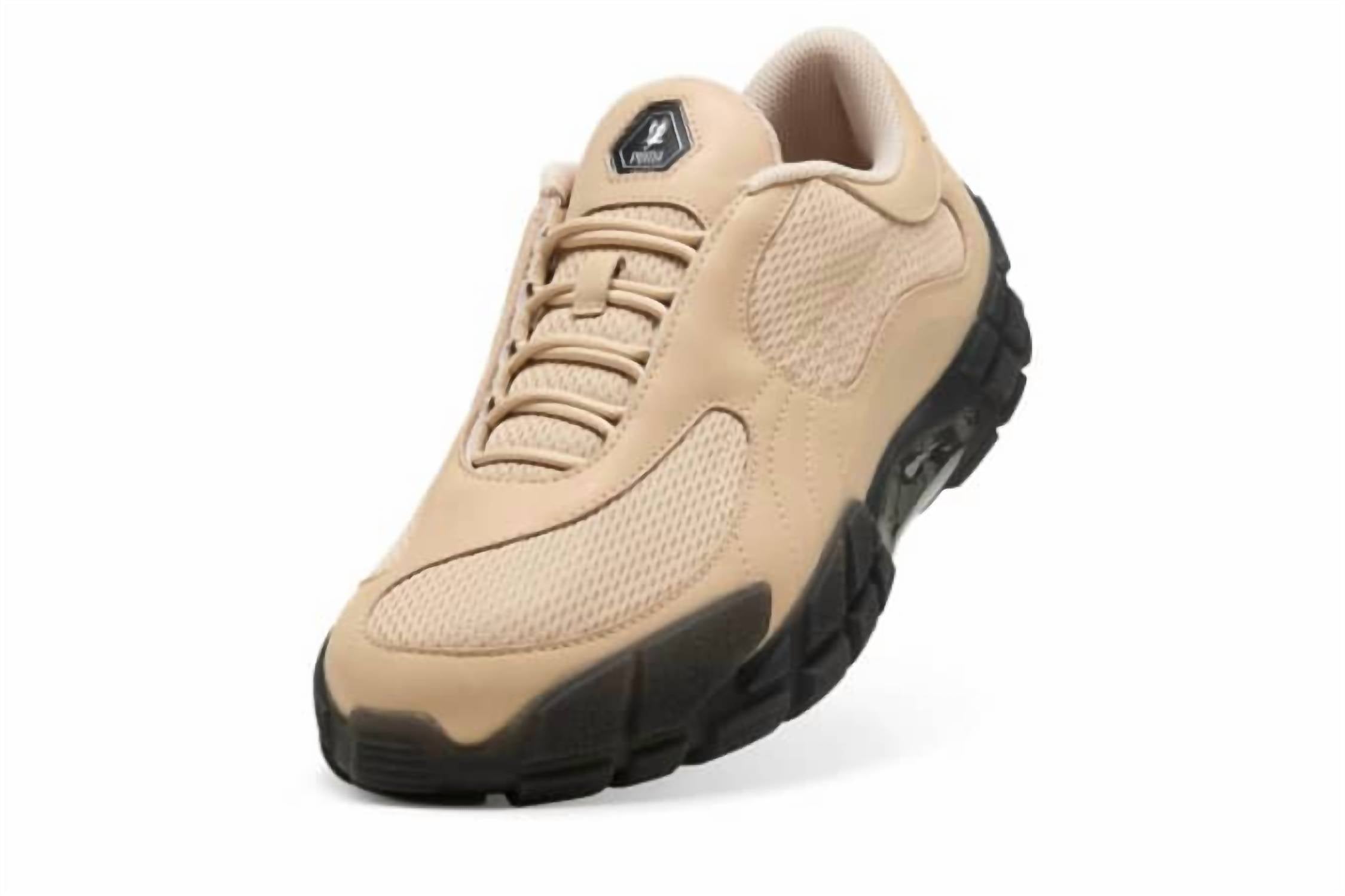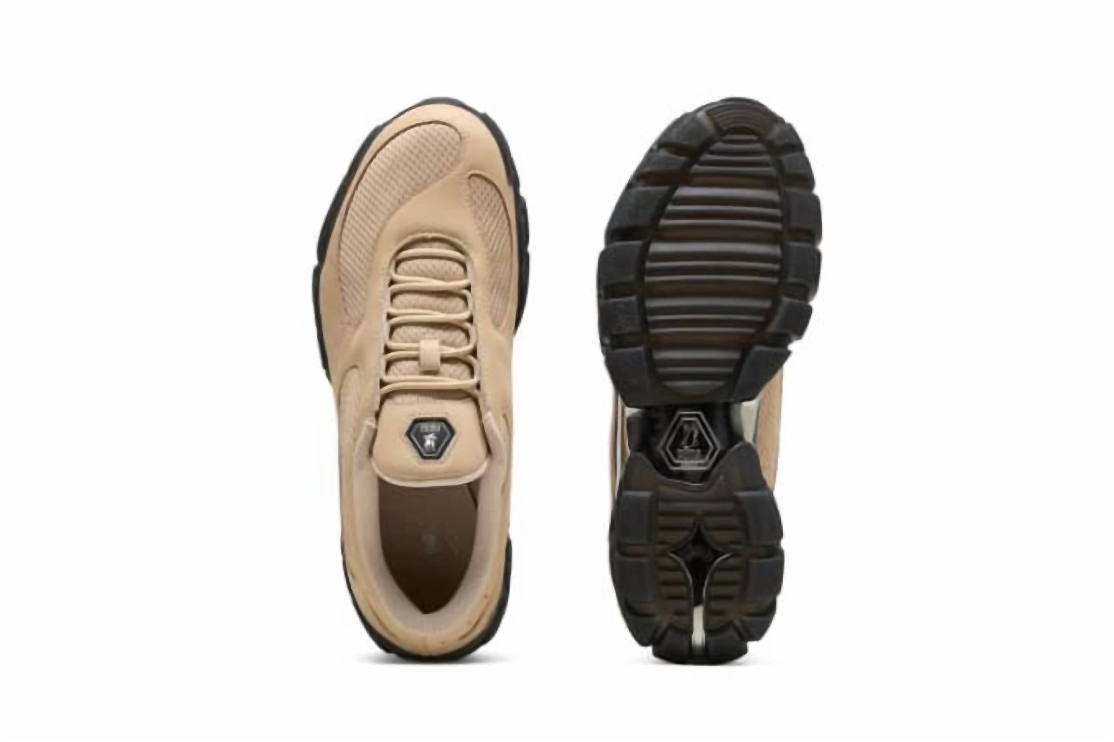 Step into style with the Men's X Skepta Forever Nbk Sneaker by Puma, co-created with Grime legend Skepta. These sneakers showcase a blend of open mesh and premium leather on the upper, offering a tech-luxe touch reminiscent of early 2000s footwear. The co-branded eagle logo is highlighted against a barely-there stitched Formstrip, while the rugged black midsole features striking silver metallic plates. Available in a versatile "Granola" colorway, these sneakers are a testament to Skepta's celebrated design influence.