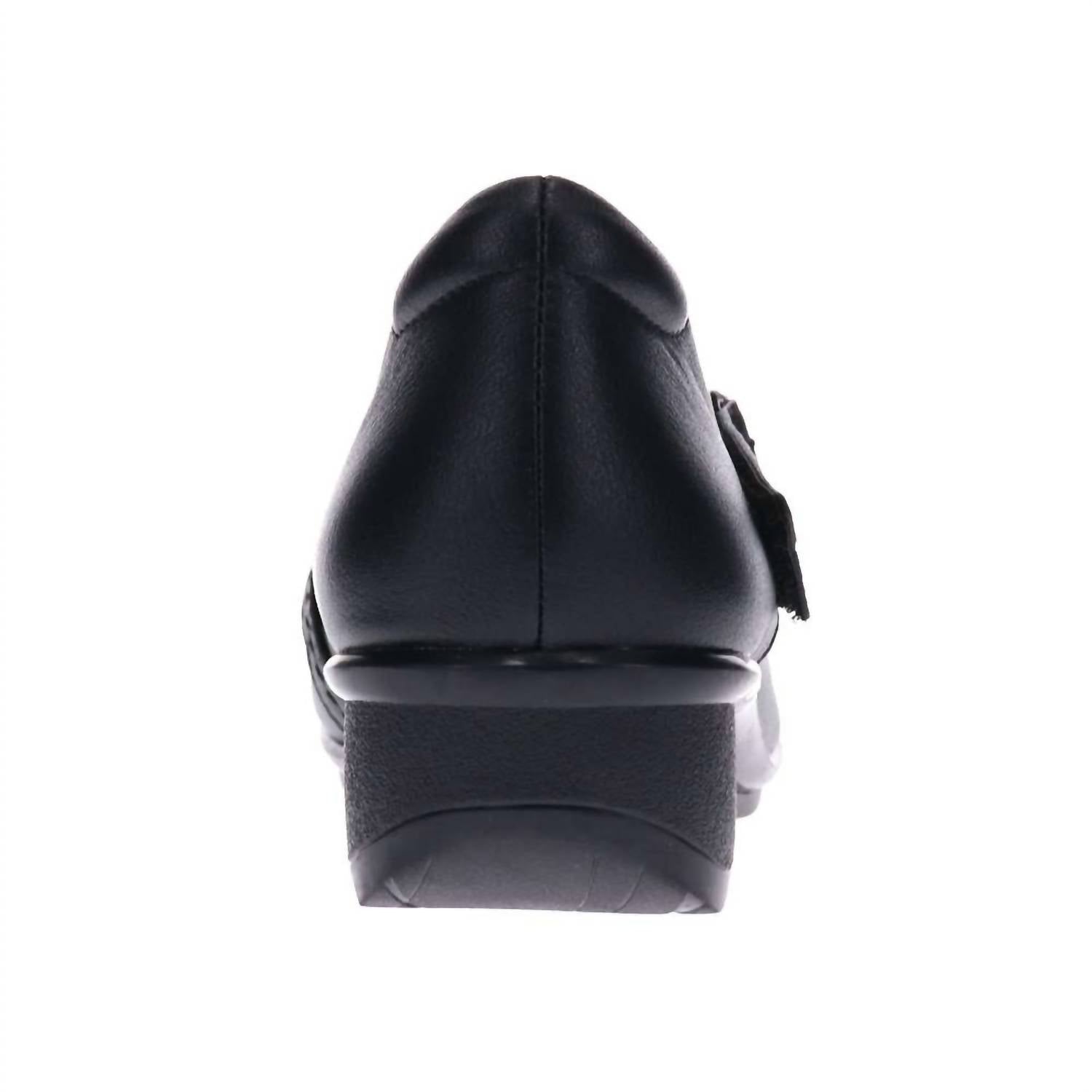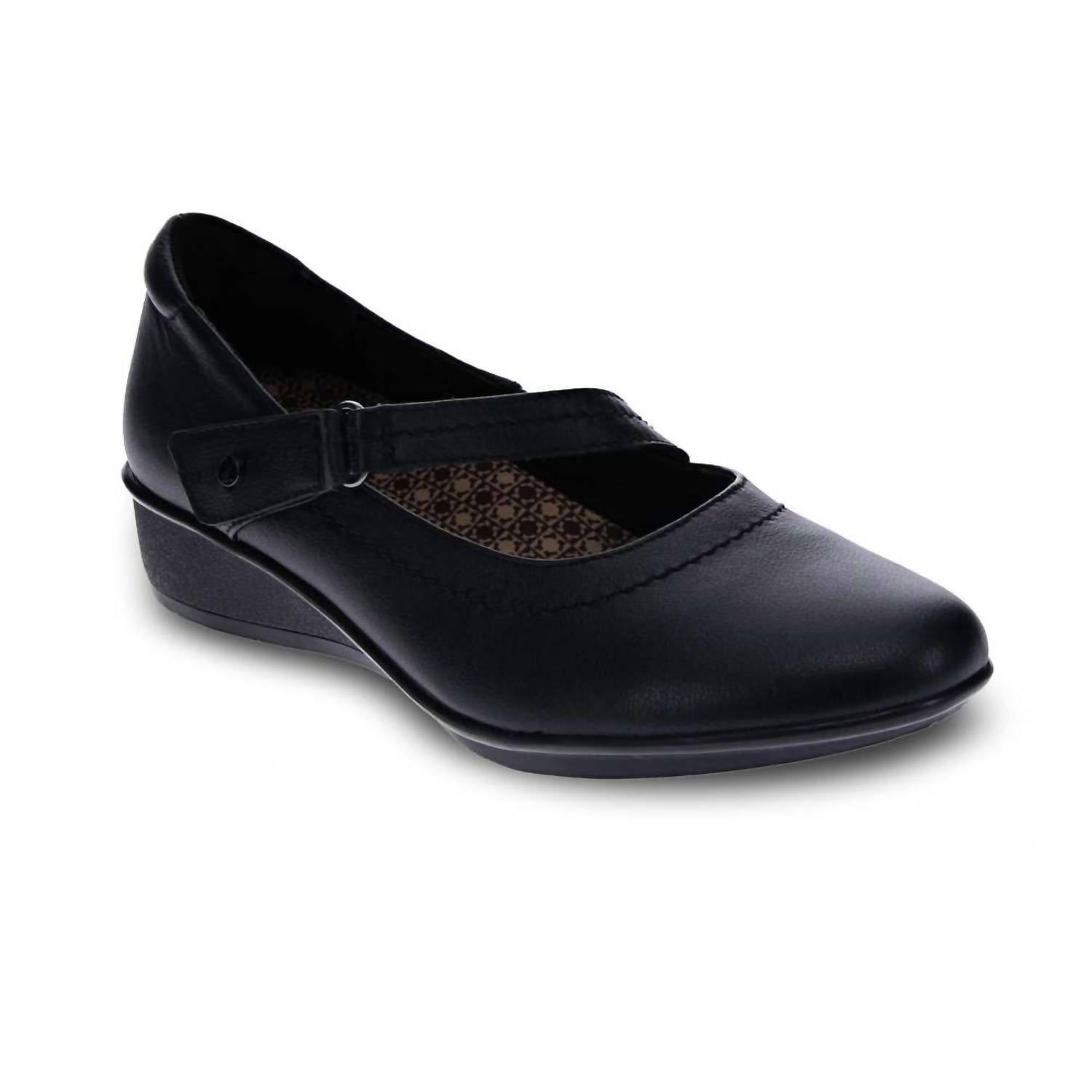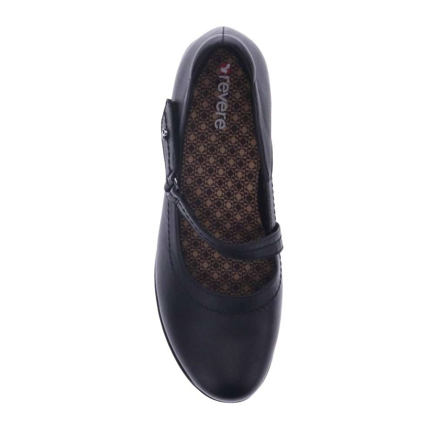 Elevate your footwear collection with the Revere Women's Bonn Mary Jane Shoes in chic Black French. Crafted from premium leather, these shoes boast an adjustable asymmetrical vamp strap for a modern twist on a classic design, and feature a 1.5-inch wedge heel for a subtle lift. Designed with comfort in mind, they include a removable footbed for custom orthotic compatibility, a forefoot cushion zone, and a slip-resistant outsole, ensuring every step is as comfortable as it is stylish. Care for your shoes by wiping clean with a damp cloth and air drying under indirect sunlight—no submersion or solvents needed.