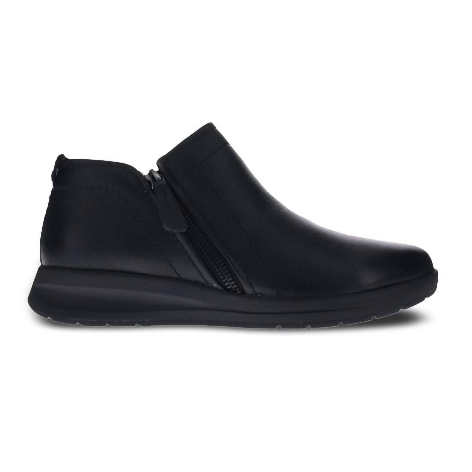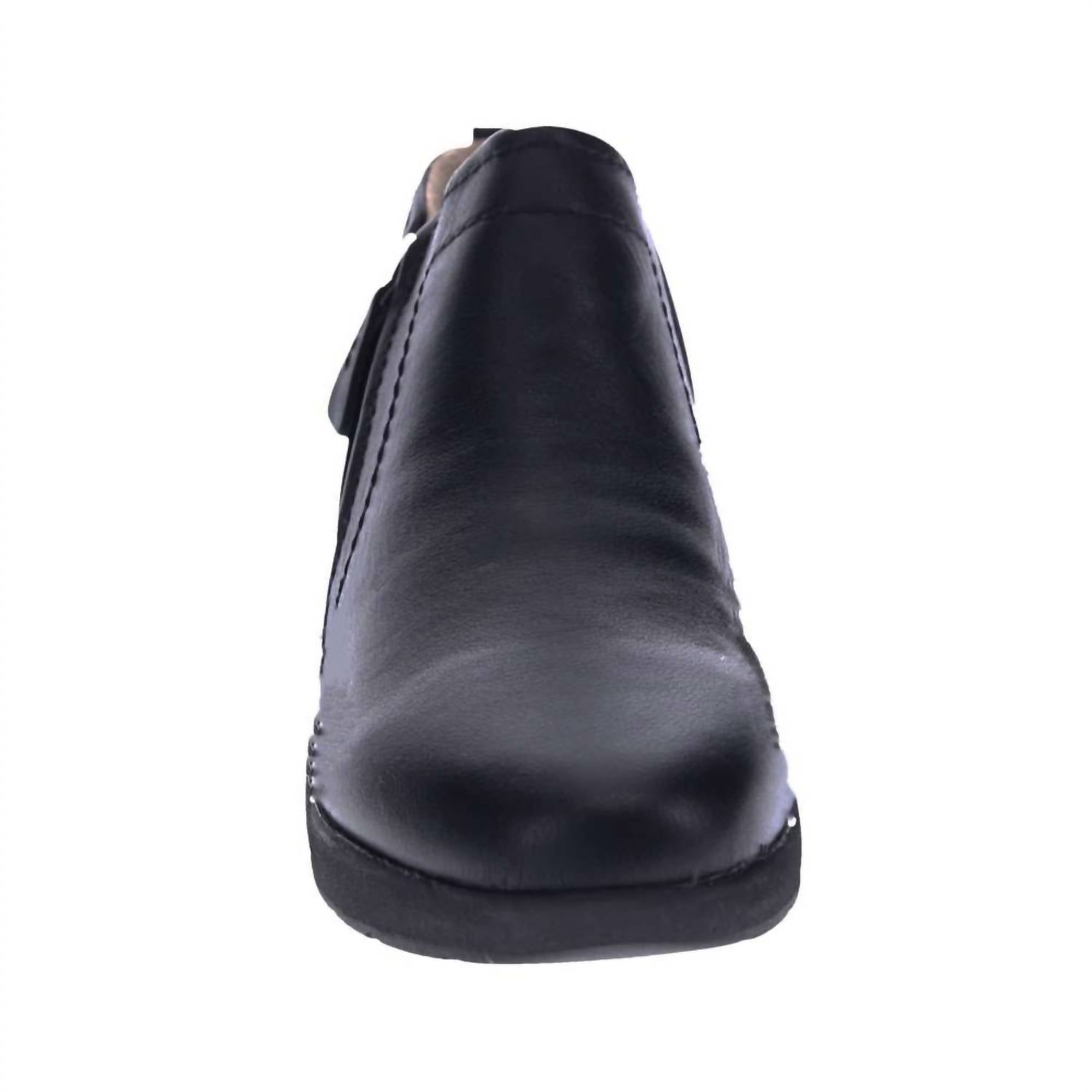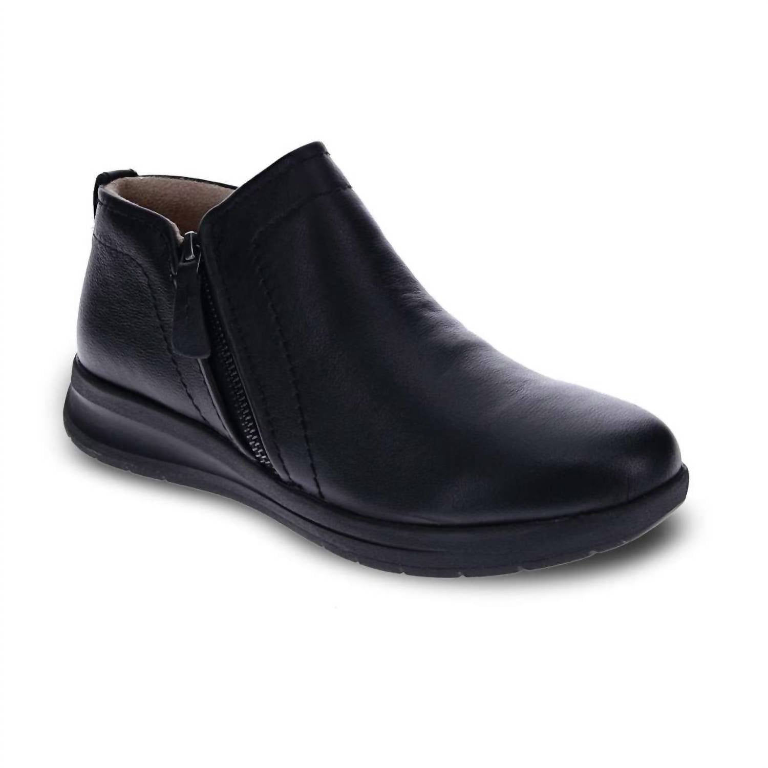 Experience the Women's Dublin Leather Ankle Bootie by Revere, a stylish and versatile piece designed for comfort and support in chic Black French. Crafted from premium leather with a wedge heel, this bootie offers a low heel height of 1 1/4" to 2" and features a slip-resistant rubber outsole, perfect for safe travels. It includes a removable EVA footbed with built-in arch support, allowing for custom orthotics, while the adjustable uppers ensure a perfect fit without sacrificing style. For care, simply wipe with a damp cloth and air dry under indirect sunlight.