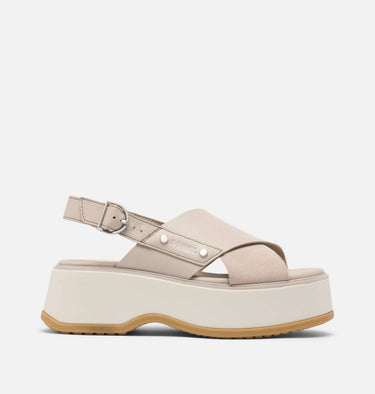 Step into style with the SOREL Women's Dayspring Crisscross Sandal in Crushed Clay/Chalk, an elegant blend of leather and suede with a practical adjustable ankle strap. The open-toe design is elevated by a 2.25" platform heel that adds height without compromising comfort. Enjoy the plush EVA footbed and stay secure with the molded EVERTREAD™ rubber outsole. This sandal is a chic choice for effortless, all-day wear.