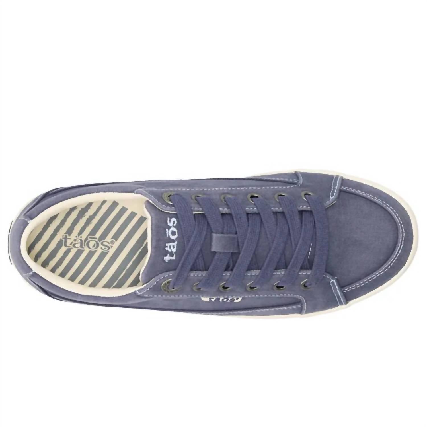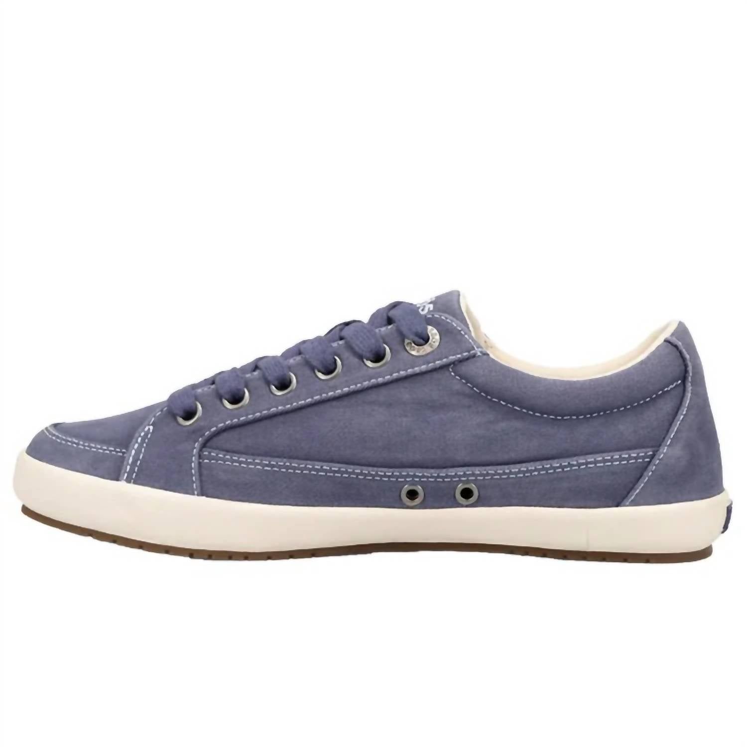 Step up your shoe game with the Taos Women's Moc Star Sneaker in Indigo, offering both style and comfort. Thoughtfully designed with arch and metatarsal support, these canvas upper sneakers provide an antimicrobial shield and forefoot cushioning for ultimate comfort. They feature a durable rubber outsole and are orthotic friendly, weighing just 9.6 oz per shoe with a heel height of 0.75 inches. Care for them is simple: spot clean the upper with a damp cloth to keep them looking fresh. Ideal for a minimalist spring style, these sneakers suit any occasion, from casual outings to dinner parties.