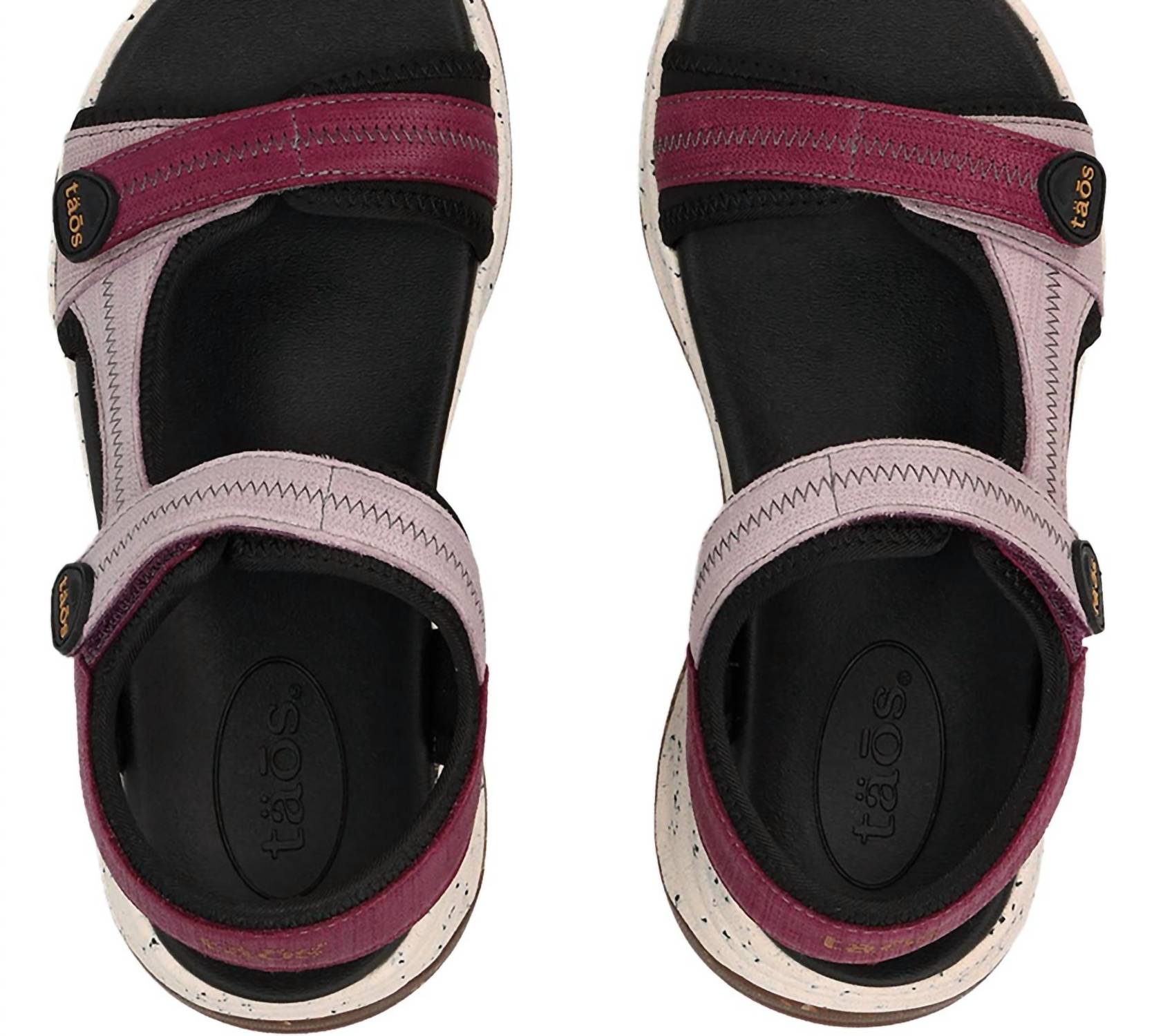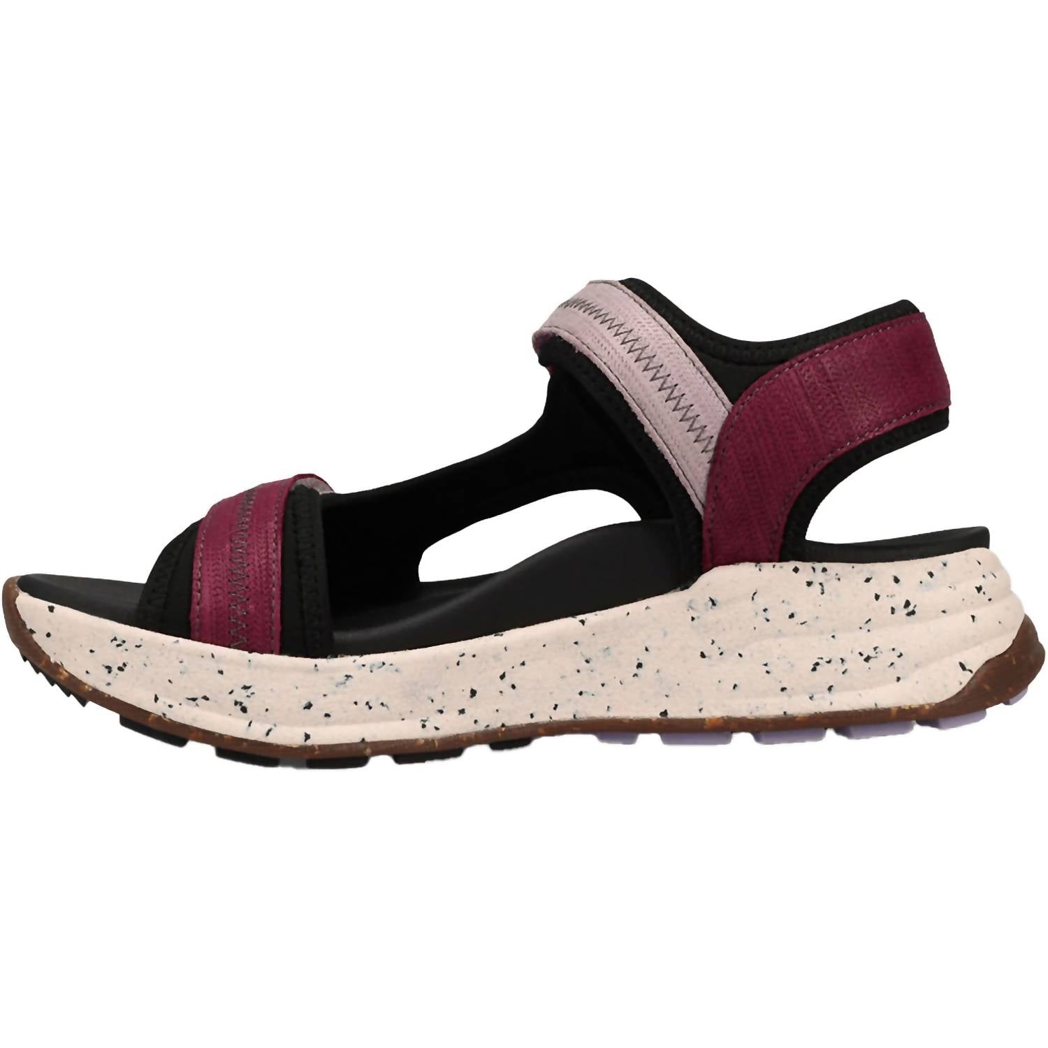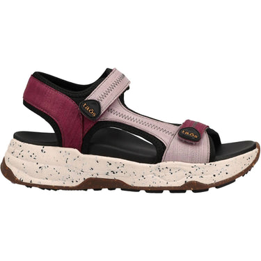 Embrace the comfort and practicality of the Taos Women's Super Slide Sandals in a rich plum embossed leather and nylon. Designed with moderate arch and metatarsal support, these sandals feature a comfy footbed and grippy rubber outsole for versatile wear. Two hook and loop closures ensure a secure fit, while the forefoot cushioning adds extra comfort. With a 1.375-inch heel height and a stylish open-toe design, these sandals are perfect for spring adventures and camping trips.