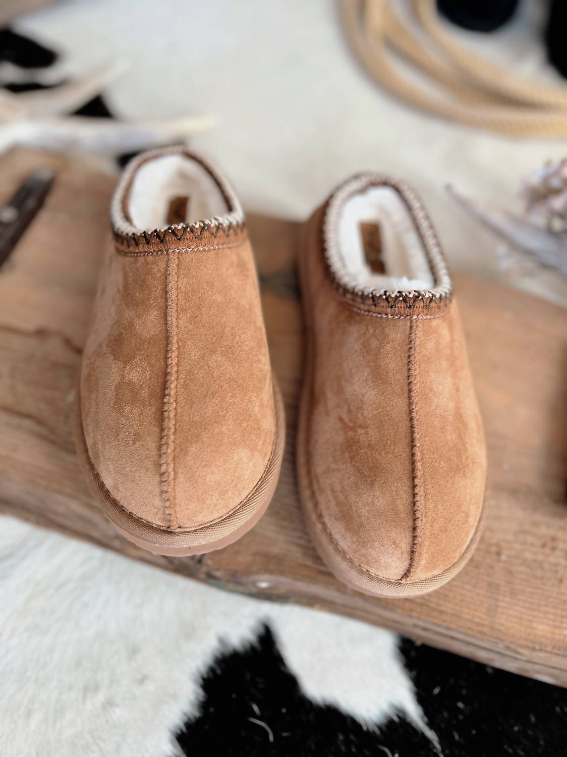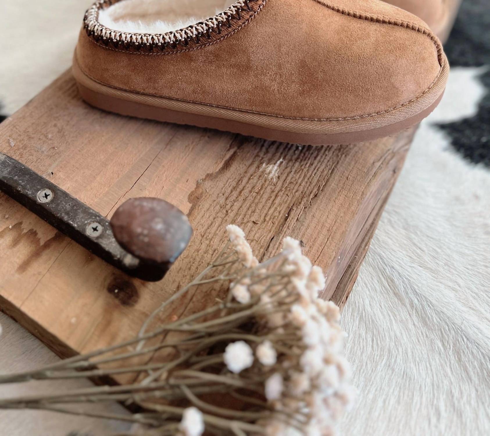 Pair these with a cozy robe and we call this loungewear luxe. Discover the Very G Women's Sparks Fuzzy Slippers, the perfect blend of style and comfort. These slippers feature a faux fur lining and a faux suede outer shell, ensuring your feet stay warm and cozy. Designed with a hard sole for support, the easy slip-on design makes them a breeze to wear. Ideal for lounging at home, these brown slippers are a must-have for ultimate relaxation.