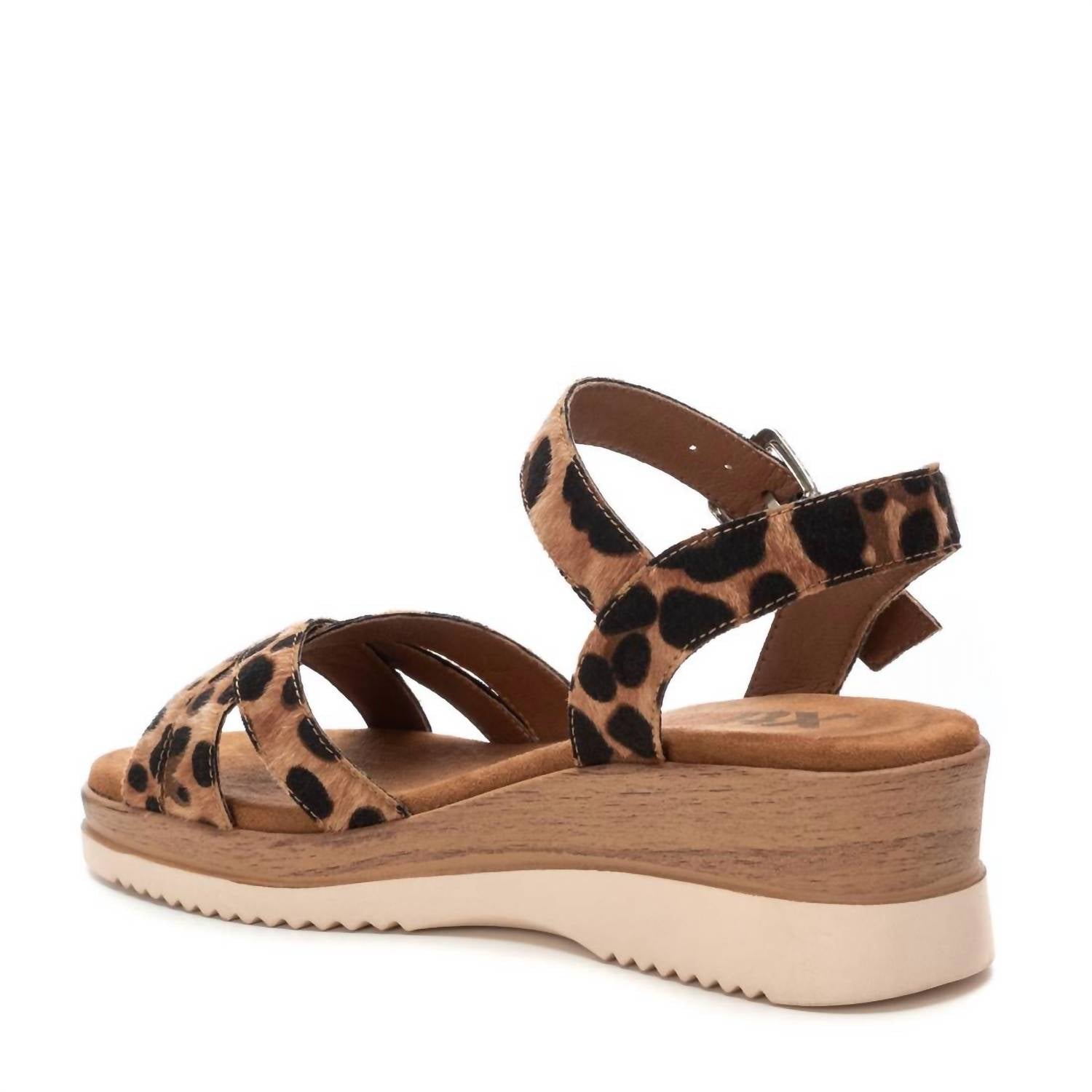 Elevate your ensemble with the Women's Animal Print Wedge Sandals by Xti, perfect for any occasion. These sandals feature an ankle bracelet with a metal buckle fastening and a round toe for stylish comfort. Made with material that imitates leather, they flaunt a chic animal print design. Set on a low wedge and finished with a non-slip sole, these sandals promise all-day comfort in camel.