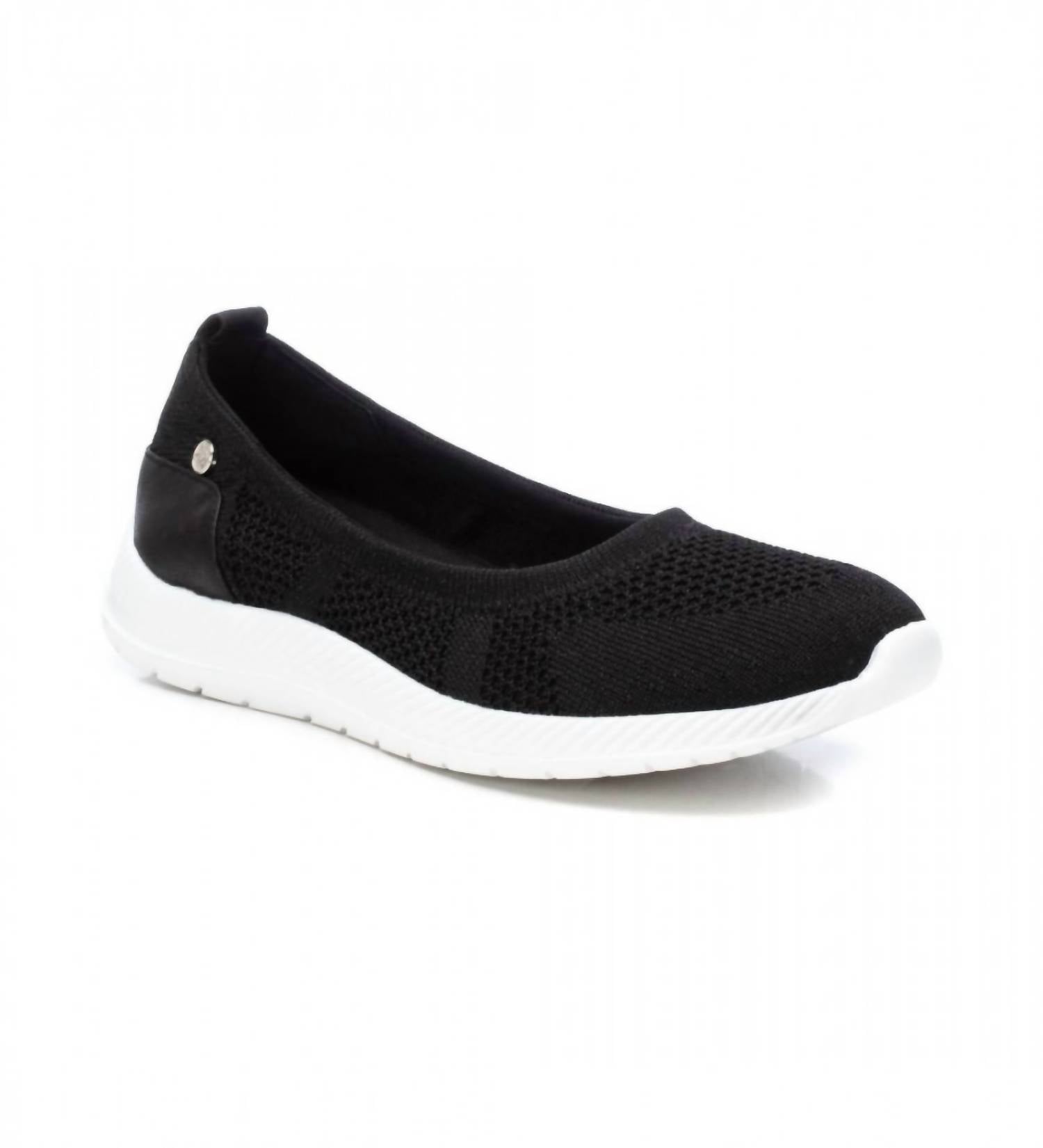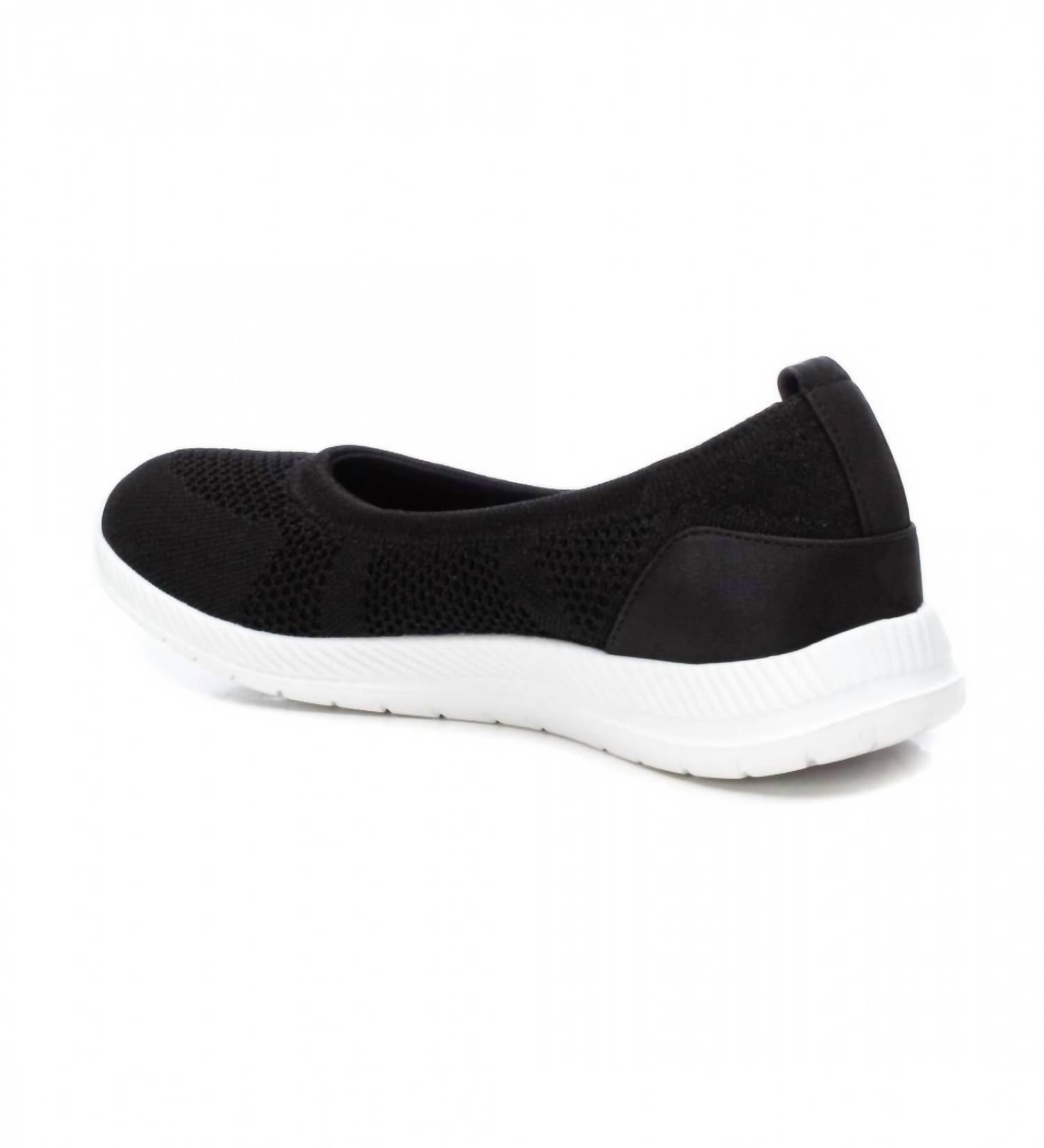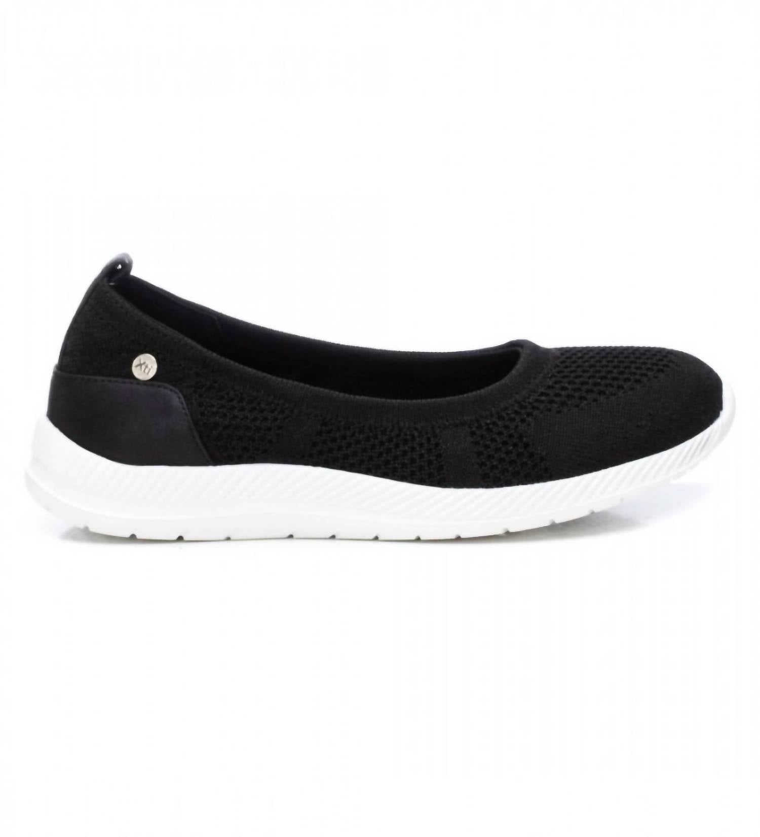 Made of fabric with metallic details. Rear detail in material that imitates leather with a slight shine. Non-slip rubber sole.