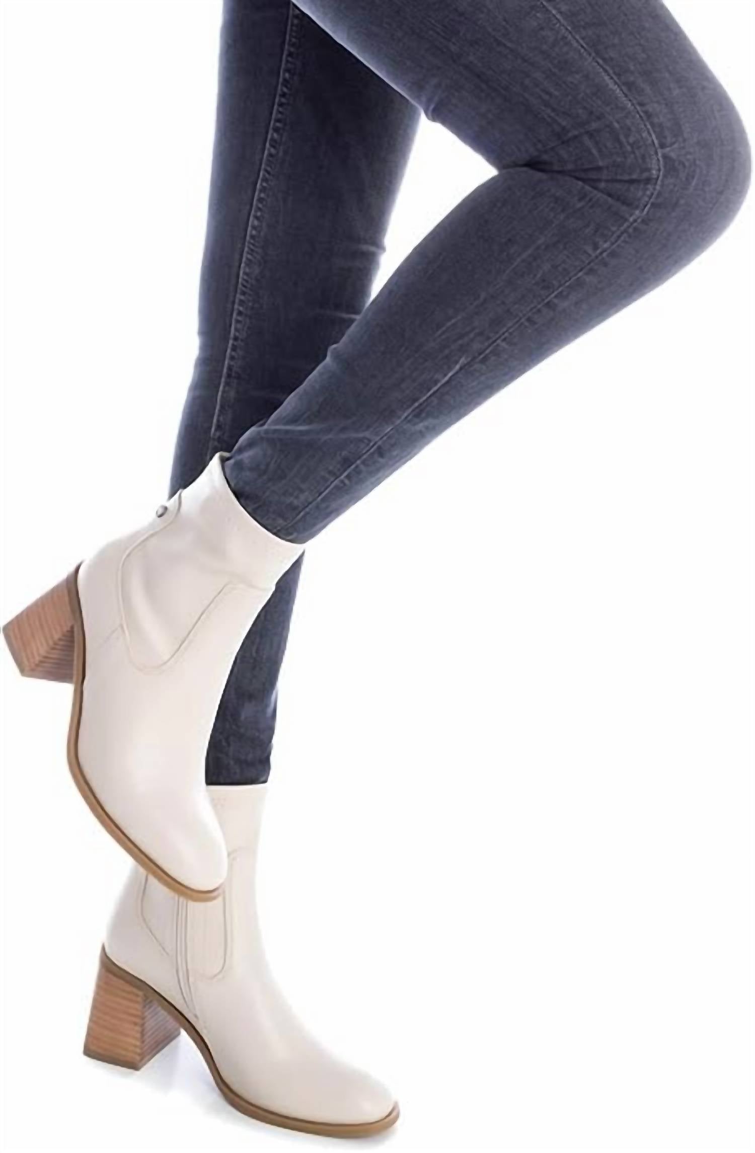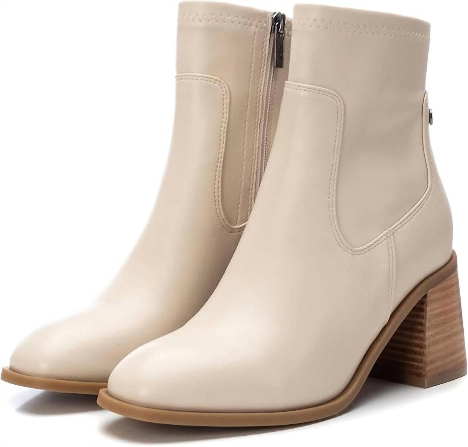 Say hello to the perfect, most versatile boot. The ankle height makes this style easily transition from day to night. Wear them with your favorite skinny jeans and tee for a more laid back look, or pair them with your favorite mini dress and jacket for a night out on the town.Made of material that mimics the skin, Chelsea type sock that fits the leg. Side zip. 7 cm wide heel with non -slip sole.