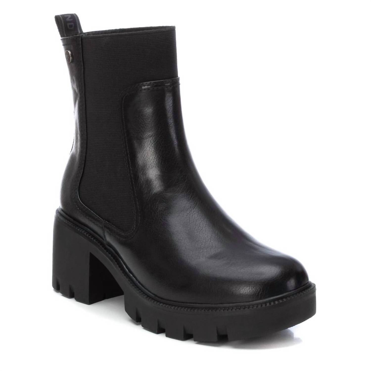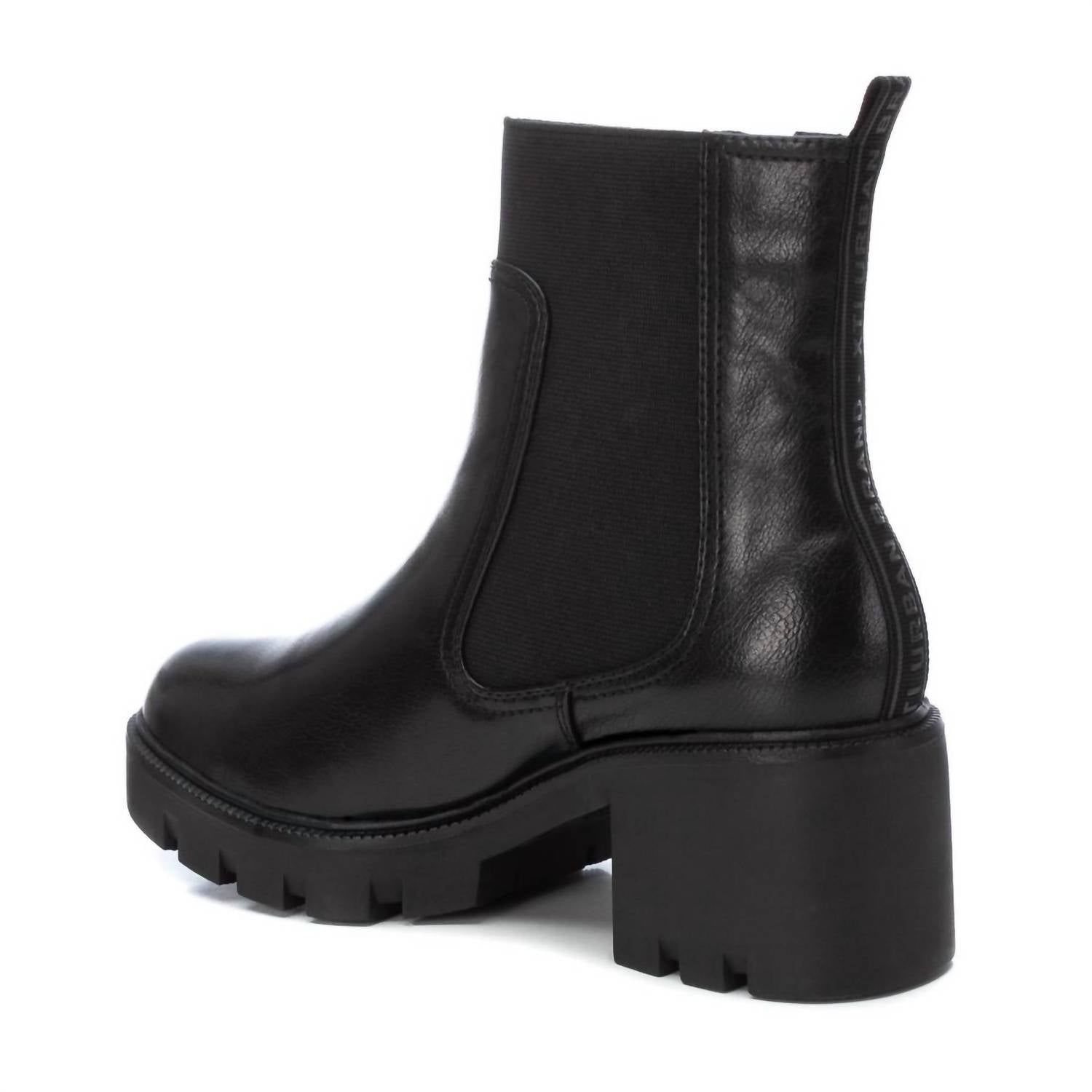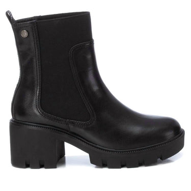 Elevate your footwear collection with the Women's Chelsea Booties by Xti, designed for both style and comfort. These black ankle boots, made from high-quality faux leather, feature a 2.36-inch mid block heel and a non-slip rubber lug sole for enhanced durability. They offer a snug fit with elastic side bands for easy wear, and are certified vegan by PETA. The bootie's breathable material and padded insole ensure all-day comfort, making them an ideal choice for any outfit.