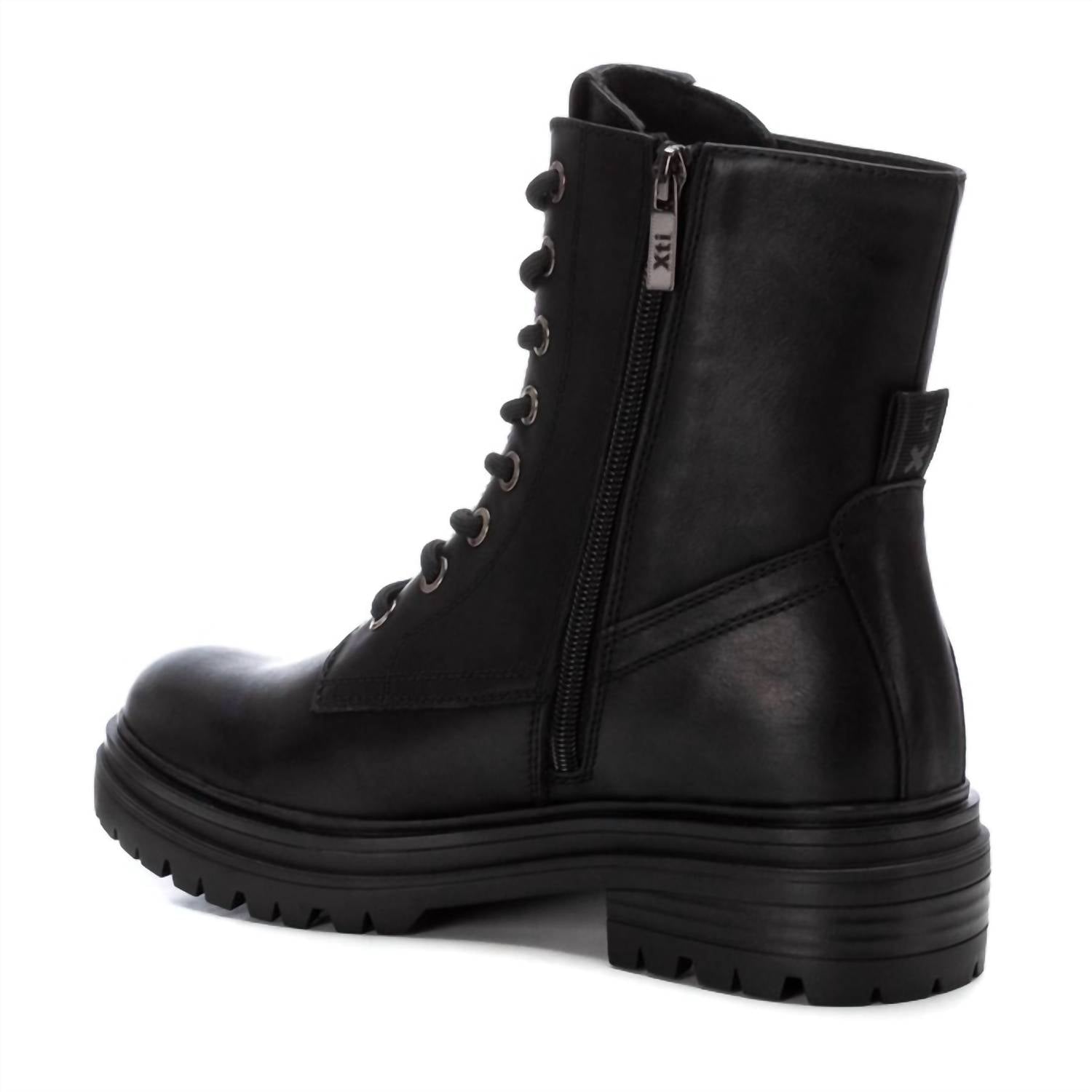 The most effortlessly cool moto boots that are just a comfortable as they are easy on the eyes.This Combat Booties are crafted from sleek faux leather with a side zipper, adjustable laces, and a 1.57-inch block heel for a comfortable lift. The thick, non-slip serrated sole ensures durability and traction, while being certified vegan by PETA for an ethical, stylish choice.