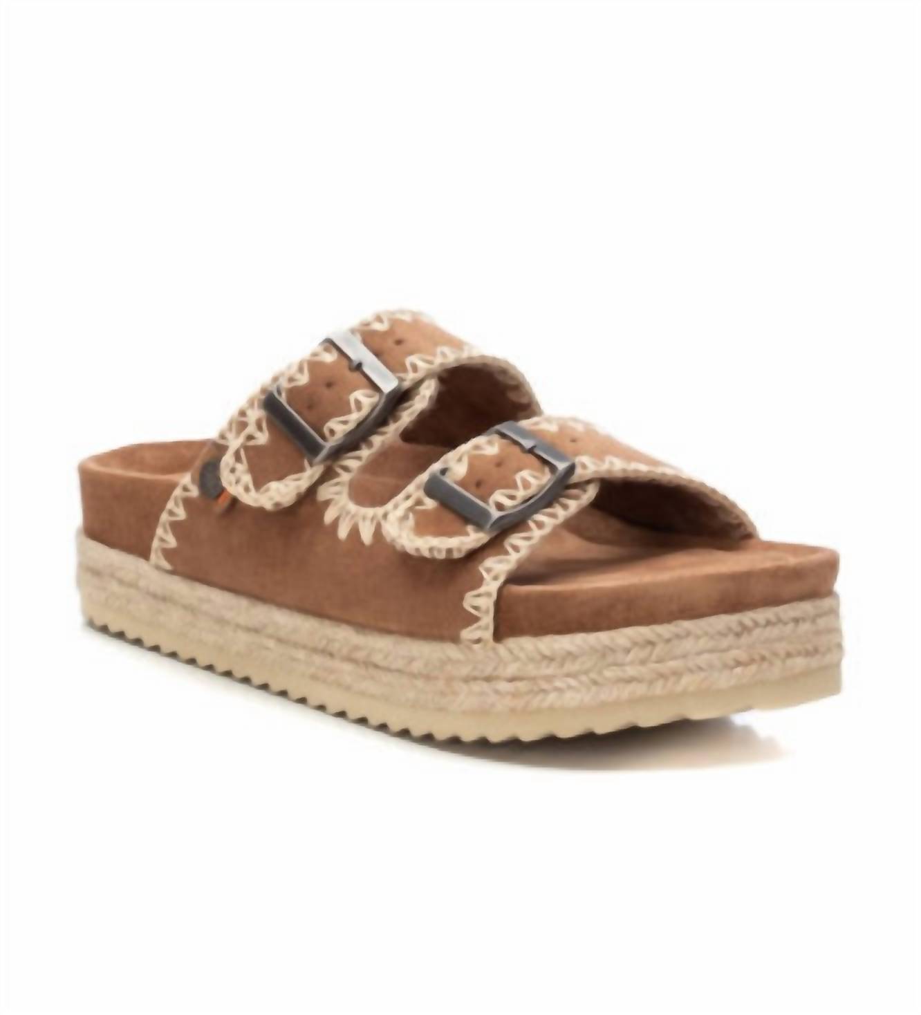 Women's sandals by Refresh. Made in soft suede. Model double shovel with adjustable buckles. Bios sole lined with the same material as the upper. Braided jute lined sole and non-slip sole. This model has been certified vegan by the worldwide organisation PETA (Animal Rights Organisation).