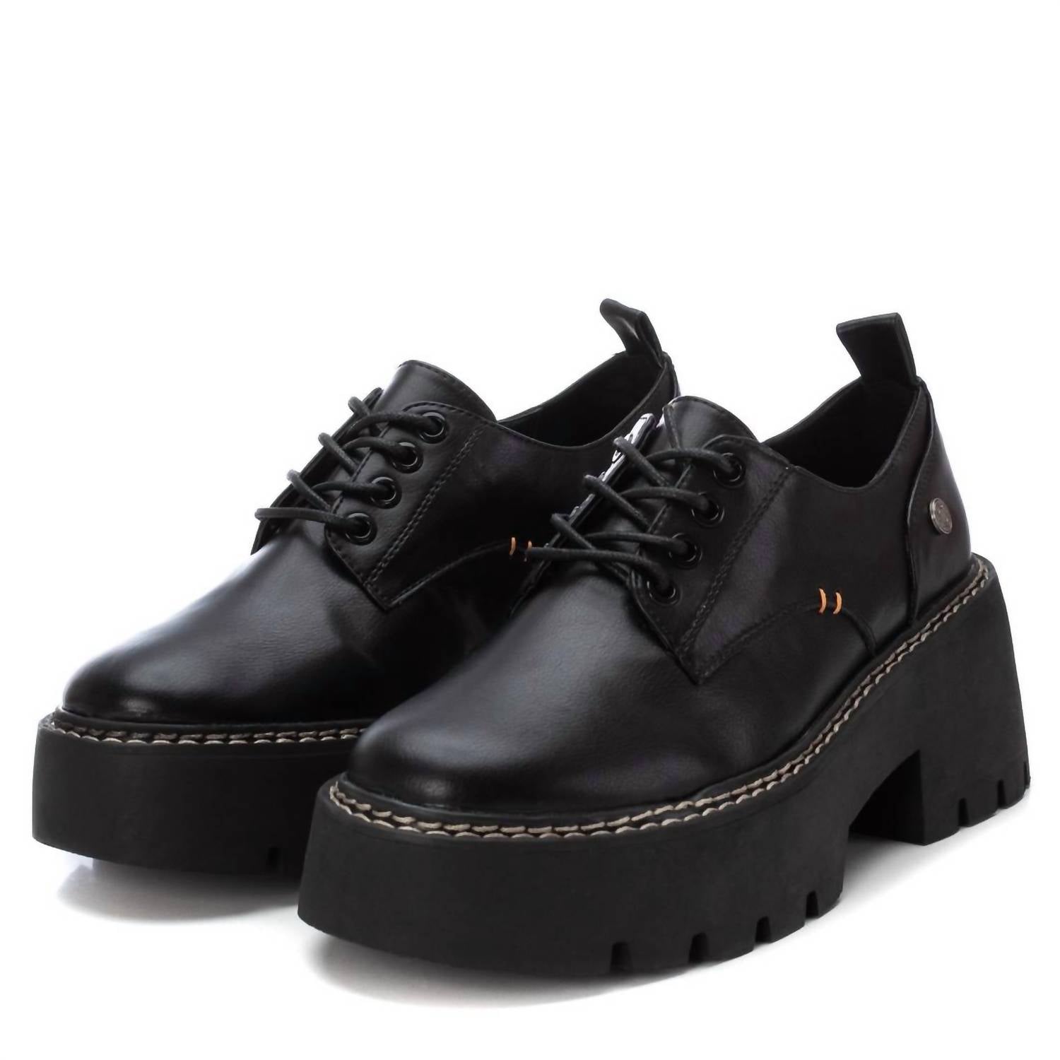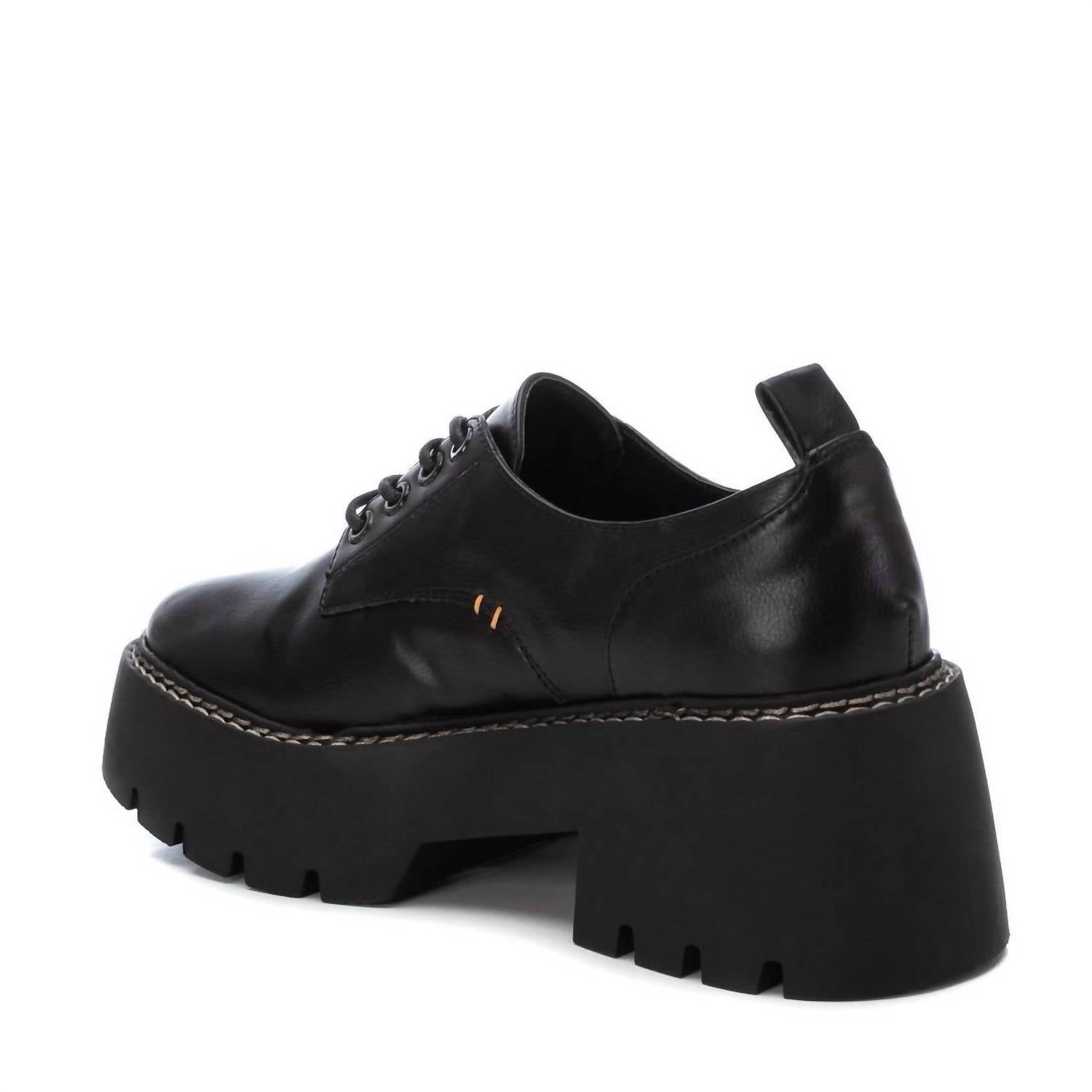 This Women’s Heeled Lace-Up Loafer features a 1.96-inch chunky heel, lace-up closure, and a round toe for a secure fit. Made from breathable faux leather, it offers all-day comfort with a padded insole and non-slip rubber sole.