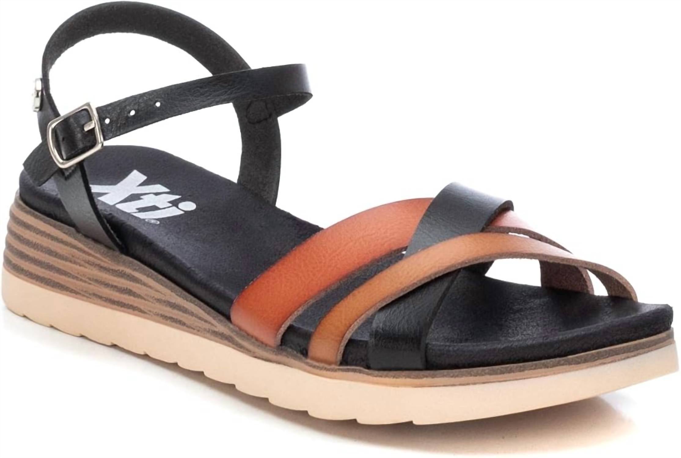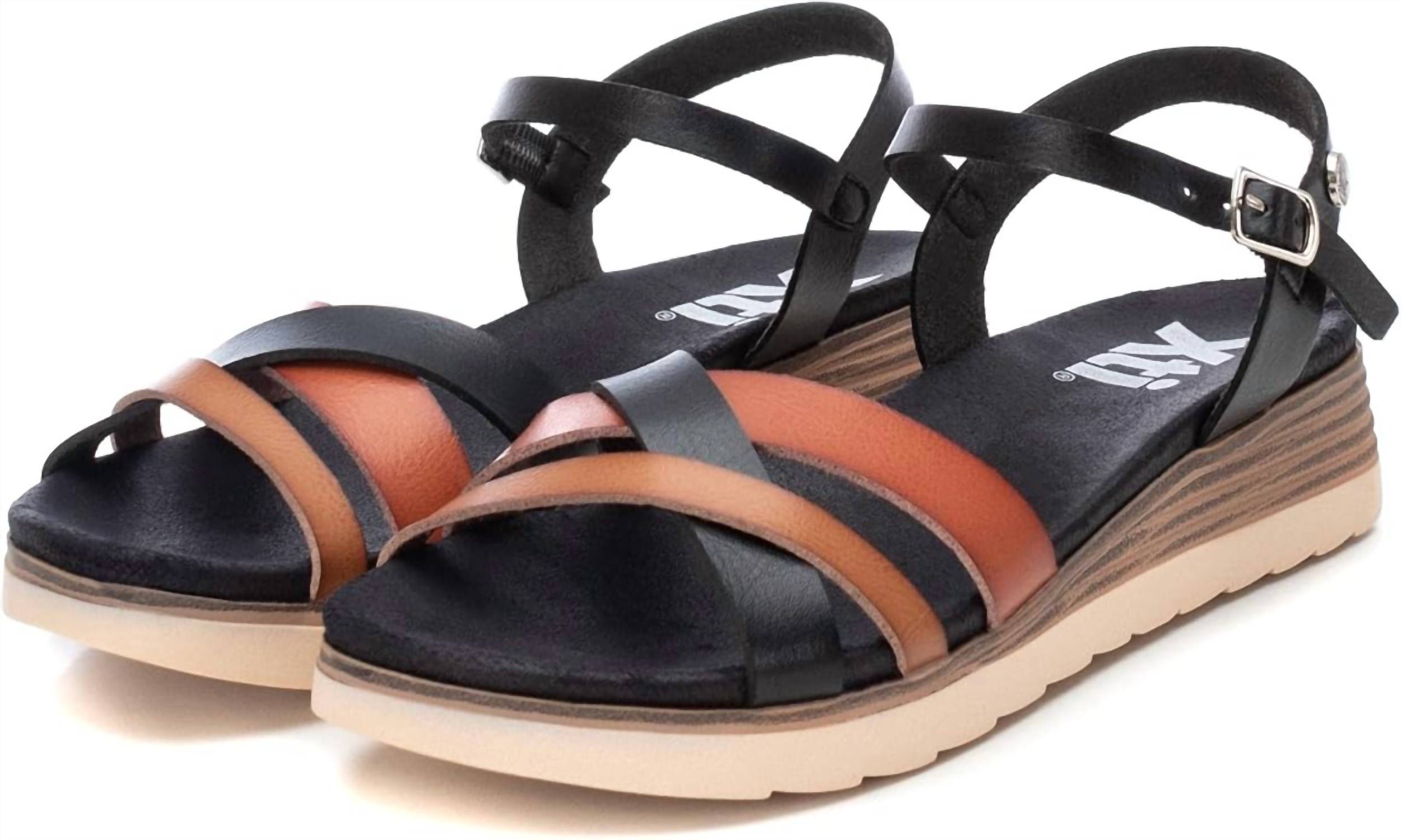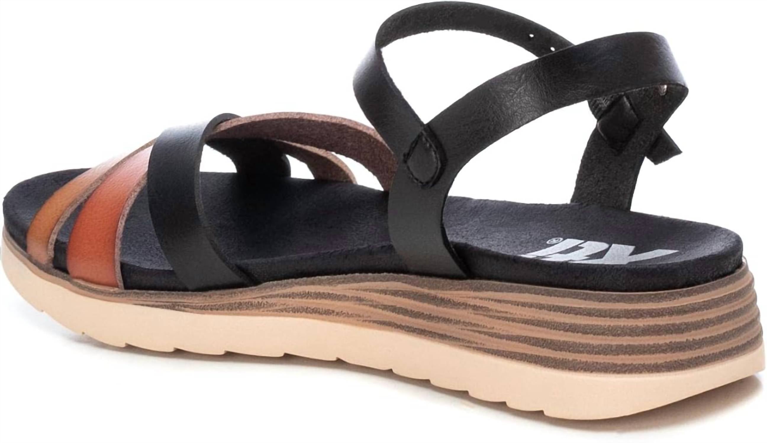 This low wedge sandal features high-quality faux leather and a 1.57-inch heel for comfort and style. The metallic buckle strap ensures a secure fit, while the padded insole and non-slip rubber sole provide all-day comfort and stability. Perfect for any occasion.