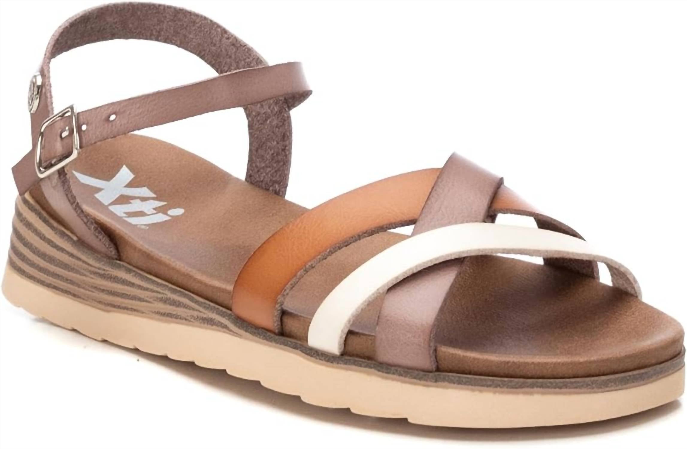 Flowy dresses, cropped pants, and even jumpsuits... this sandal works with them all!These 1.57 in wedge sandals are the perfect blend of casual and comfort. Trend design that goes well with every outfit. Strap with metallic buckle closure. Durable non-slip rubber sole.