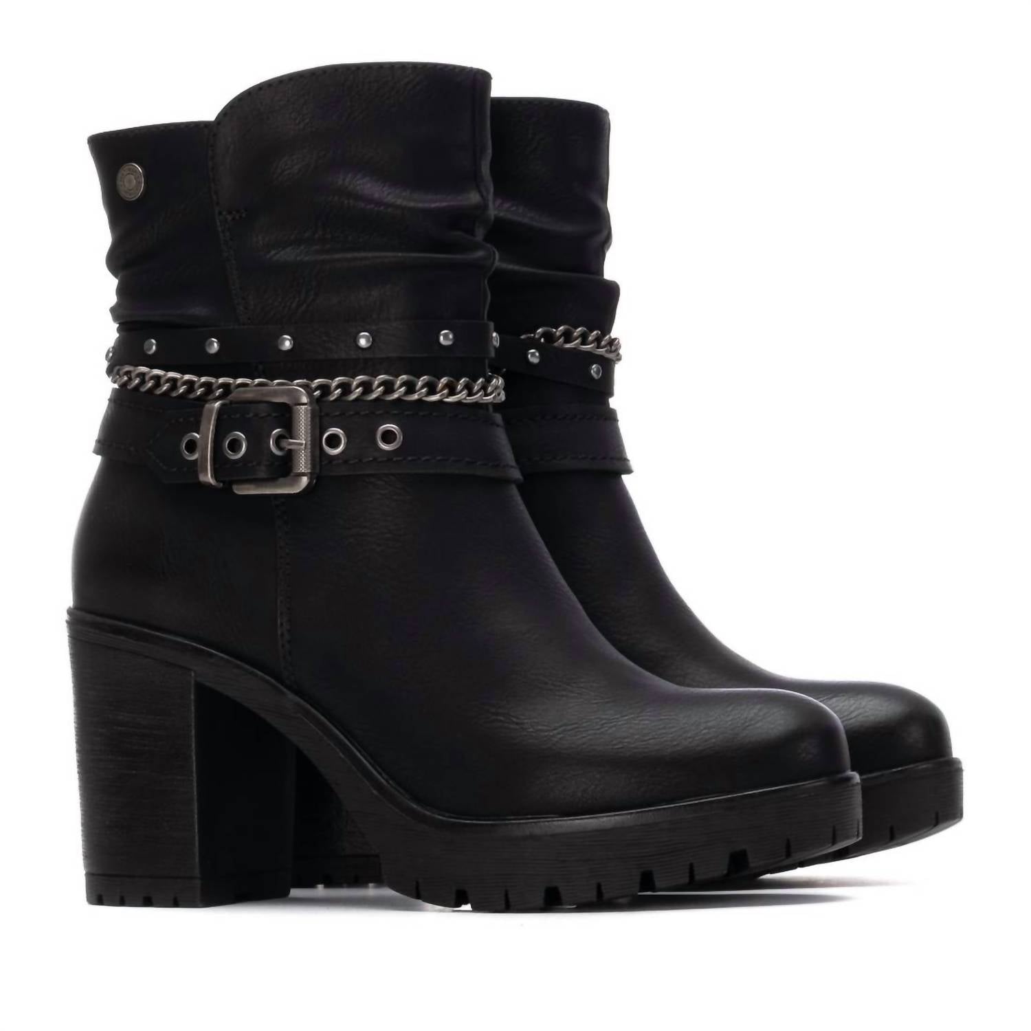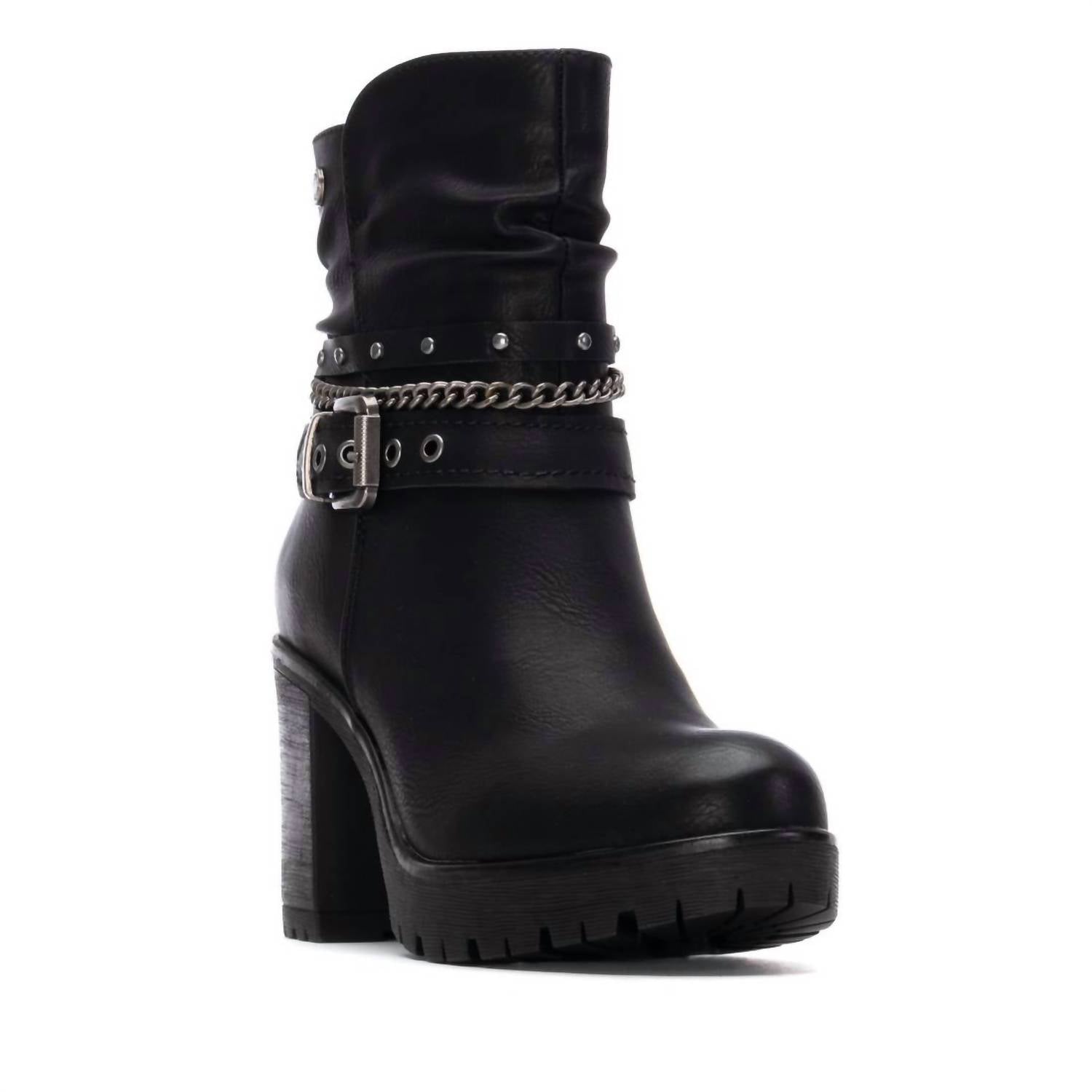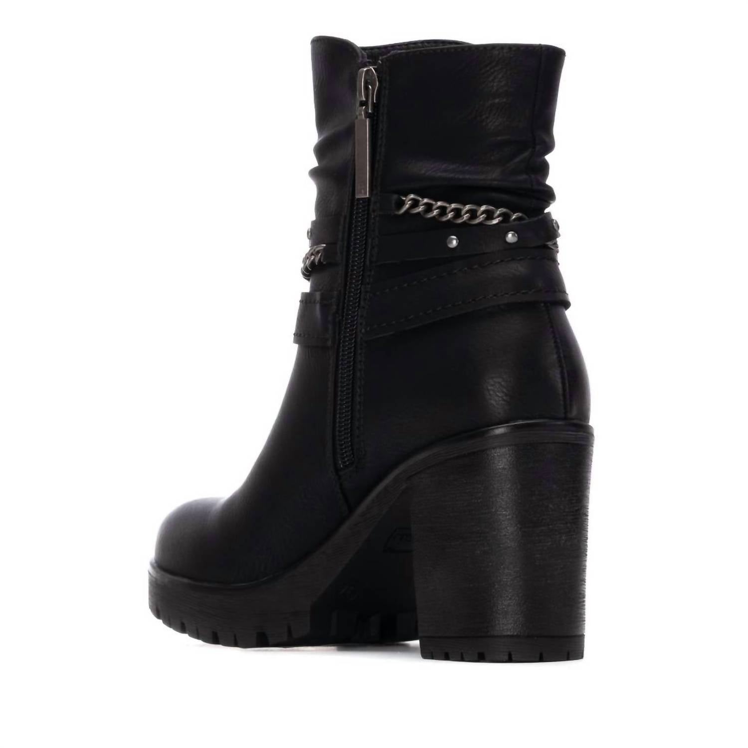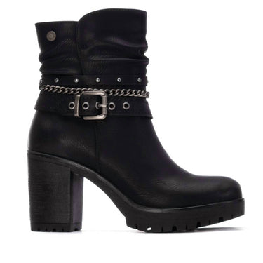 Discover sophistication and modern flair with the Women's Refresh Ankle Booties from Xti, perfect for your next evening event. These stylish black ankle boots showcase a faux leather exterior, accented with decorative and ankle straps, and feature a convenient inner zip fastening. Carefully constructed with a high block heel measuring 9 cm, and a non-slip rubber sole, these booties promise both comfort and confidence. Certified vegan by PETA, these boots reflect a commitment to animal welfare with their synthetic composition.