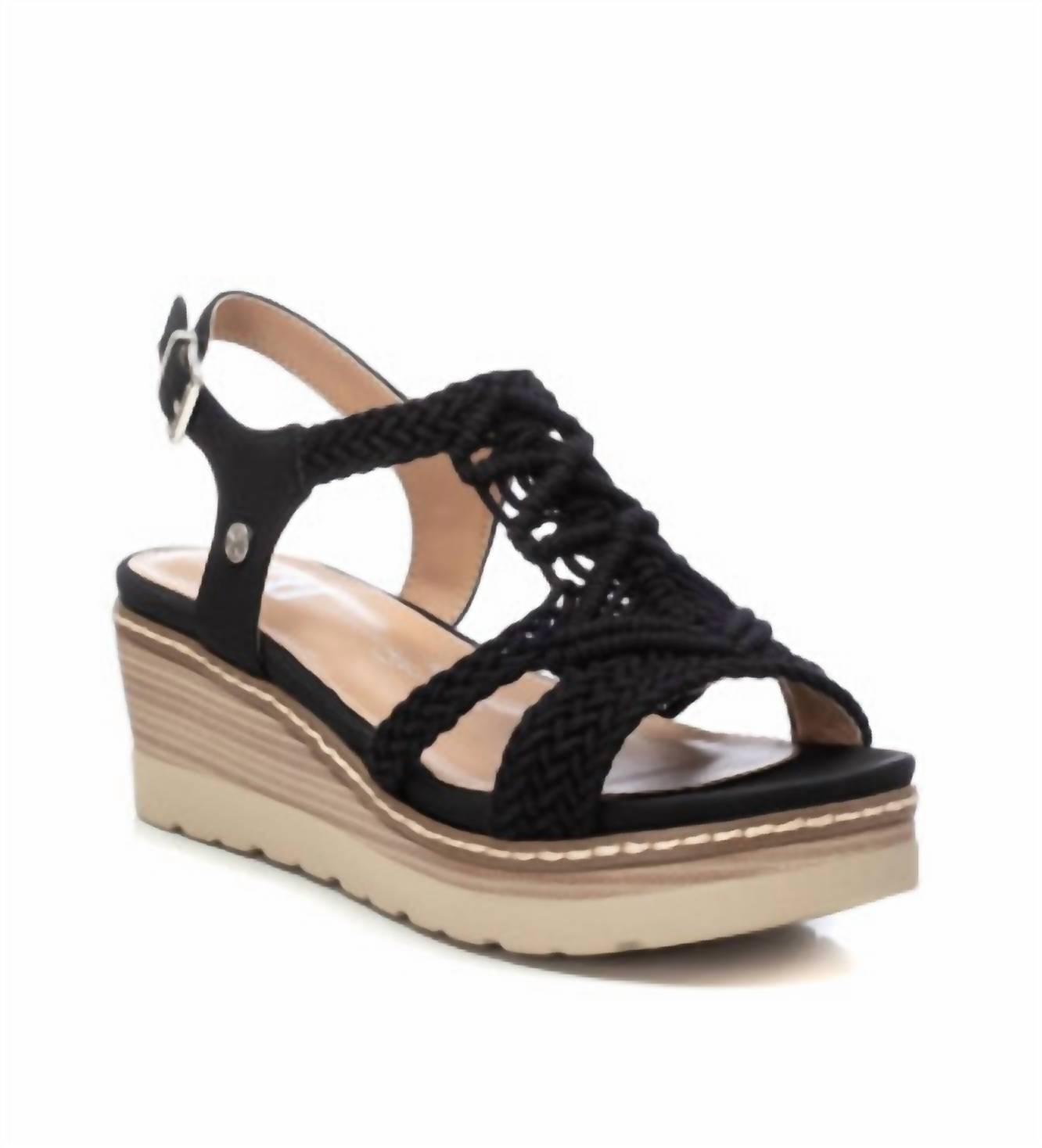 This Wedge Sandal features an intricate macramé knots design with a metallic buckle closure for a secure fit. The 6 cm, 2.36 inches wedge heel provides a subtle lift without compromising stability. Includes a non-slip rubber sole and is PETA-certified vegan, perfect for eco-conscious summer wear.​