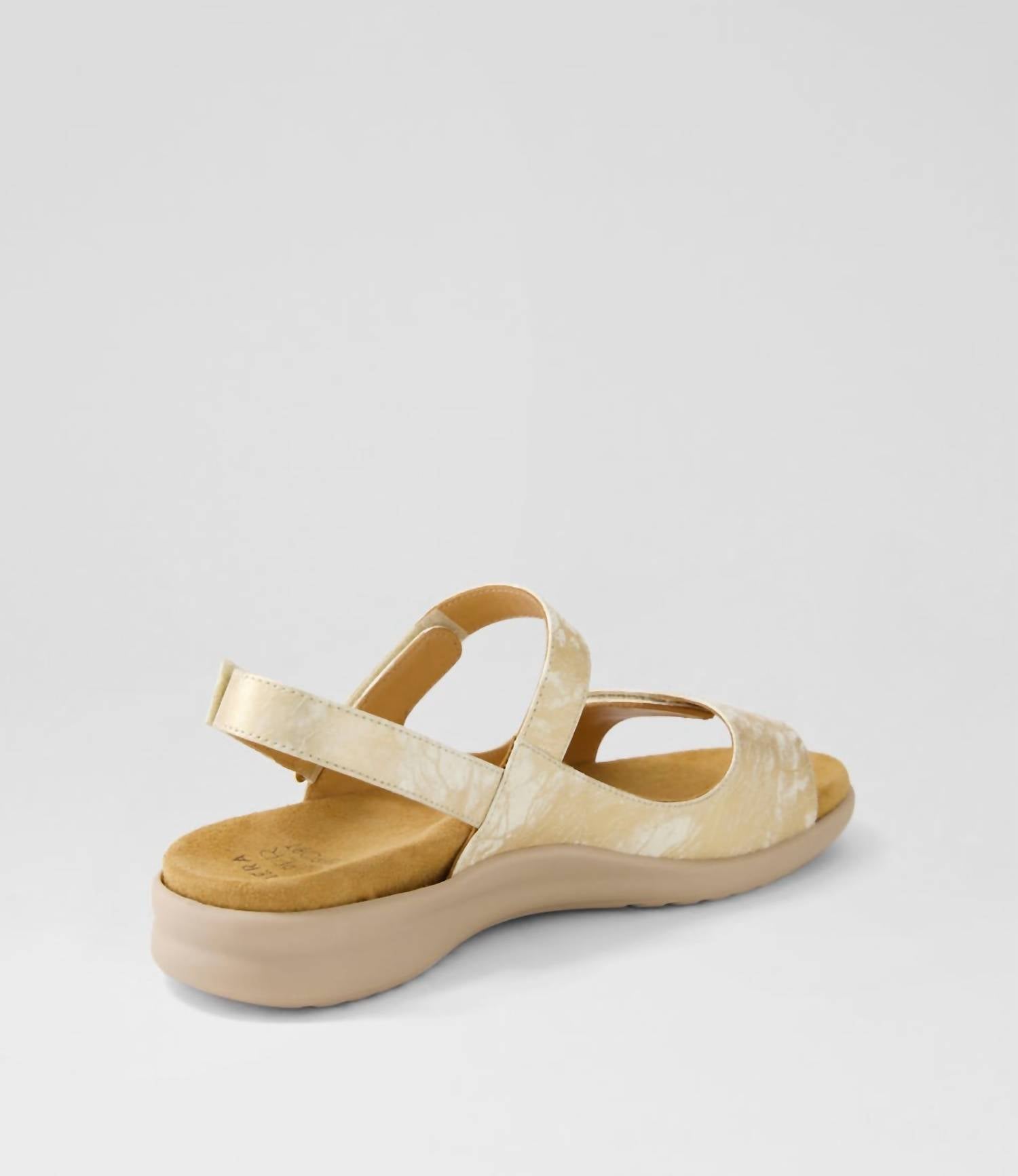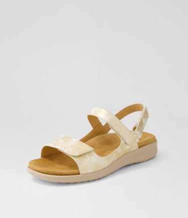 Embrace summer in style with the Women's Benji Smudge Sandals by Ziera, featuring an open toe design crafted from premium leather for a vacation-ready look. With a flat 1-inch heel, these sandals boast a Velcro fastening for a secure fit and a flexible, slip-resistant sport sole. Built for comfort, they include a Super Support Footbed with arch support, metatarsal cushioning, and a contoured heel cup, perfect for those seeking stability and orthotic-friendliness. Ideal for the summer season and inspired by 90s fashion, these sandals are an essential addition to your wardrobe.