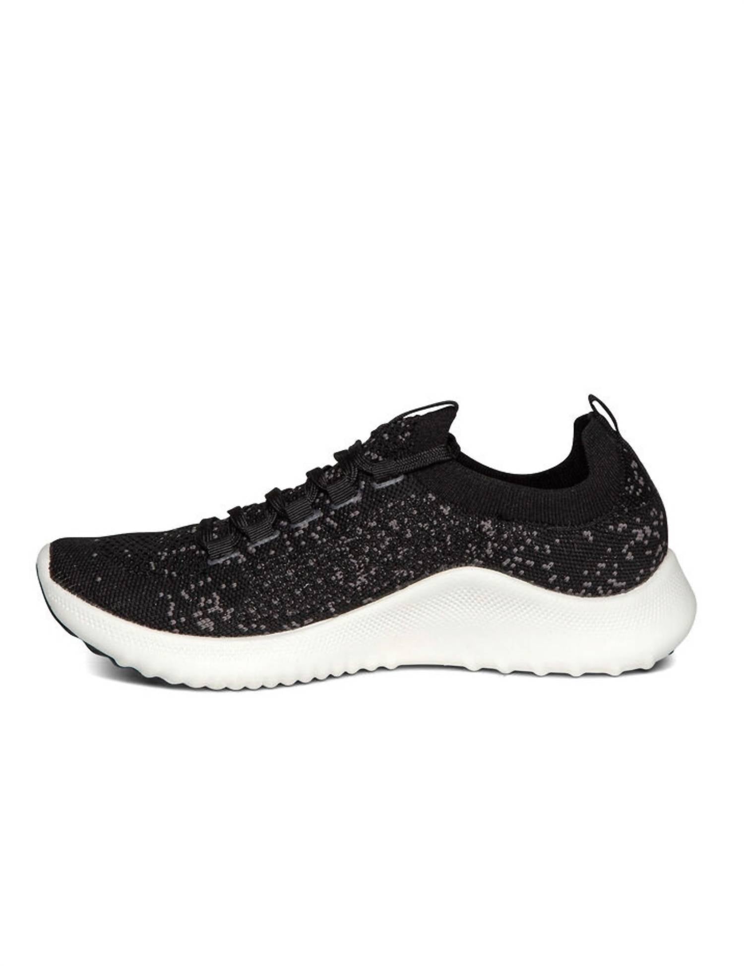 Stretchy knit uppers. Traditional lace-up closure. Aetrex Orthotic System footbed. Heel height: 1". Weight: 1.5 lbs.