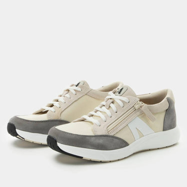 Step into effortless style with the Alegria Eazeer Sneakers in the Parchment colorway, designed for the modern woman. These sneakers feature an innovative Dream Fit® and suede upper, complemented by a side zipper and adjustable laces for the perfect fit and easy on-and-off convenience. The durable slip-resistant polyurethane outsole supports a 1.5" heel, with a removable footbed offering maximum comfort. The stain-resistant upper ensures a sleek appearance, making these sneakers a versatile addition to your wardrobe.
