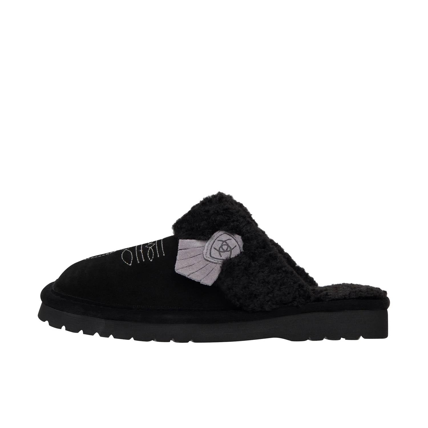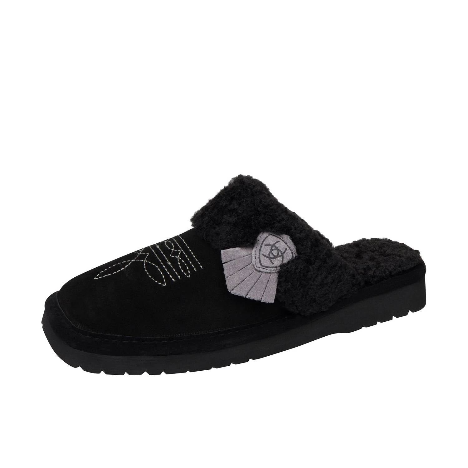 Slip into cozy luxury with the Women's Jackie Square Toe Slipper by ARIAT, crafted from genuine suede for a touch of elegance. These slippers feature a plush acrylic collar and lining, providing superior warmth and comfort. Designed with a slip-on construction and superior foam cushioning, they ensure all-day cozy wear. The indoor/outdoor EVA sole adds practicality, making them perfect whether you're lounging at home or stepping outside.