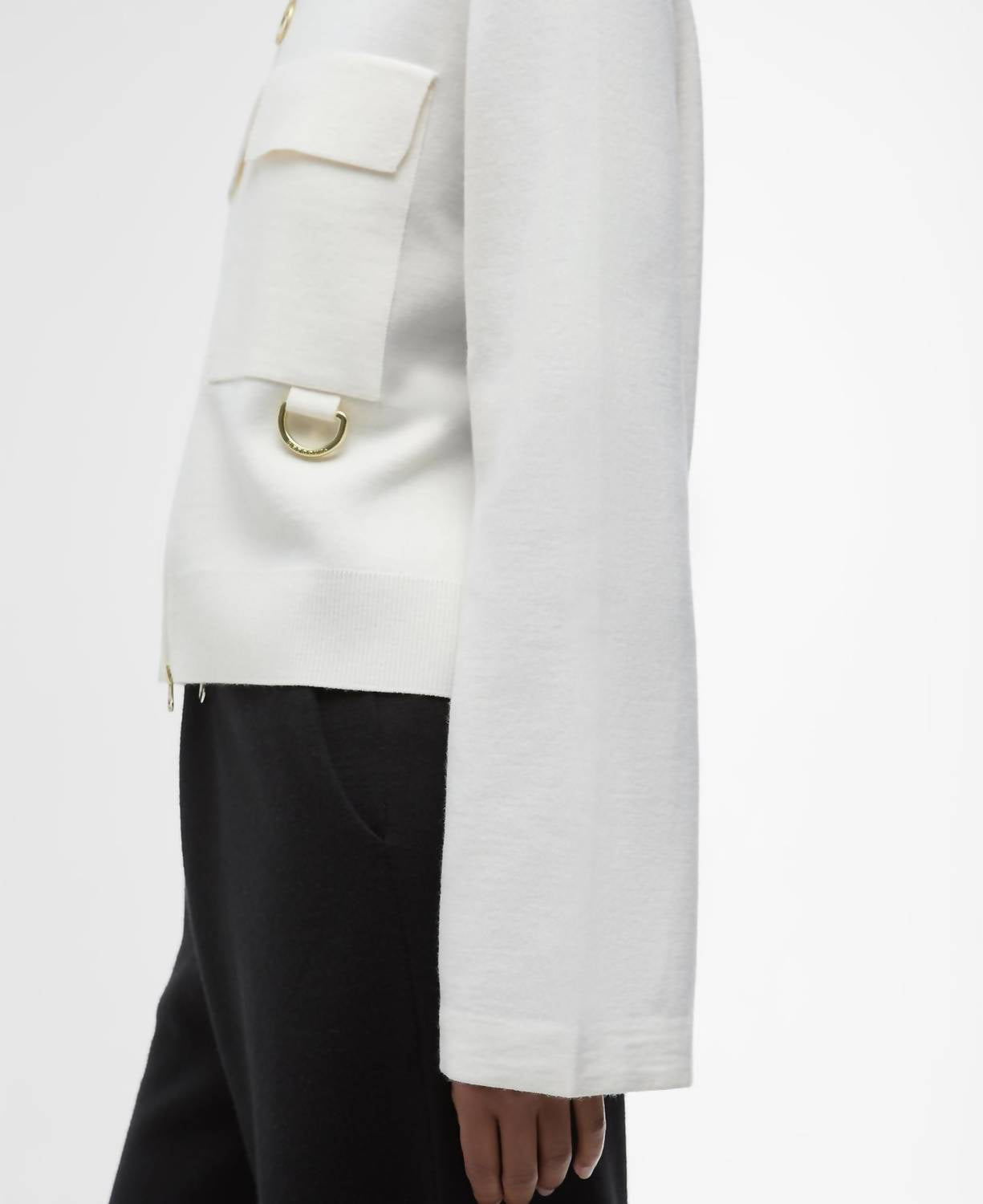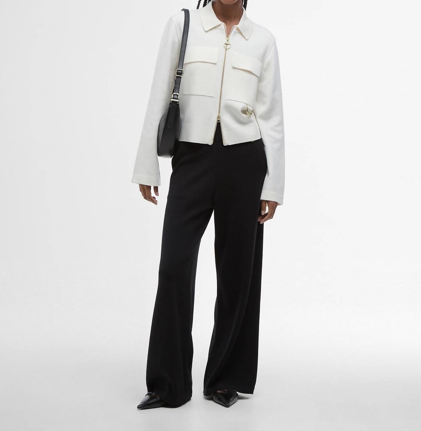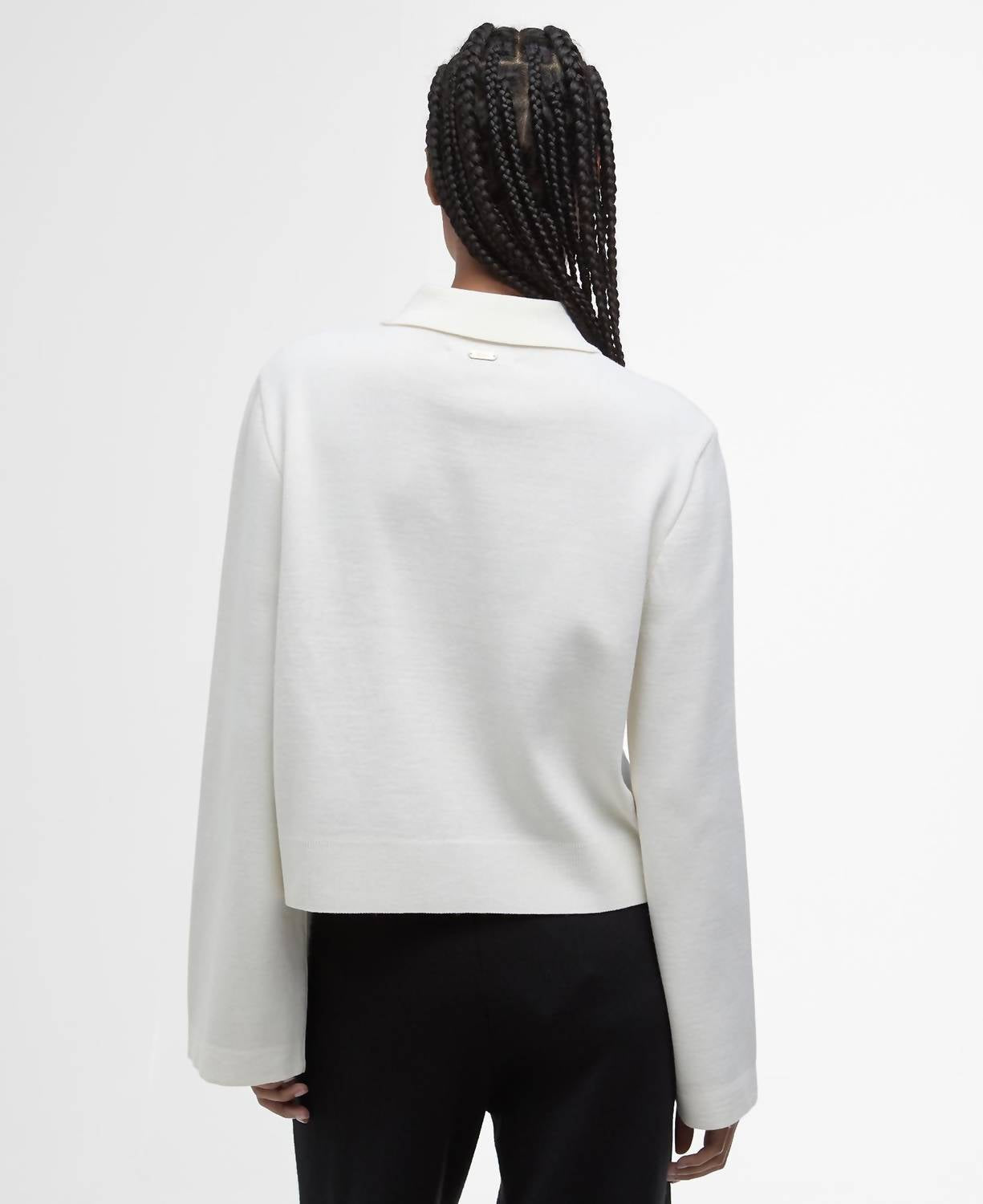 Discover the Barbour Alma Knitted Zip Through Cardigan, a chic addition to any wardrobe, now available in Ecru/Oatmeal. With its long sleeves and premium 35% wool, 35% acrylic, and 30% cotton composition, this cardigan boasts a solid pattern and collar neckline for a timeless appeal. Its cropped boxy silhouette coupled with Barbour-branded D-ring detailing and functional patch pockets truly elevate its style. Closure: Zip closure. Care: Cold hand wash.