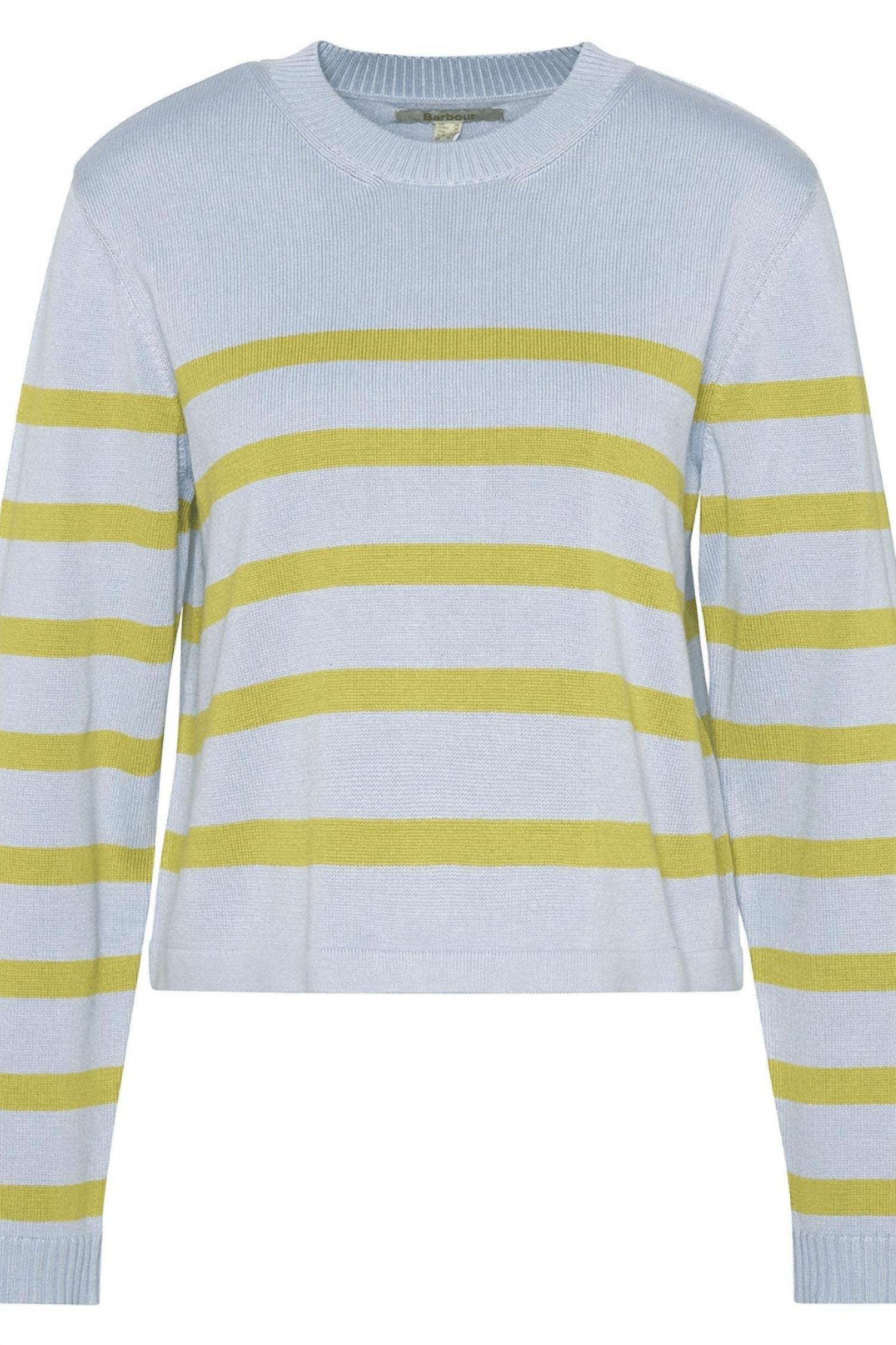 Introducing the Barbour Bronya Striped Sweater in a stylish Blue Multi, perfect for adding a timeless yet sophisticated touch to your wardrobe. This women's long sleeve sweater features a classic crewneck and a chic, cropped silhouette with a relaxed fit. Crafted from a comfortable cotton blend, composed of 50% Cotton and 50% Modal, and designed without pockets for a sleek profile. Originating from Barbour's preppy trend collection for Fall occasions, this pull-on sweater is easy to care for with machine wash and tumble dry instructions.