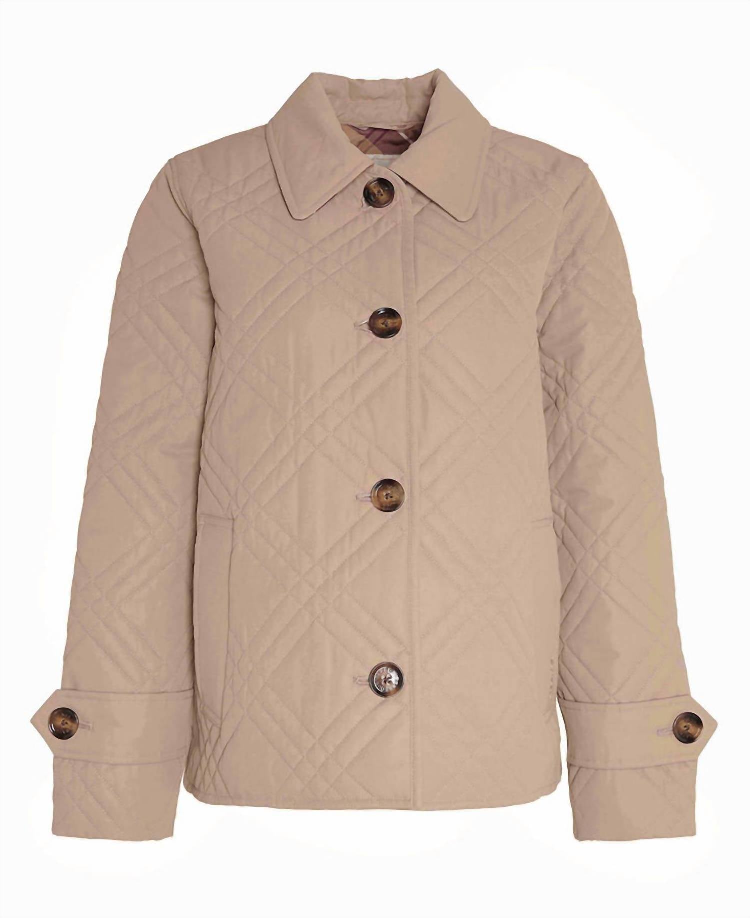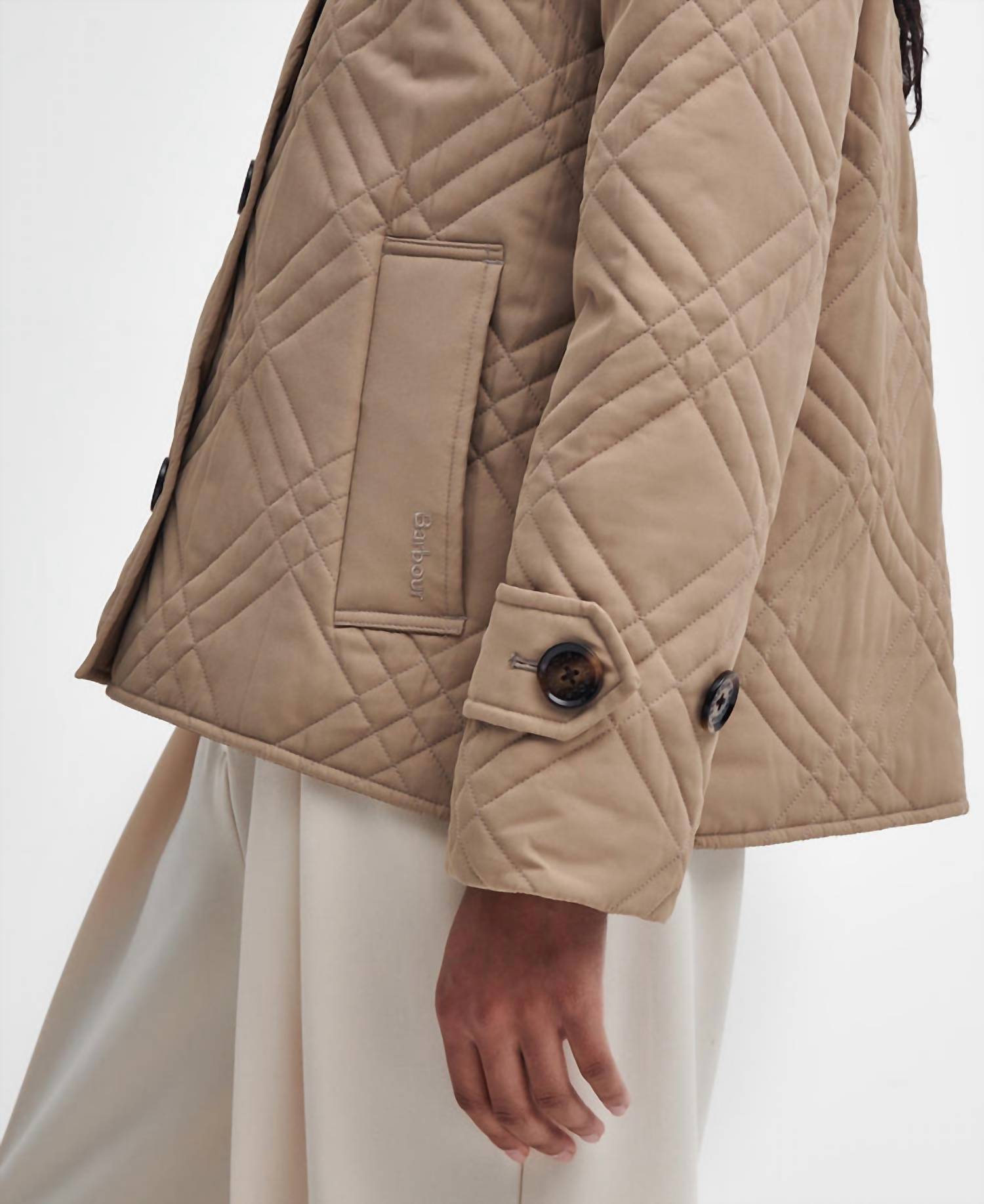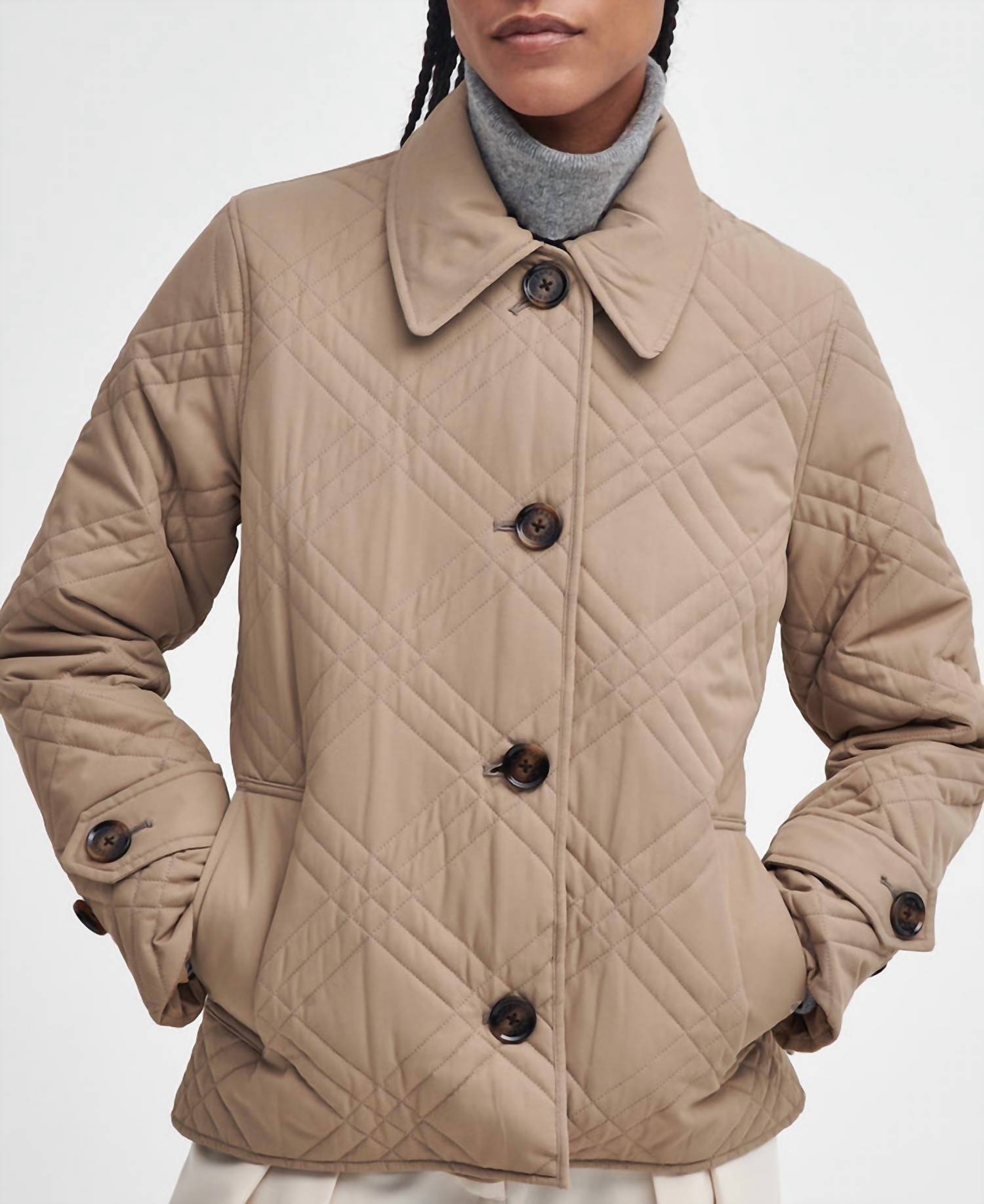 Experience the blend of functionality and style with the Walton Quilted Jacket by Barbour, presented in a chic Honey/Muted Cabernet Tartan. This elegant casual jacket features long sleeves with button-tab cuffs, and a spread collar adding a classic touch. Crafted from durable polyester, its quilted design enhances warmth, while button closures and two front welt pockets ensure practicality. Perfect for women who value both comfort and sophistication, it is conveniently machine washable.