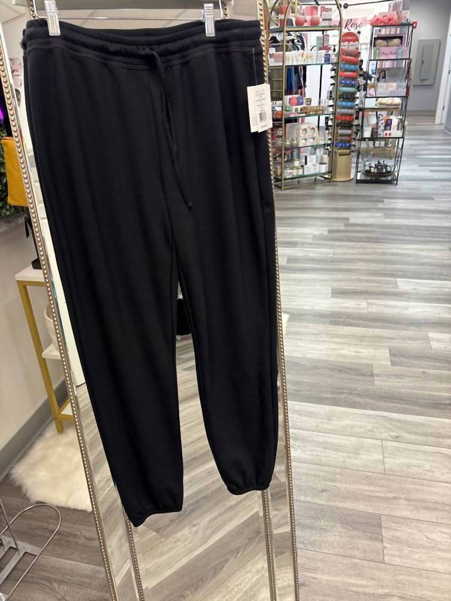 Off-duty jogger featuring an elasticated waistband with a drawcord and elasticated cuffs, crafted from locally sourced fabric. The composition includes 65% Modal, 27% Polyester, and 8% Spandex. This slim-fit design has a 27" inseam and a midi length. Easy to care for, it's machine washable and proudly made in the USA. Style#cf1235