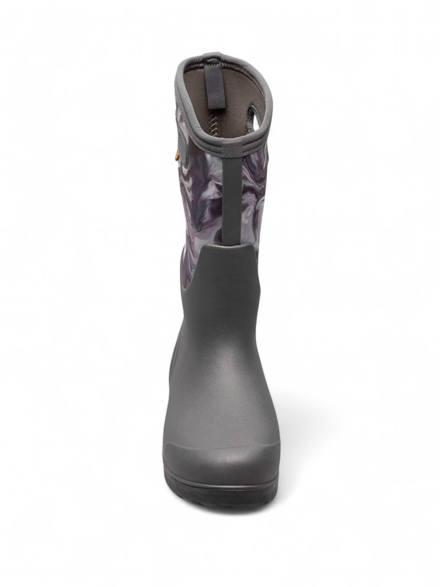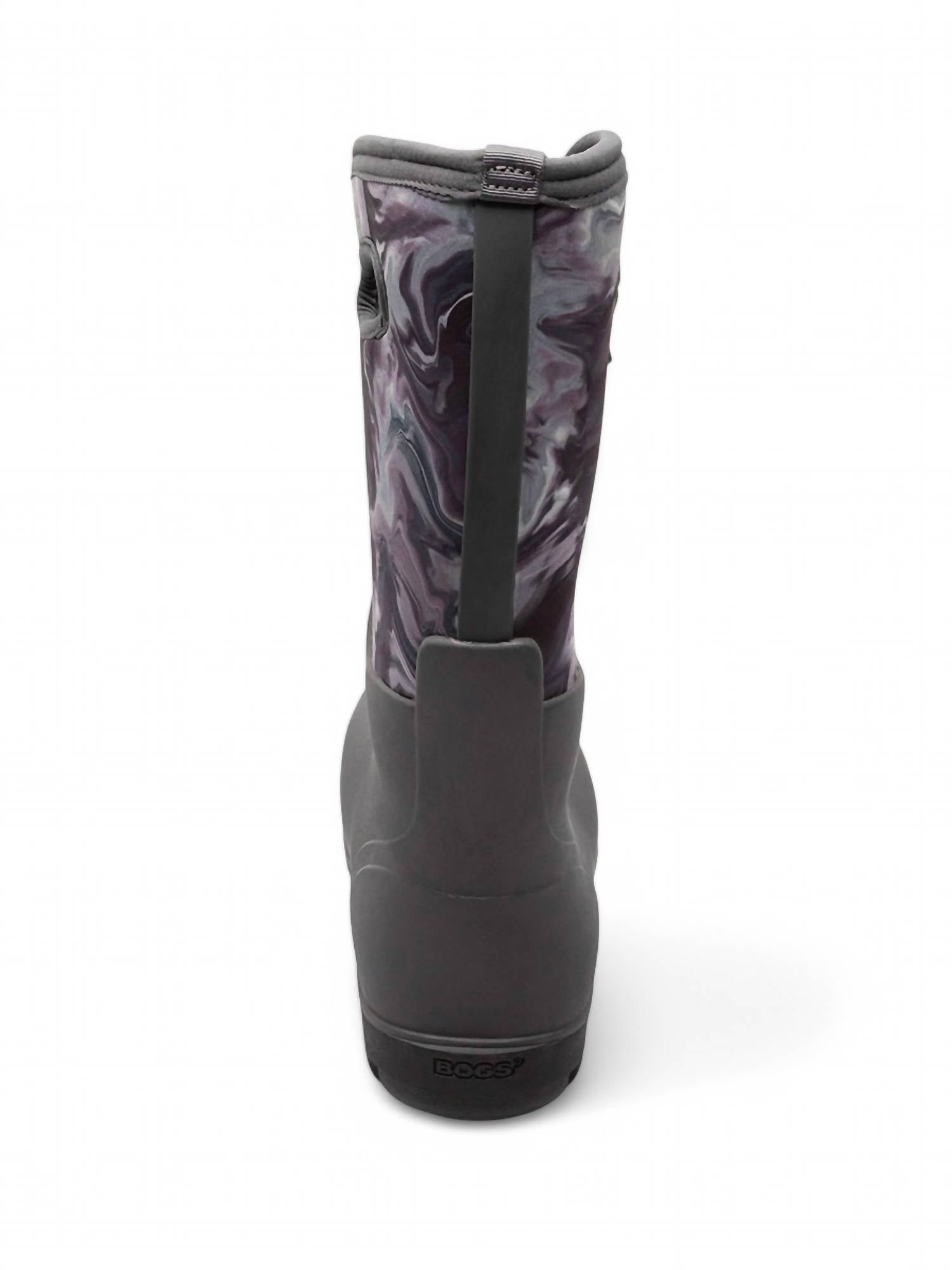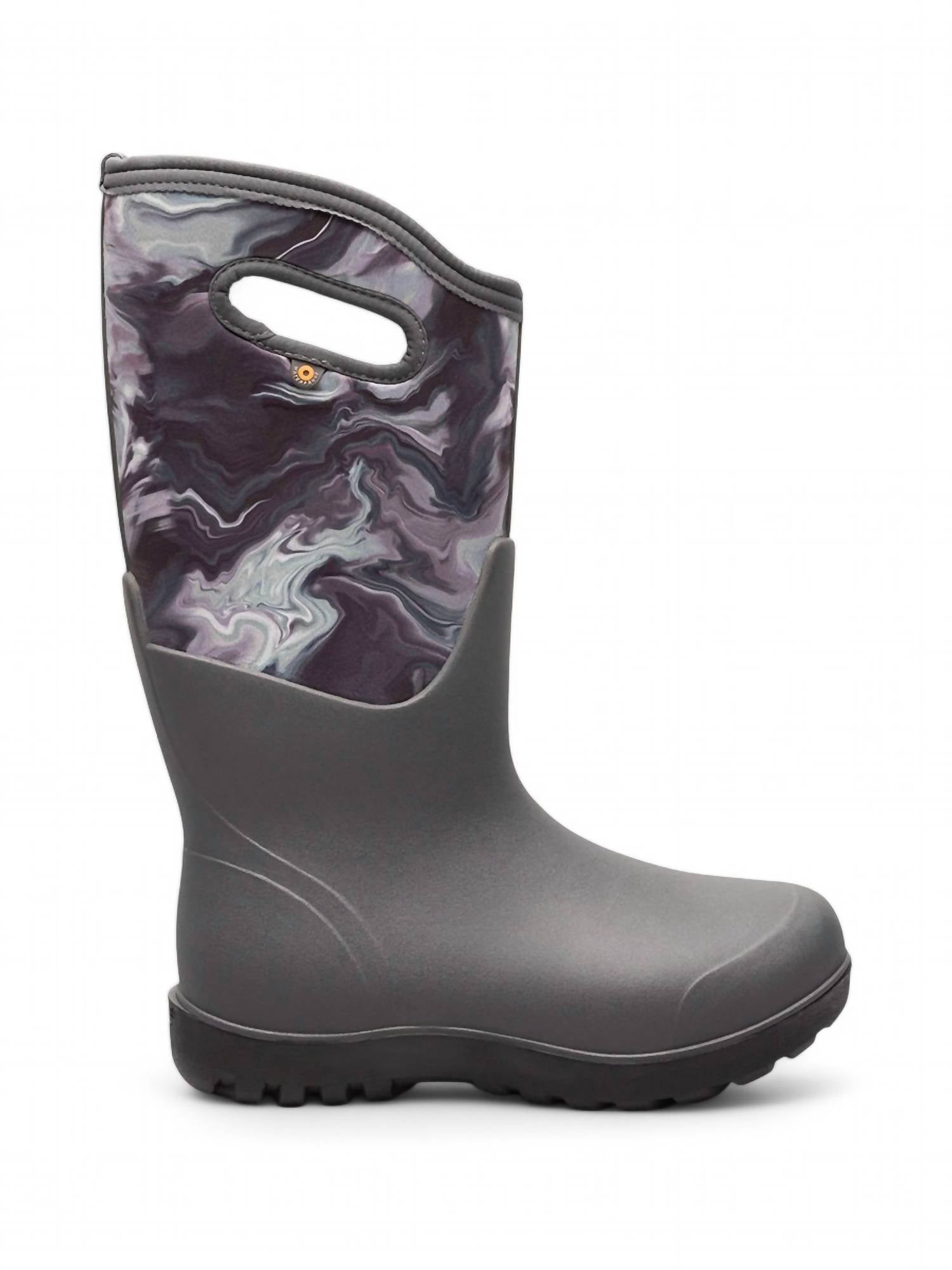 Step into ultimate comfort and protection with the Women's Neoclassic Boot by BOGS. This grey oil boot is 100% waterproof, featuring 5mm Neo-Tech waterproof insulation to keep your feet warm in temperatures as low as -58°F/-50°C. The boot's seamless construction is 30% lighter and more durable, complemented by a BioGrip slip-resistant outsole for added safety. With a BLOOM eco-friendly EVA footbed, rebound cushioning for all-day comfort, and a Flex Width insole system, these boots guarantee a perfect fit while helping preserve the environment.