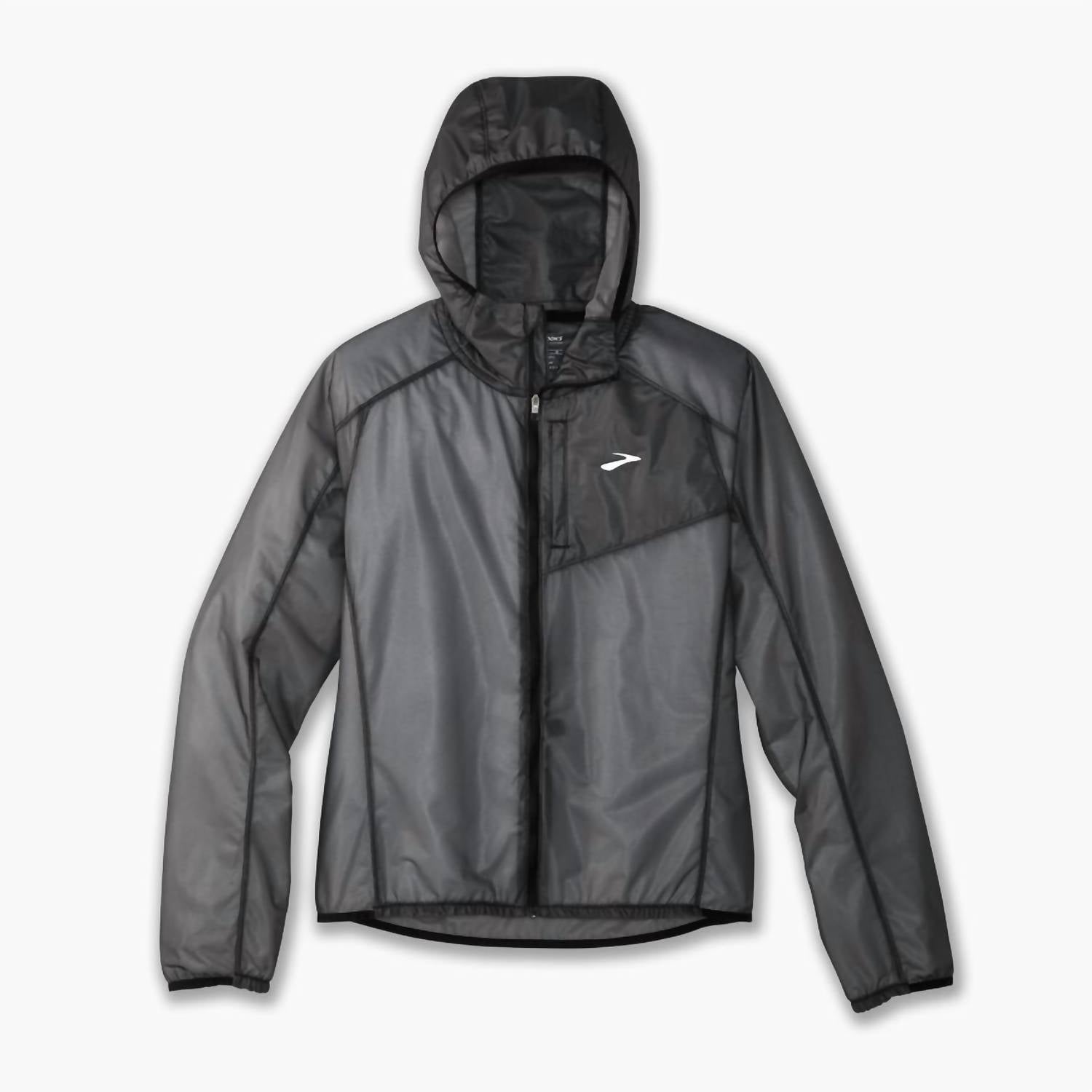 A casual yet cool jacket that every closset needs. Meet the All Altitude Jacket by BROOKS, a must-have for women who enjoy fitness with style and function. Crafted from knit material, this solid black jacket features long sleeves and a practical hooded neckline for streamlined weather protection. Designed for versatile occasions, it boasts a zip closure and convenient pockets, making it ideal for running or packing on the go. Embrace the streetwear trend this spring with a casual jacket that combines lightweight protection and packable convenience.