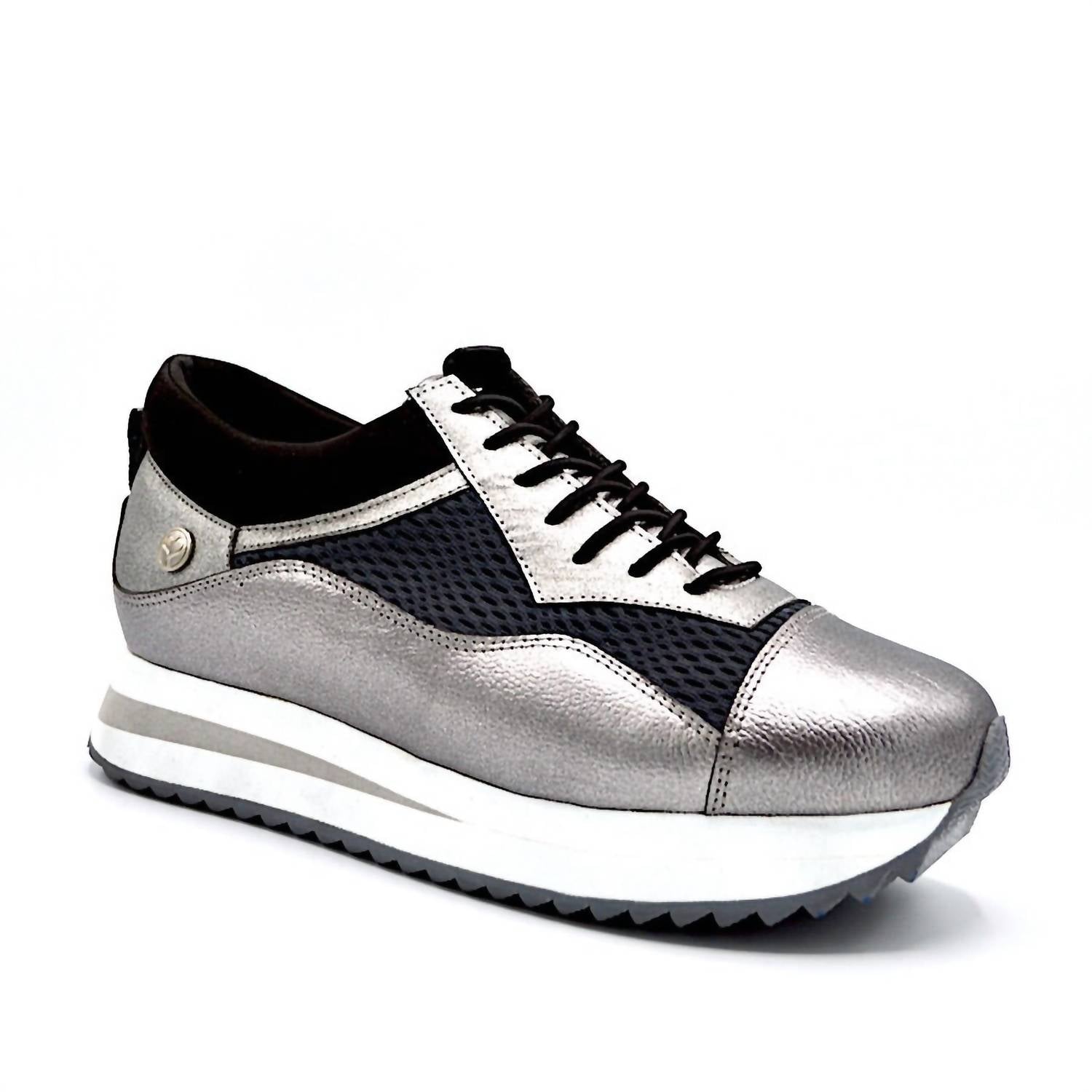 When fashion and function come together seamlessly. Introducing the Women's Verse Elevated Trainer Shoes by Chelsea Jones, the perfect blend of style and comfort for your athleisure wardrobe. These sneakers feature a leather and mesh upper with stretch elastic laces for a snug fit and a 1" EVA layered sole that provides a slight lift. Designed with a fabric-lined insole with arch support and a Lycra padded section around the achilles, they ensure a comfortable experience. Made in Colombia, these trainers are completed with a rubber traction sole to enhance stability, ideal for your fitness and workout occasions.