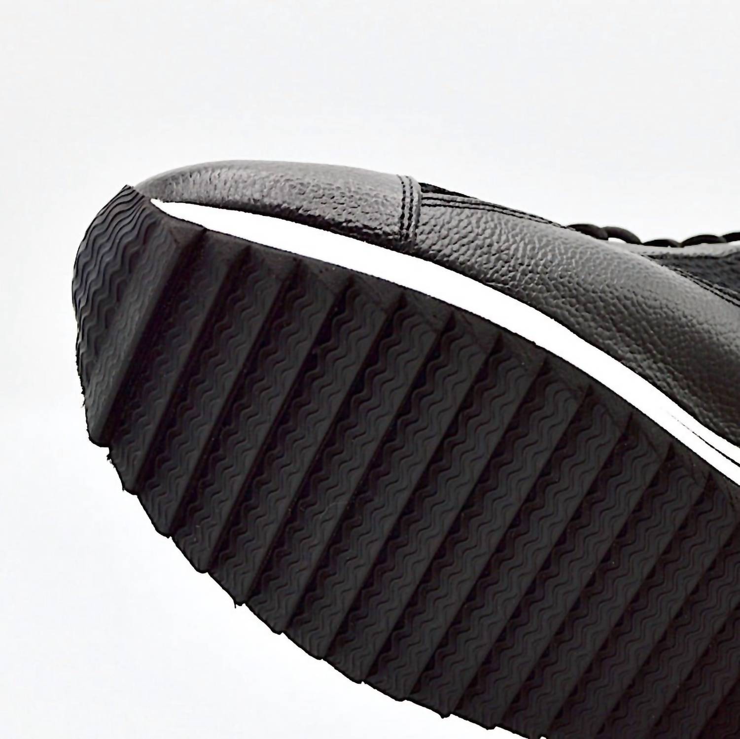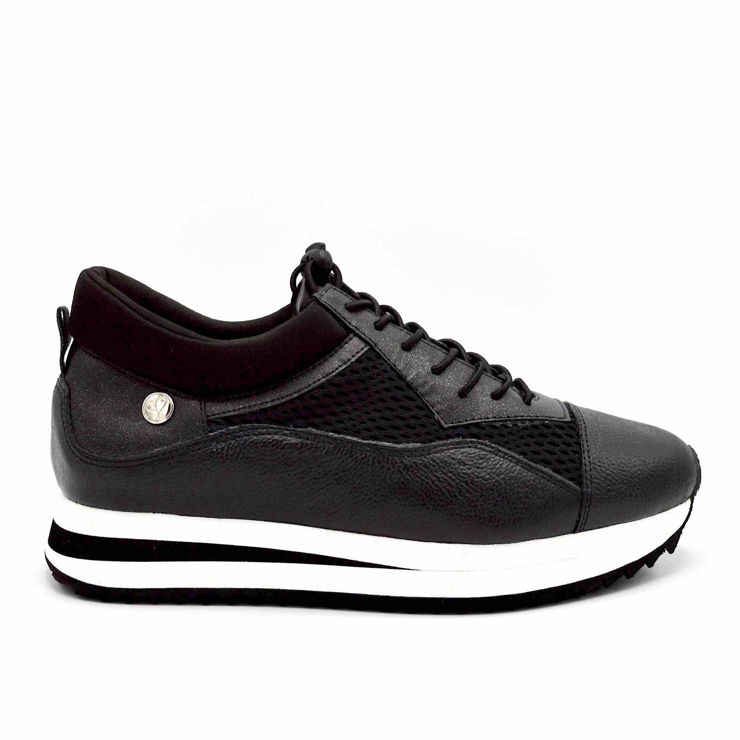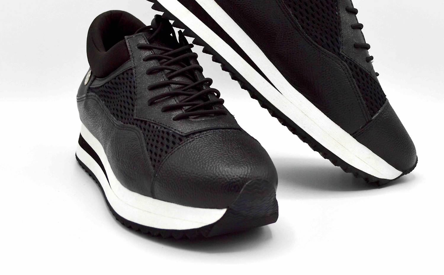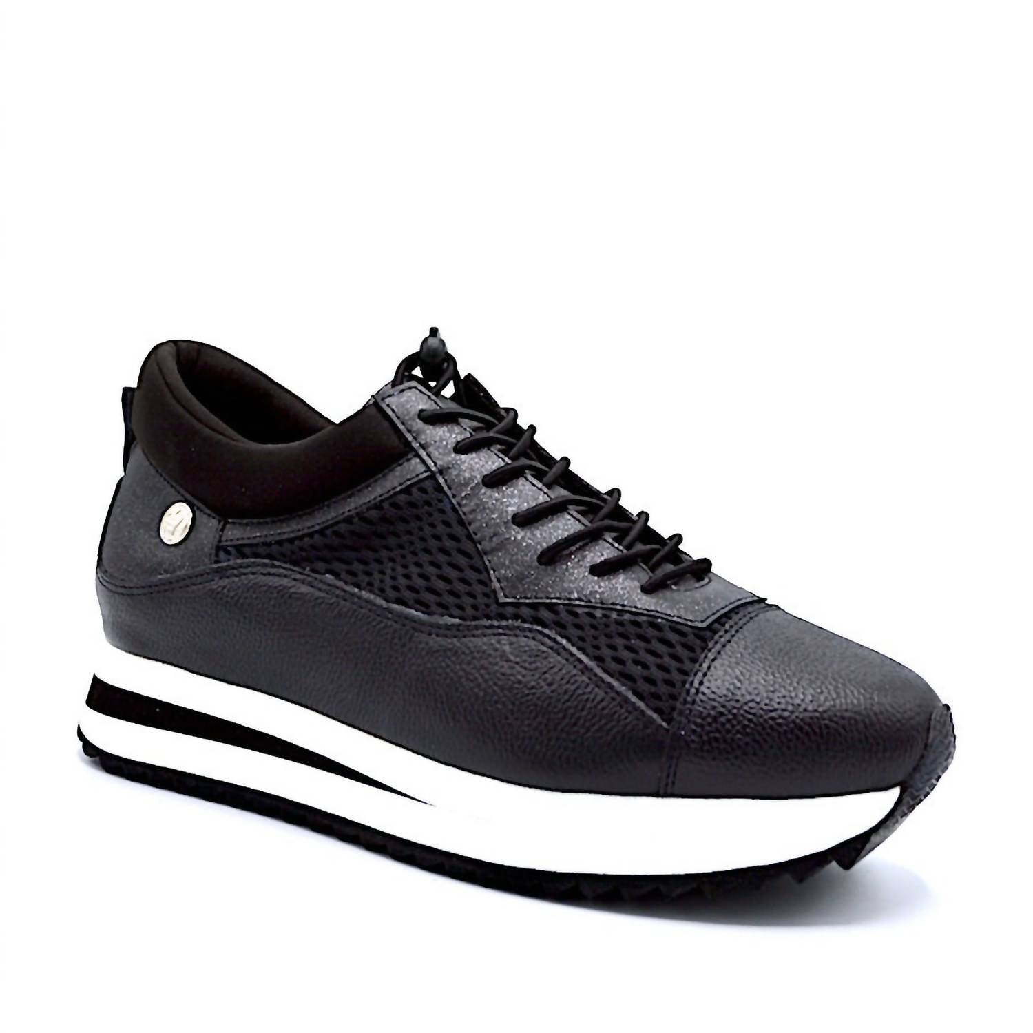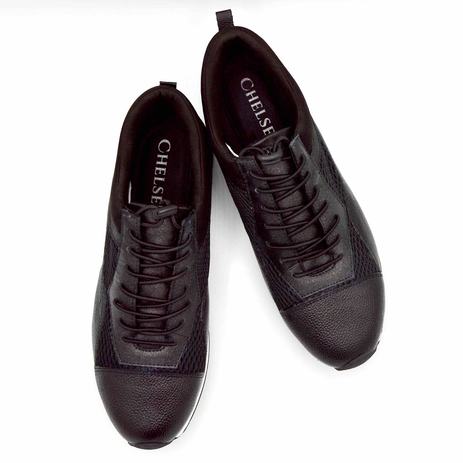 Elevate your casual style with the Women's Verse Elevated Trainer Shoes by Chelsea Jones, perfect for fitness or workout sessions. The Black Leather/Mesh sneakers feature a comfortable 1" EVA layered sole and a round toe design. They boast a leather and mesh upper, fabric-lined insole with arch support, and a rubber traction sole for durability. Equipped with stretch elastic laces with a cinch and a Lycra padded section around the Achilles, these trainers are made in Colombia and crafted for optimal athleisure comfort.