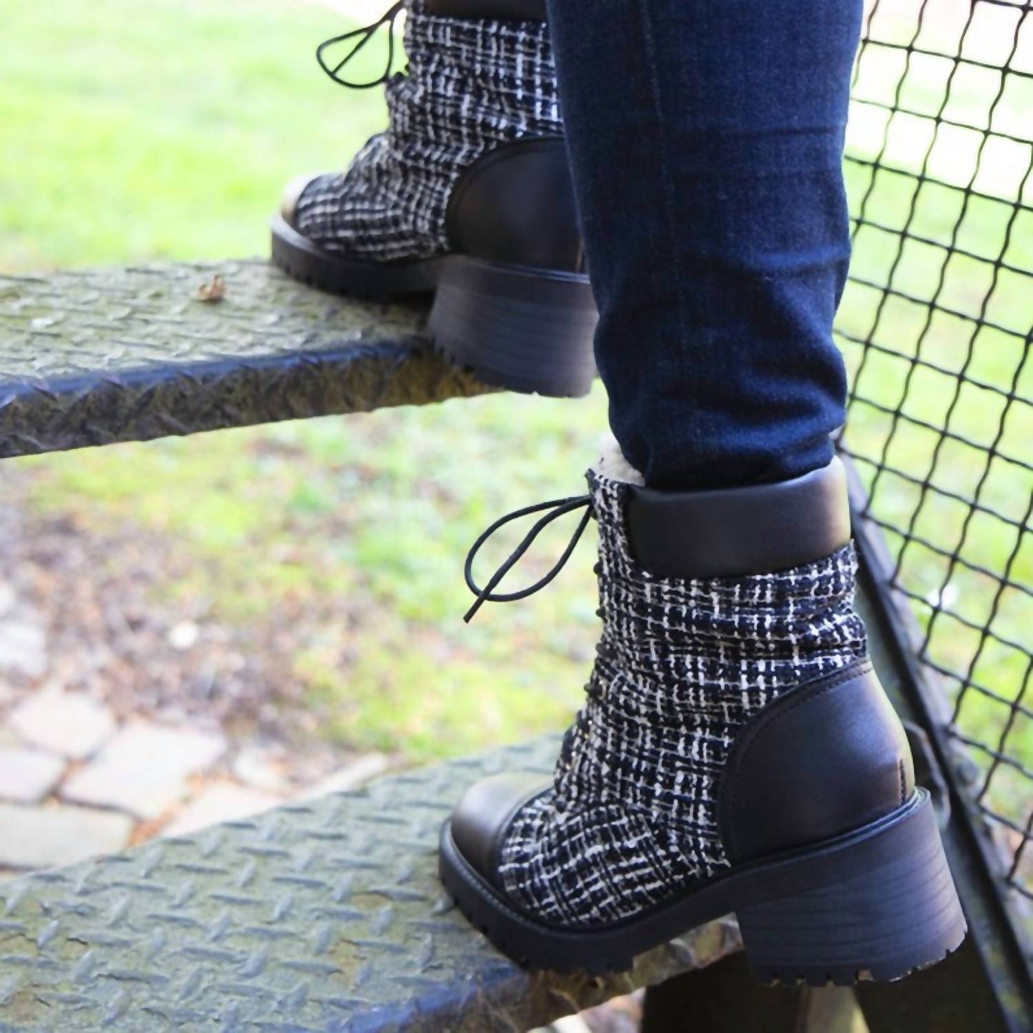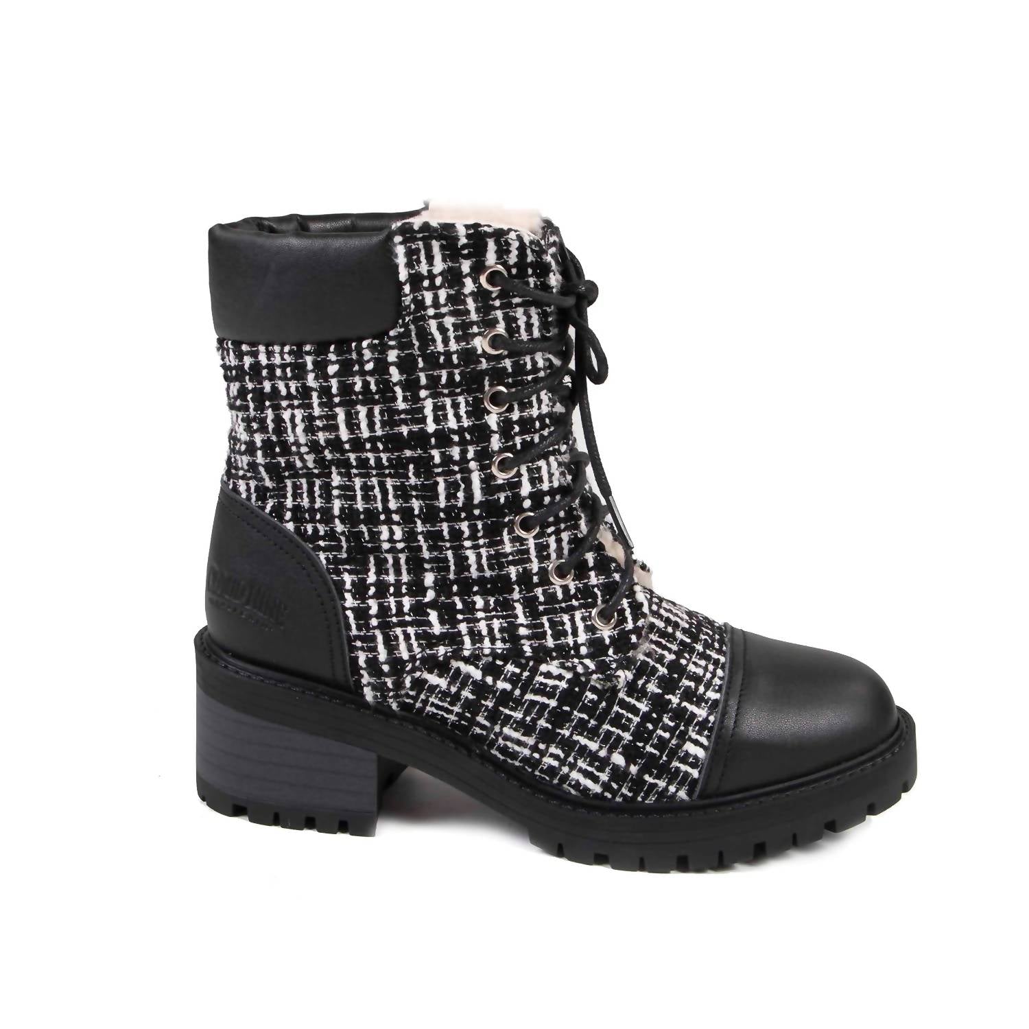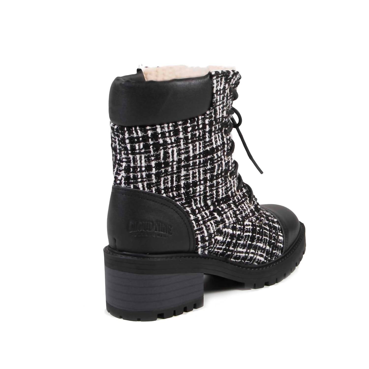 Step into style with the Women's Brooklyn Boot from CLOUD NINE, a chic option for your footwear collection. These standout sheepskin boots are designed with a leather and plaid synthetic upper, providing a unique look that will keep your feet warm and fashionable. Featuring a 100% sheepskin interior and TPR rubber sole, this boot ensures both comfort and durability.