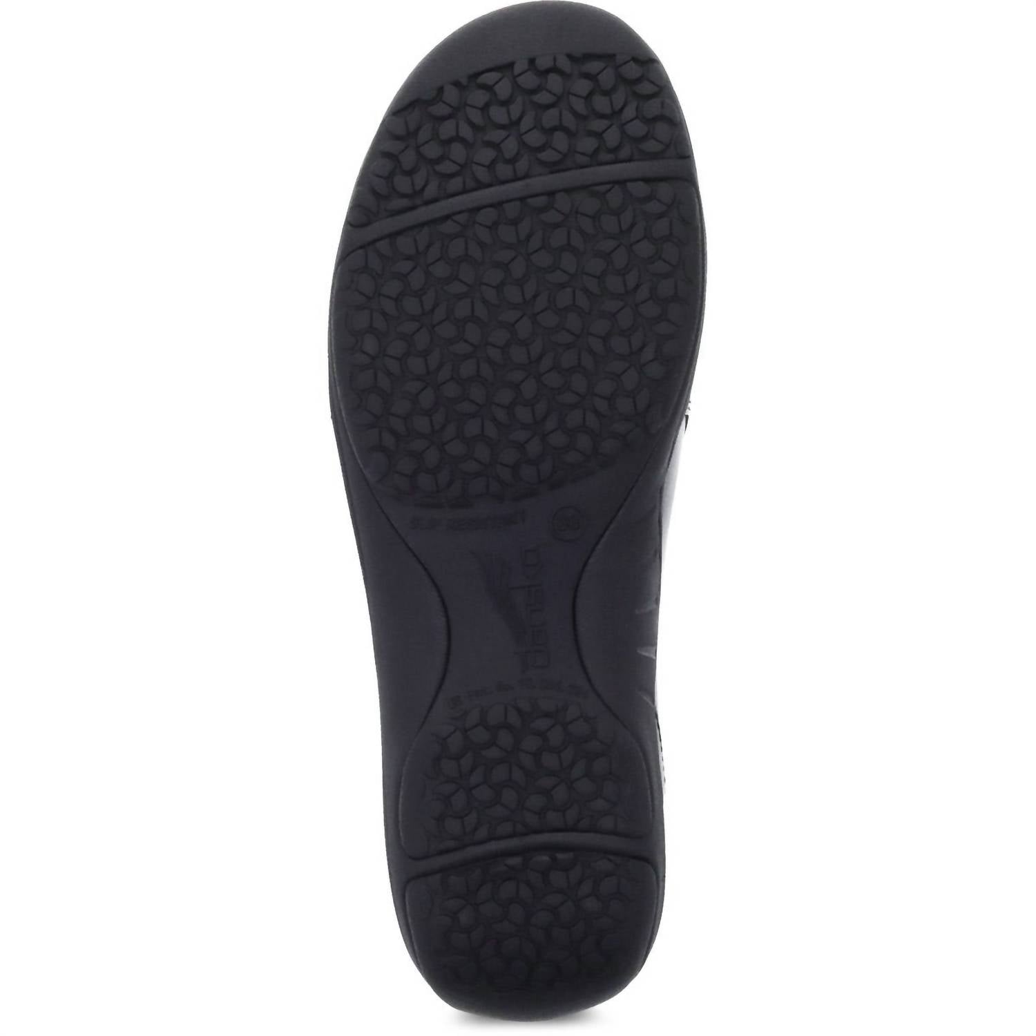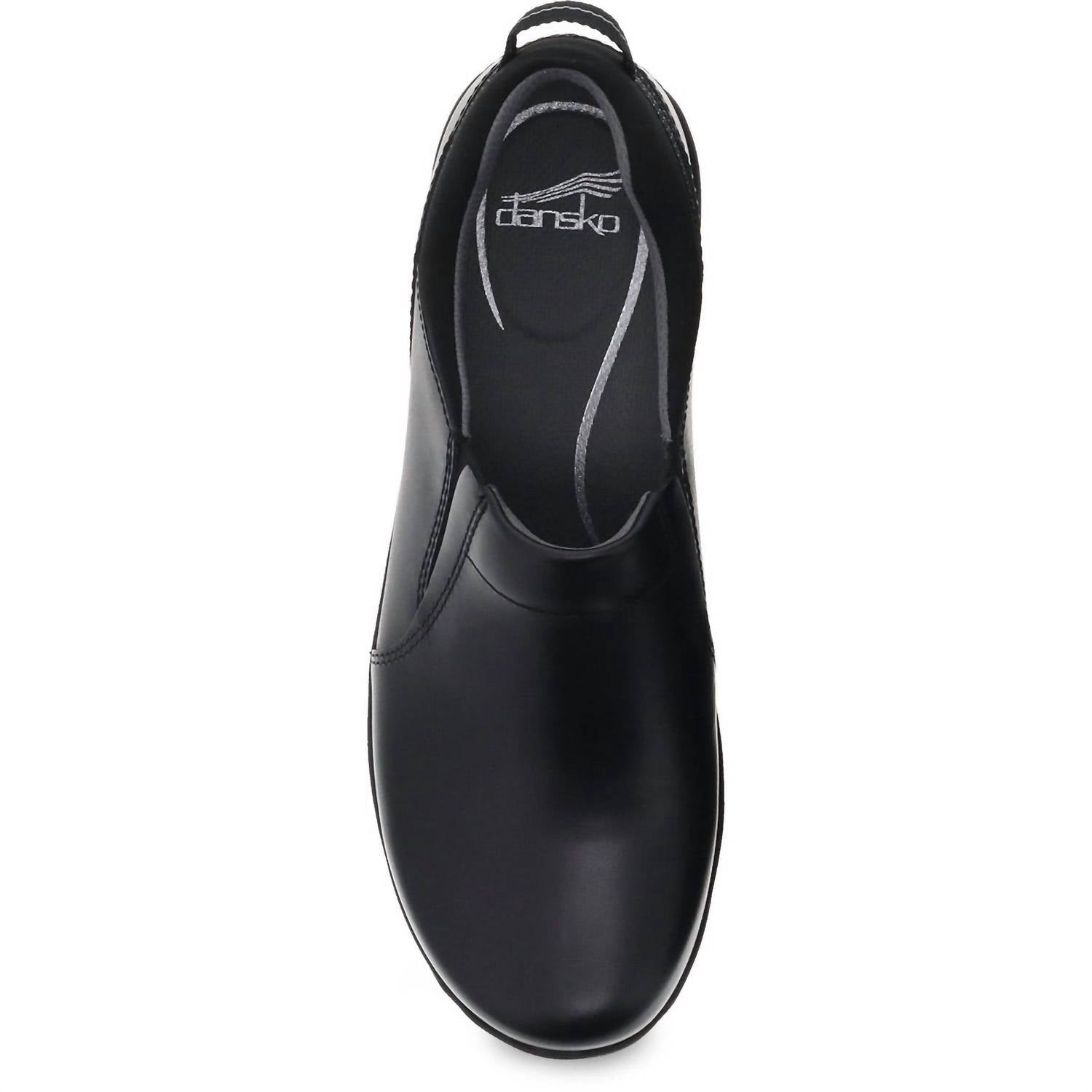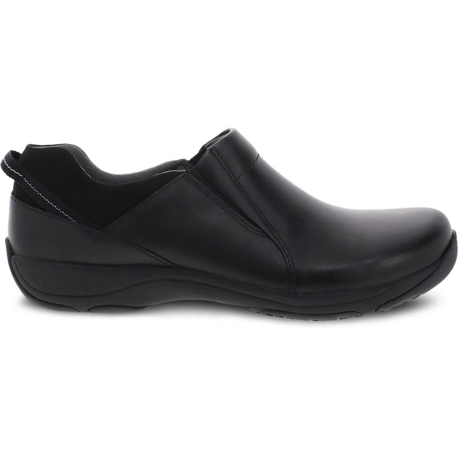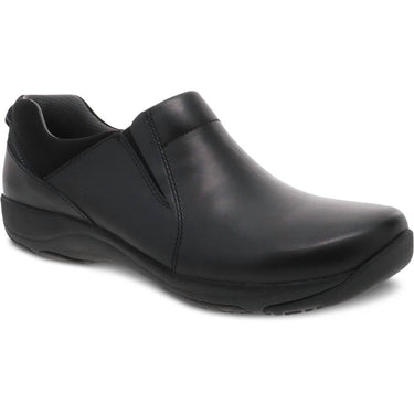 Loafers so versatile you can wear them with just about anything. Meet the Dansko Women's Neci Slip-resistant Work Shoe, expertly crafted for both function and style. These flats offer full foot coverage with stain-protected black leather uppers and a convenient slip-on design, featuring double goring and a back pull tab. Enjoy the comfort of soft textile linings and a removable contoured PU footbed with memory foam and built-in Dansko Natural Arch technology. Boasting a durable black rubber outsole and a low flat heel height of 1.40 inches, this shoe is a perfect blend of workwear practicality and comfort.