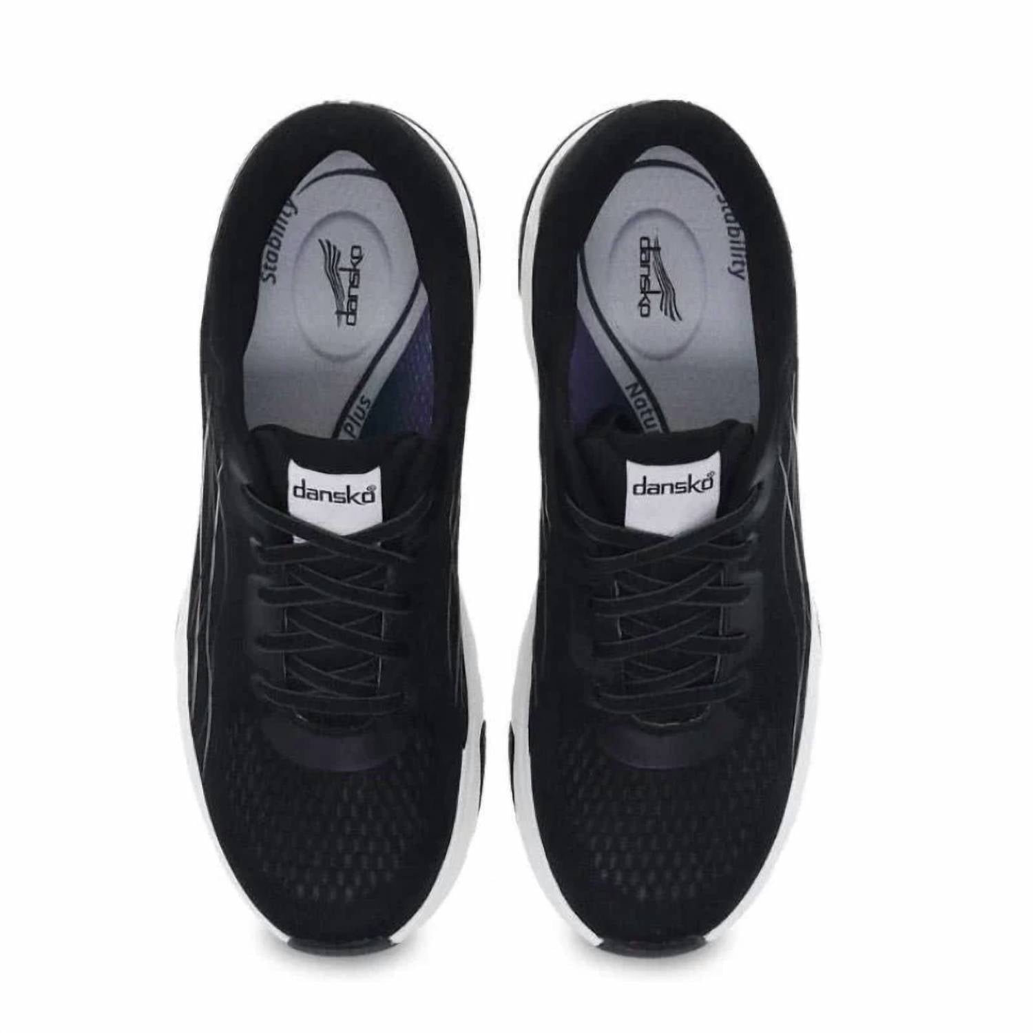 Step into comfort with the Dansko Women's Pace Mesh Walking Shoes, boasting a sleek black design perfect for active days. These sneakers feature Dansko Natural Arch Plus™ technology for exceptional arch support and heel stability, along with a recycled textile lining treated with Aegis® Microbe Shield for optimal odor control. Constructed with a lightweight EVA midsole and rubber outsole, they provide durability and long-lasting wear, while the "Propel Pad" enhances forward acceleration and cushioning. With round toe shaping, these sneakers combine style with practicality, making them an ideal choice for women on the move.