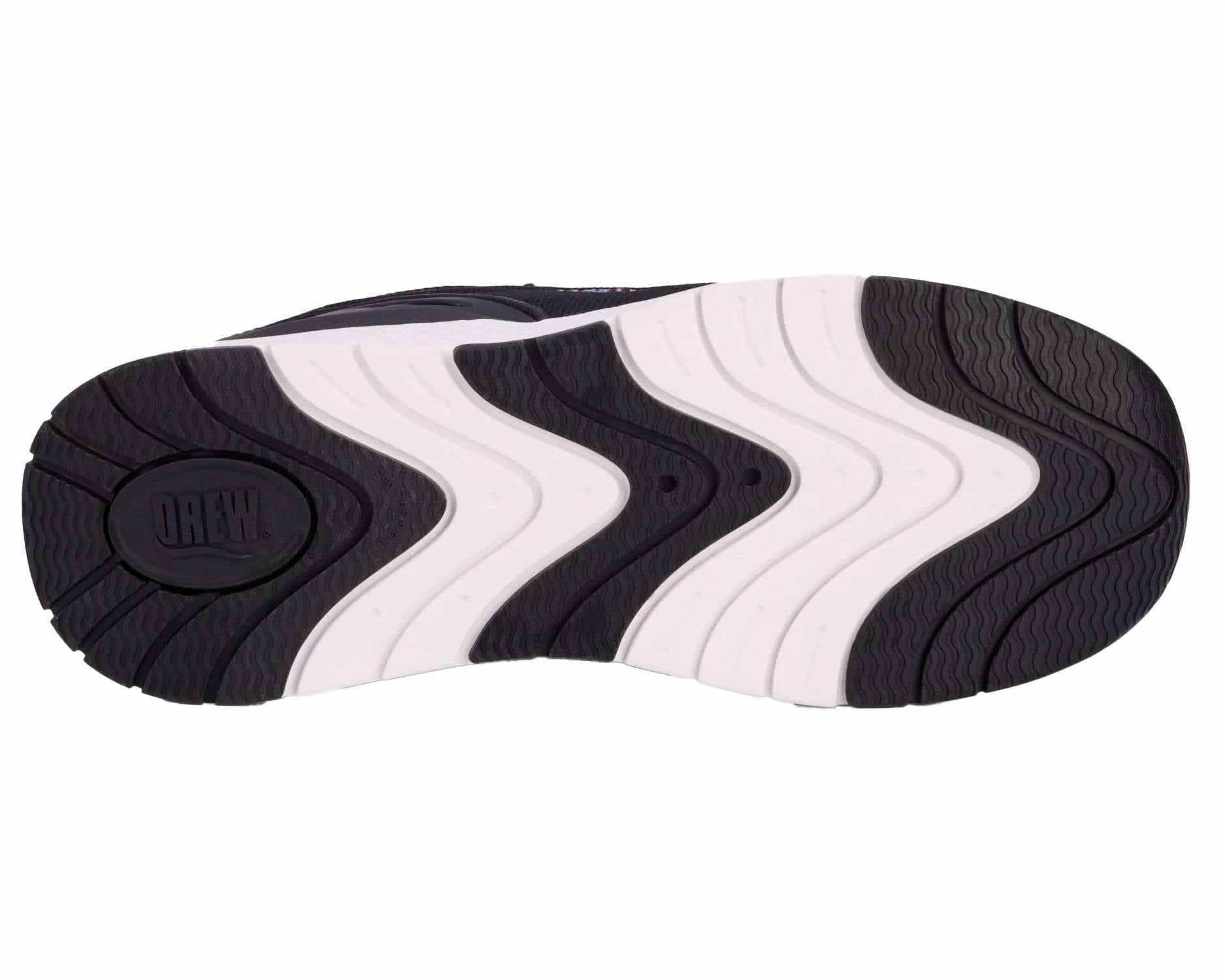 Workout in style with these adorable athletic sneakers. Introducing the Women's Halo Slip Resistant Step Athletic Shoes by Drew Shoes, designed for optimal performance and comfort. These shoes feature a 1.25" flat heel crafted from strong rubber for slip resistance, combined with a sturdy nylon shank for extra arch support. The black mesh combo upper ensures breathability, with a Drilex-covered footbed for enhanced odor control and a personalized fit that accommodates prescribed orthotics. Perfect for active pursuits, these athletic shoes offer a seamless entry with an innovative design that securely holds the foot in place.