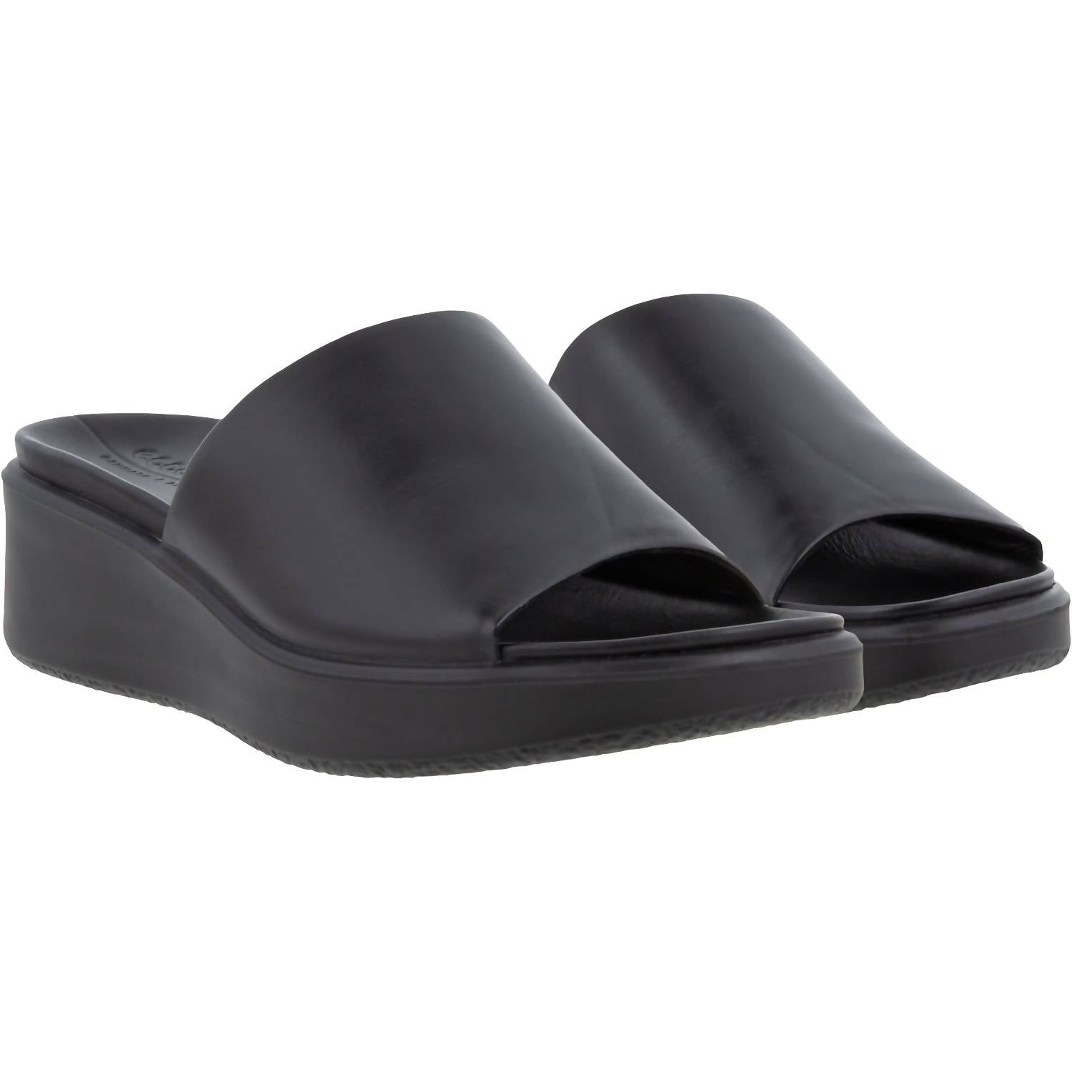 Elevate your summer style with the ECCO Flowt Wedge LX Sandal, crafted in full-grain leather for a luxurious feel. This open-toe mule is designed with a tech-infused sole featuring ECCO FLUIDFORM™ Direct Comfort Technology, providing unbeatable cushioning and flexibility. Lined in rich leather and designed with a platform heel, it combines timeless elegance with all-day comfort. Perfect for a dinner party or a Thanksgiving event, it effortlessly merges 90s fashion trends with practicality.