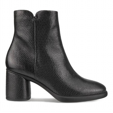 These stylish boots showcase a playful blend of premium leathers and a sculptural scallop collar for a standout look. Designed with a convenient side zip for easy entry, they feature a modern 55mm platform heel that adds height while maintaining an elegant silhouette. The interior is lined with soft leather and includes removable dual-fit insoles, offering a wider fit and more space in the toe area. Built with anatomical support for a natural feel, the PU platform outsole is finished with a leather-covered heel and rubber tread, providing both comfort and traction with every step.
