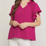 A versatile blouse that works from desk to dinner! Offers a chic and versatile look, perfect for any occasion from work to a beach day. Features short flutter sleeves and a V-neck with ruffle trim. Crafted from 100% textured polyester. Pull-on design complements its lightweight, A-line silhouette. For optimal care, choose hand washing or dry cleaning.
