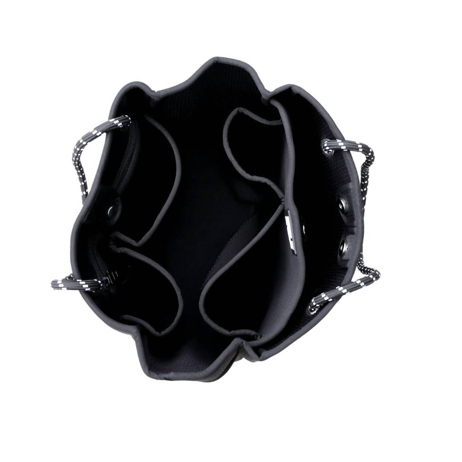 Introducing the Women's Courtside Small Tote Bag by Five Love, a chic accessory for on and off the court in stylish black with pink and white stripes. Crafted from durable neoprene, this tote is both practical and water-resistant, perfect for pickleball or other paddle sports. With dimensions of 13” L x 12” H x 7” W, it accommodates up to two paddles and offers ample organization with seven interior and two exterior pockets, alongside padded rope shoulder straps for comfortable carrying. Care is simple and hassle-free—just remove contents and the bottom board and machine wash on a gentle cycle.